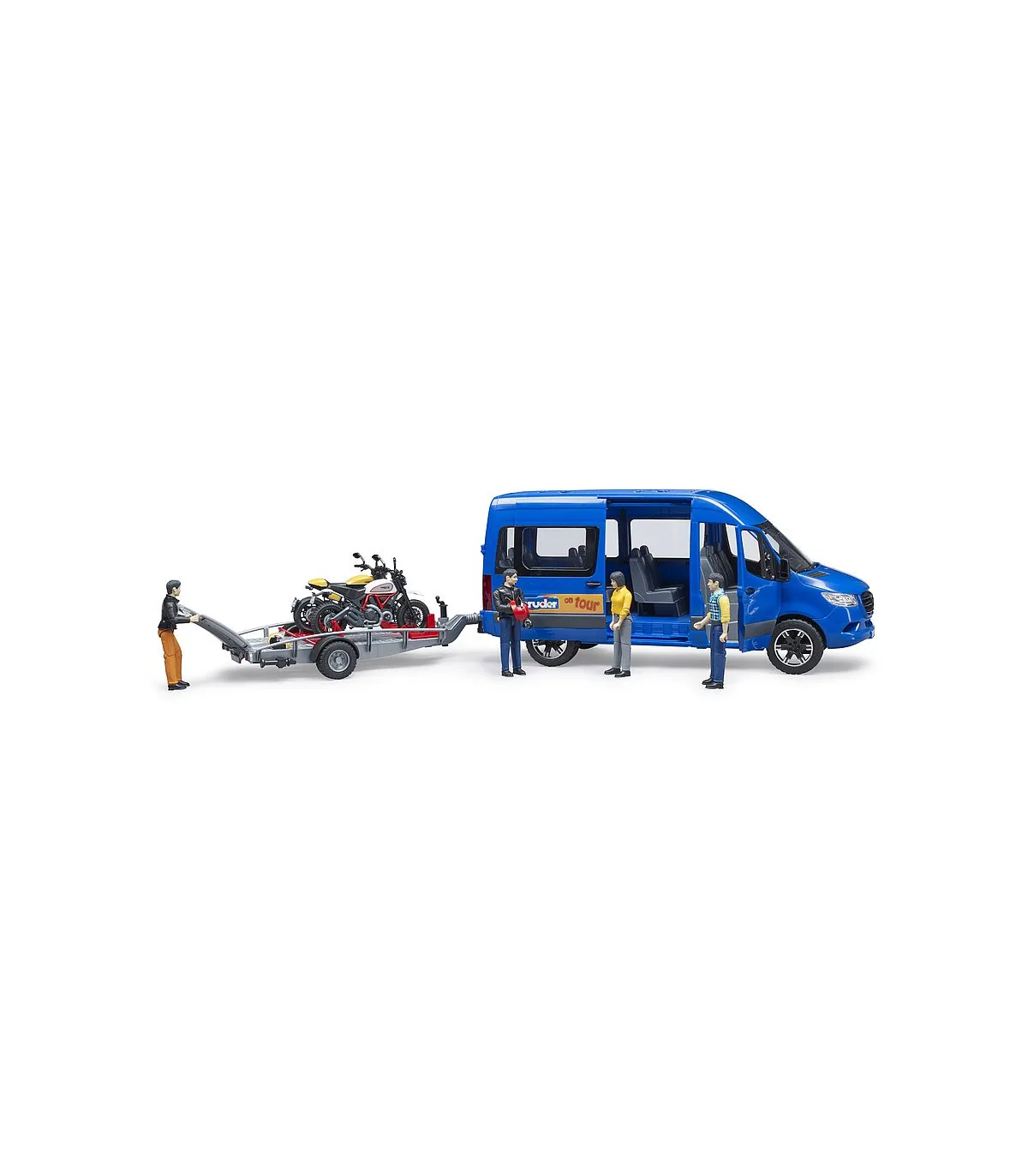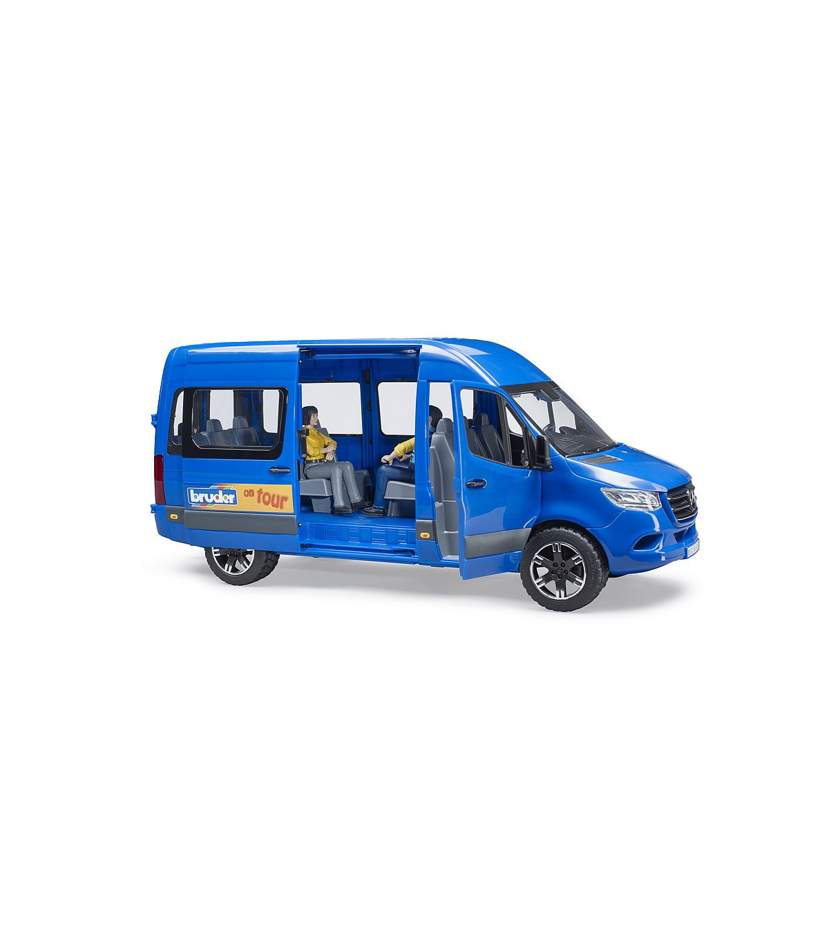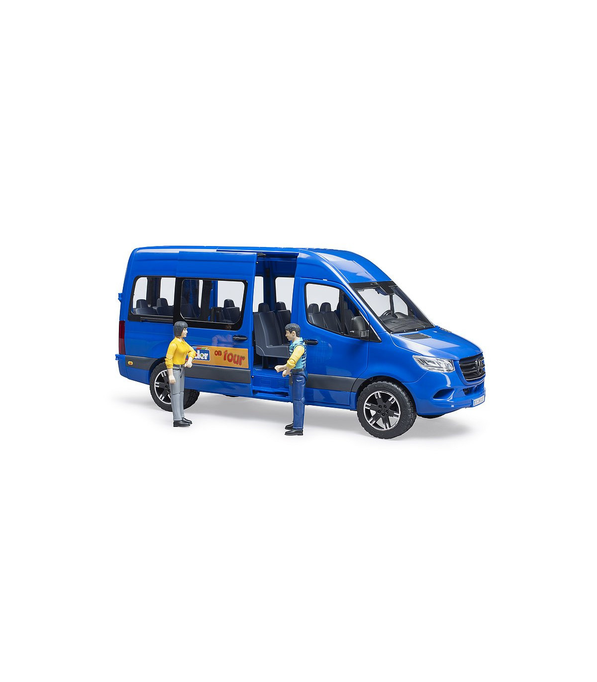 La Sprinter Transfer, con su gran diversidad de variantes, abre unas posibilidades de uso casi ilimitadas. Desde los autobuses escolares o de tripulación hasta los cómodos autobuses interurbanos o los eficaces vehículos de transferencia de los aeropuertos. Esta furgoneta Sprinter ofrece la máxima flexibilidad. BRUDER también ofrece ahora este nuevo modelo de furgoneta Sprinter. El vehículo dispone de puertas que pueden abrirse en la cabina del conductor y en la parte trasera. Lo más destacado es la nueva puerta corredera del lado del pasajero. El interior tiene un diseño flexible. Las filas de asientos traseros se pueden colocar en diferentes direcciones o desmontar por completo. En el volumen de suministro de este vehículo se incluyen tanto un pasajero como el conductor. De la amplia gama de productos de BRUDER, todas las figuras bworld, así como el descapotable BRUDER (n.º de art. 03481) pueden combinarse con este vehículo.