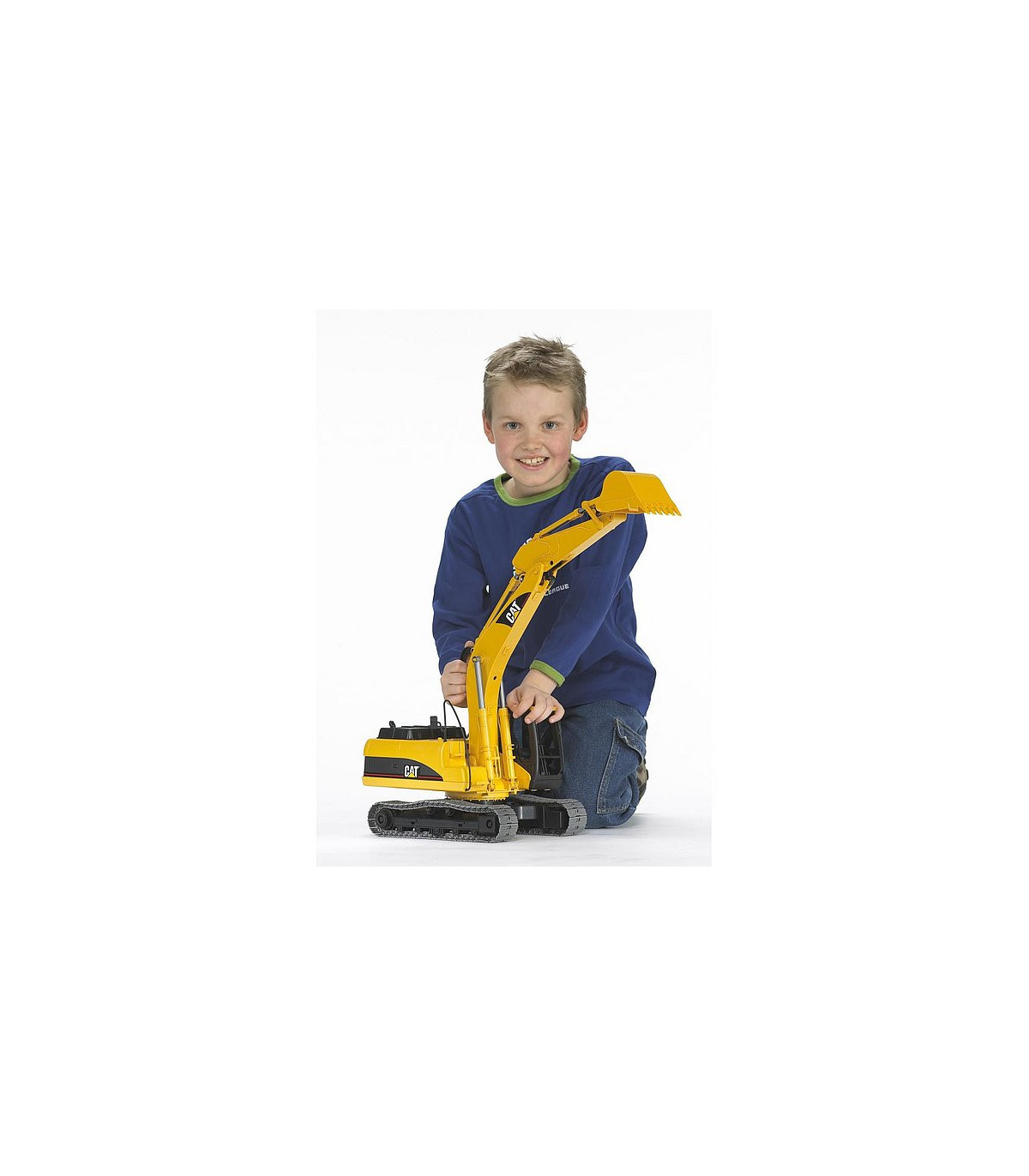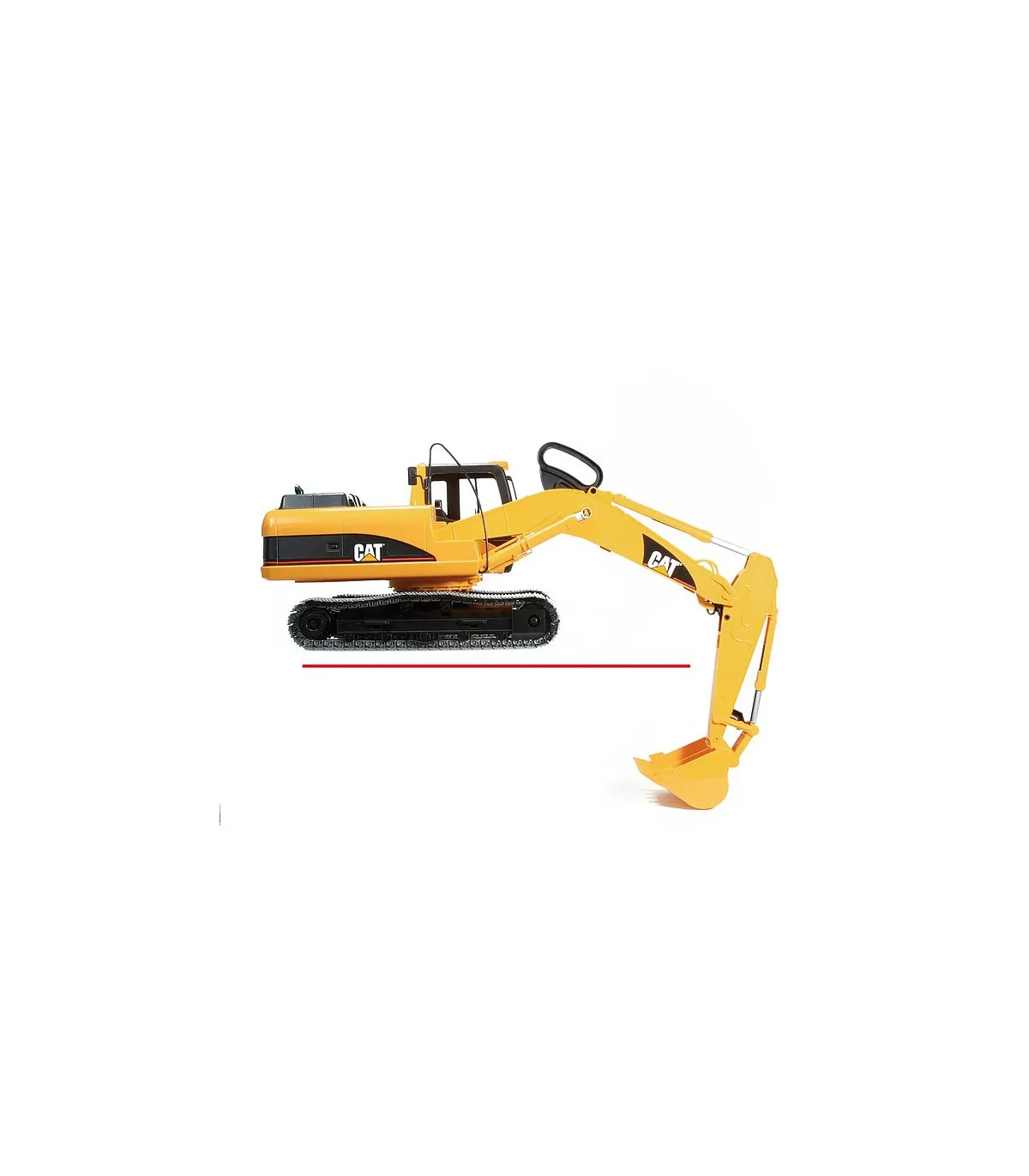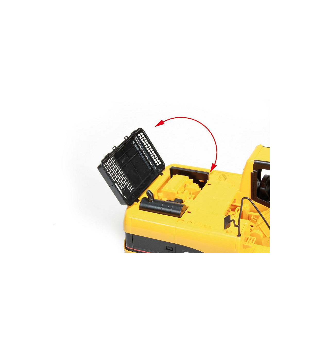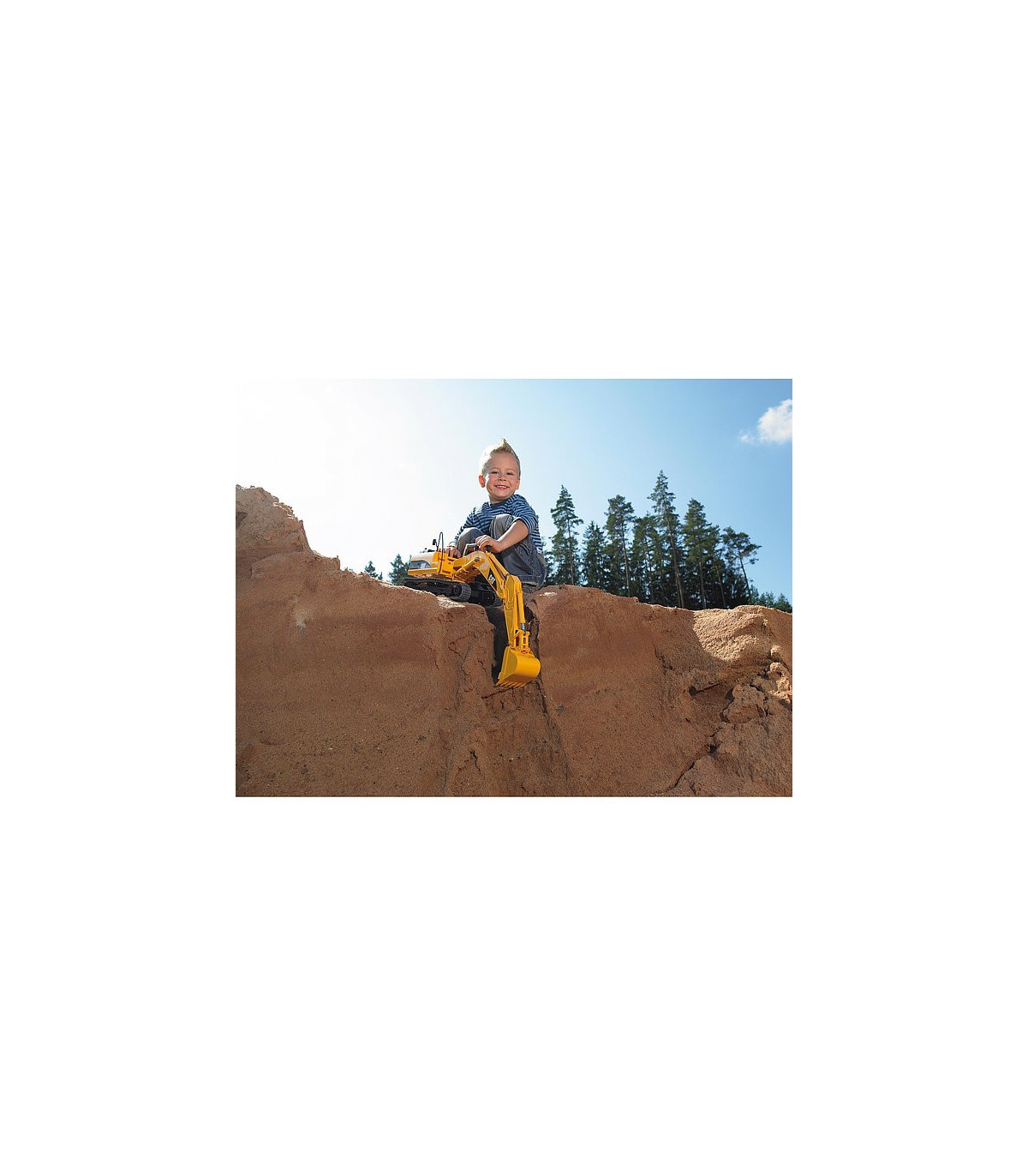 La pala excavadora Cat® es un impresionante vehículo de construcción del líder del mercado mundial, adecuado para su uso en grandes obras de construcción, en la agricultura o en la eliminación de desechos. La función de la excavadora corresponde a la original y los niños pueden manejarla con una mano con una palanca fácil de usar en el brazo principal de la excavadora. Como novedad, la función de excavadora se ha desarrollado aún más de tal manera que cuando se vacía la pala, la función de descarga se retrasa para garantizar la descarga completa solo a la altura de la caja del camión. El brazo de la excavadora también se puede utilizar para excavar muy por debajo del nivel del vehículo (por ejemplo, para trabajos de alcantarillado). La pala excavadora es extraíble. Una característica especial es que la transmisión está equipada con una verdadera cadena de eslabones (sin cintas de correr de goma). Para permitir que la cadena de eslabones corra sobre suelos lisos, se puede equipar con los elementos de goma suministrados. El capó que se puede abrir y las rejillas de ventilación realistas subrayan el diseño de alta calidad.