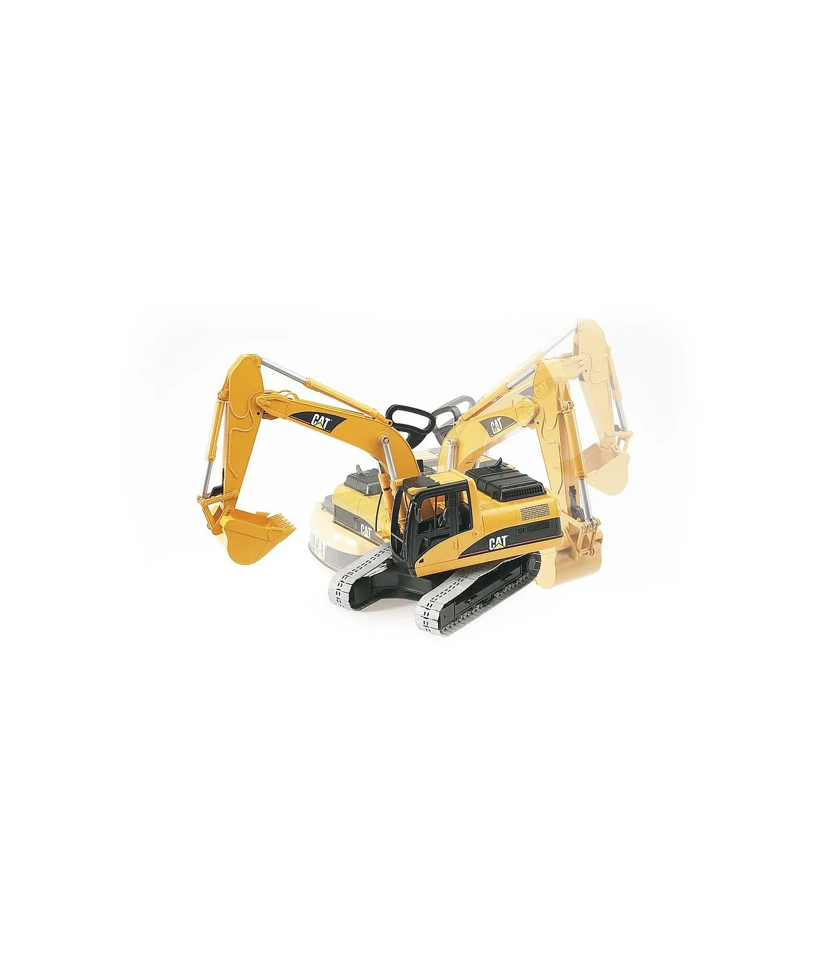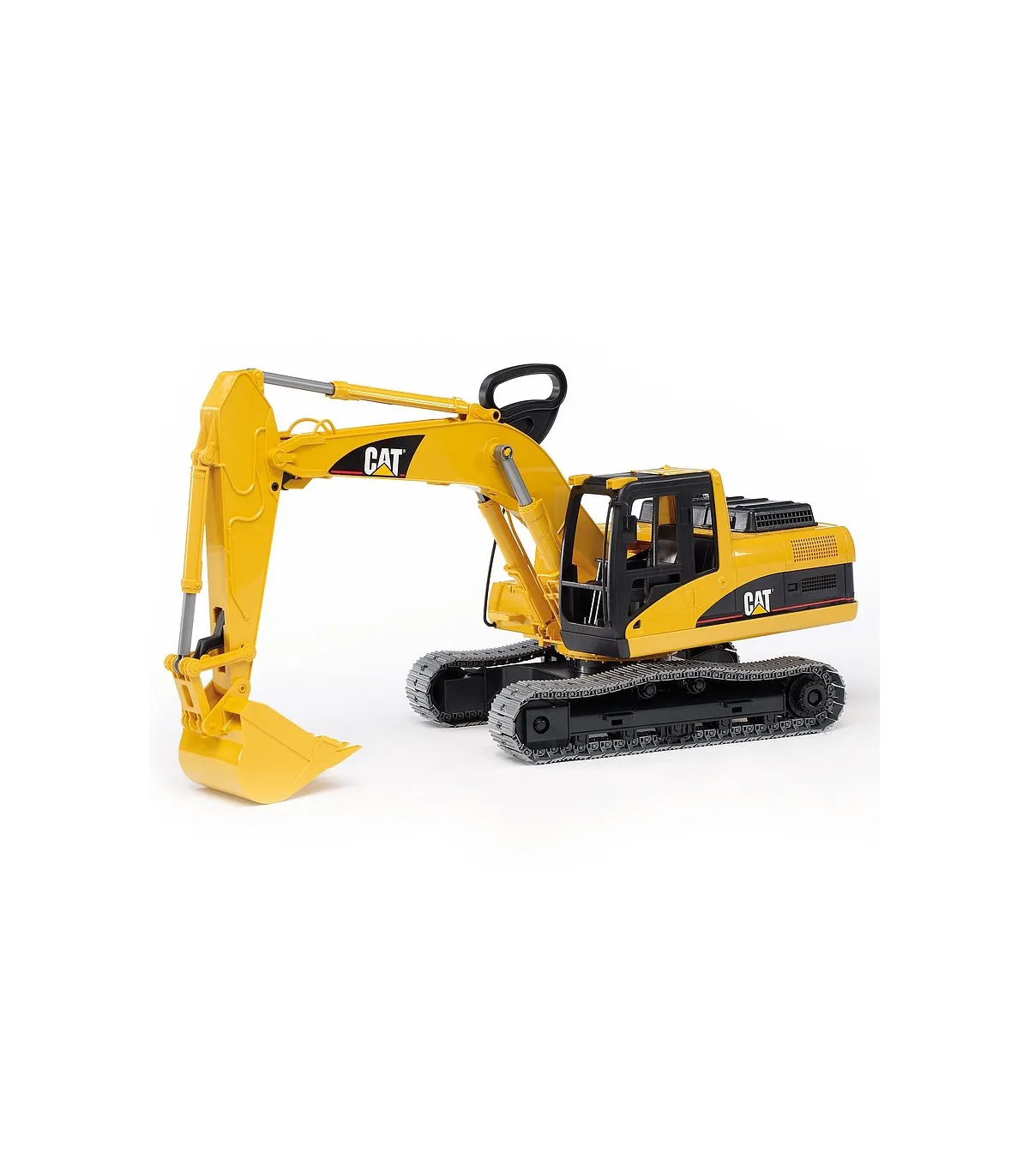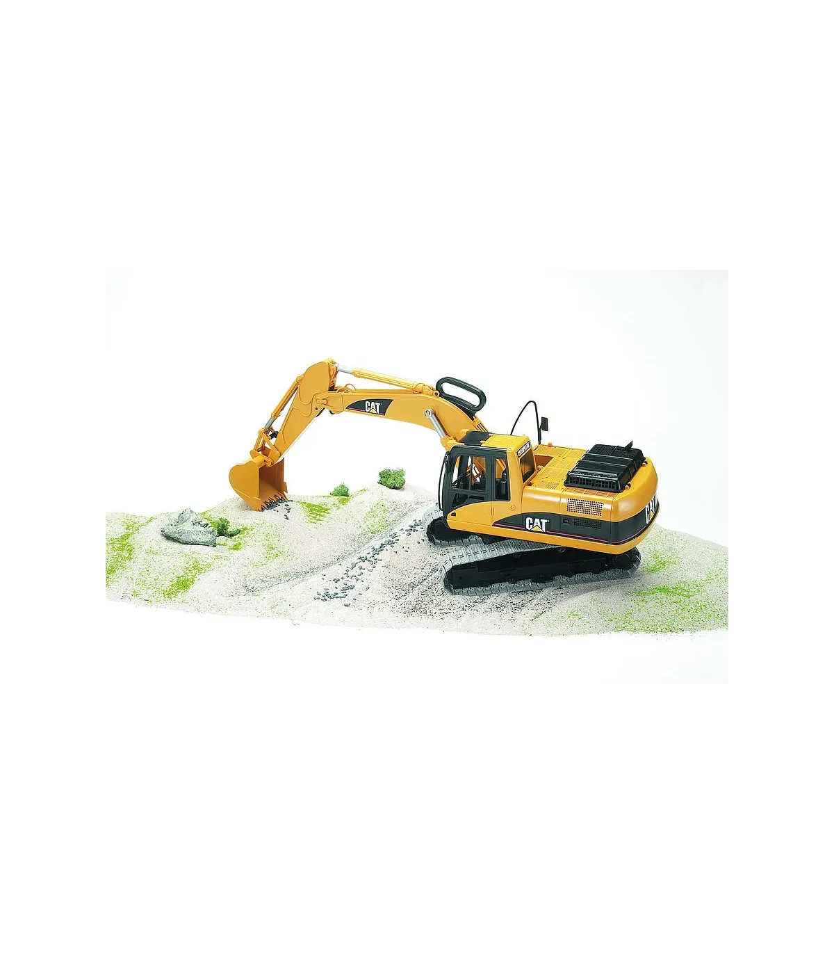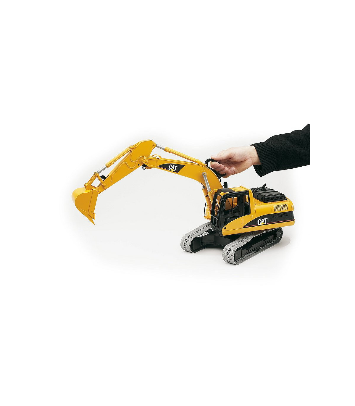 La pala excavadora Cat® es un impresionante vehículo de construcción del líder del mercado mundial, adecuado para su uso en grandes obras de construcción, en la agricultura o en la eliminación de desechos. La función de la excavadora corresponde a la original y los niños pueden manejarla con una mano con una palanca fácil de usar en el brazo principal de la excavadora. Como novedad, la función de excavadora se ha desarrollado aún más de tal manera que cuando se vacía la pala, la función de descarga se retrasa para garantizar la descarga completa solo a la altura de la caja del camión. El brazo de la excavadora también se puede utilizar para excavar muy por debajo del nivel del vehículo (por ejemplo, para trabajos de alcantarillado). La pala excavadora es extraíble. Una característica especial es que la transmisión está equipada con una verdadera cadena de eslabones (sin cintas de correr de goma). Para permitir que la cadena de eslabones corra sobre suelos lisos, se puede equipar con los elementos de goma suministrados. El capó que se puede abrir y las rejillas de ventilación realistas subrayan el diseño de alta calidad.