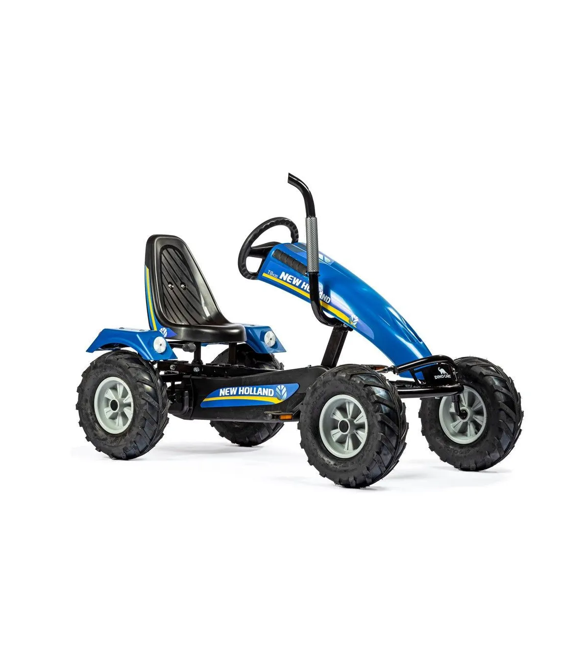 Muchos niños quieren su propio tractor de pedales con el aspecto de NEW HOLLAND. Los neumáticos del tractor y el eje oscilante garantizan una tracción particularmente buena incluso en terrenos fangosos e irregulares.