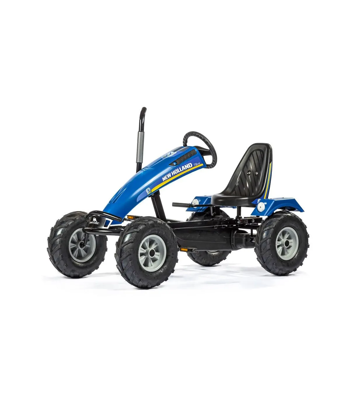Por supuesto, el NEW HOLLAND BF1 también tiene la última rueda libre BF1 además del diseño avanzado y moderno . El BF1 evita que los pedales giren mientras se conduce hacia adelante. Los conductores pueden así insertar frenos de pedal durante el movimiento hacia adelante. Esto minimiza el riesgo de lesiones. Para conducir marcha atrás, frena el kart intuitivamente con los pedales o con el freno de mano hasta que se detiene. Entonces los pedales son pateados hacia atrás. La marcha atrás se engrana automáticamente. Esto es puro placer de conducir y seguridad.