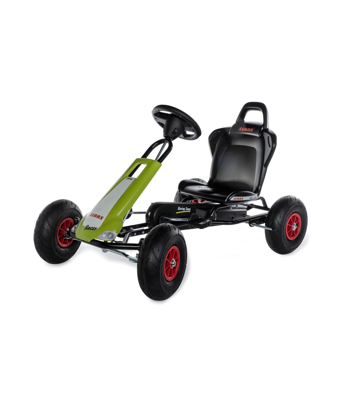 El Ferbedo GoKart CLAAS Racer es un vehículo de alta calidad para niños de aproximadamente 3 a 8 años. El robusto marco de acero en un elegante color negro garantiza una gran estabilidad y durabilidad del GoKart. Gracias a la rueda libre Ferbedo, el niño puede avanzar y retroceder sin esfuerzo sin tener que cambiar de marcha. Esto permite una operación sencilla y una experiencia de conducción sencilla. Además, se optimiza el radio de giro del GoKart, lo que garantiza una buena maniobrabilidad. El asiento ajustable y de forma ergonómica proporciona un confort de asiento confortable y personalizable individualmente. Los neumáticos ofrecen buena tracción y permiten un comportamiento de conducción suave en diversas superficies. Para mayor seguridad, el GoKart dispone de un freno de mano que se puede accionar fácilmente en cualquier momento. El volante sonoro Ferbedo proporciona sonidos extra divertidos y realistas durante el viaje. El GoKart soporta cargas de hasta 50 kg, lo que lo hace divertido también para los niños mayores. El Ferbedo GoKart CLAAS Racer está fabricado en Alemania, lo que representa la más alta calidad y artesanía. Es un vehículo ideal para niños activos que disfrutan jugando al aire libre y quieren entrenar sus habilidades motoras.