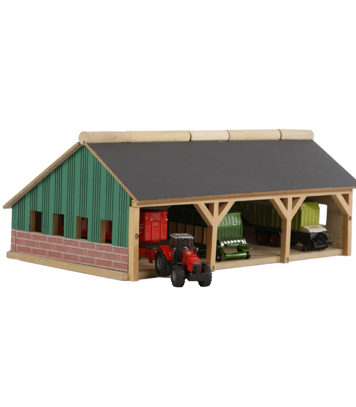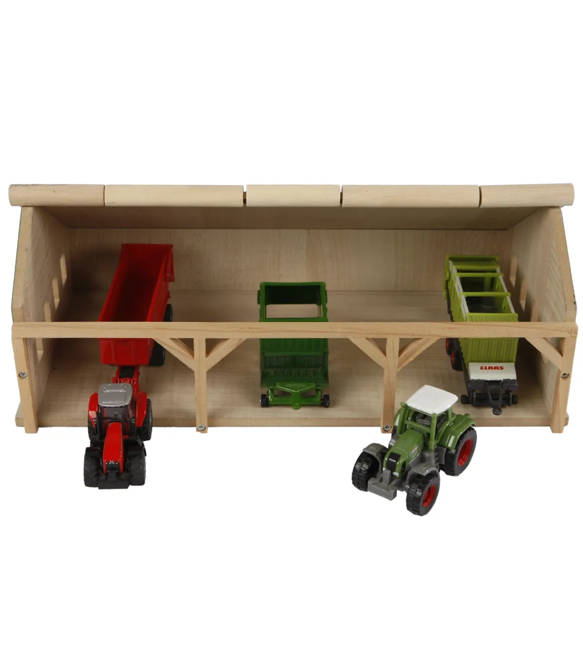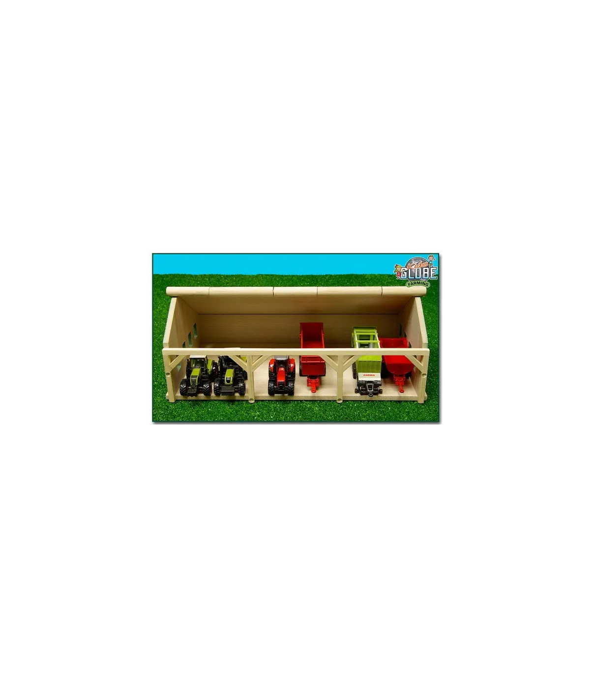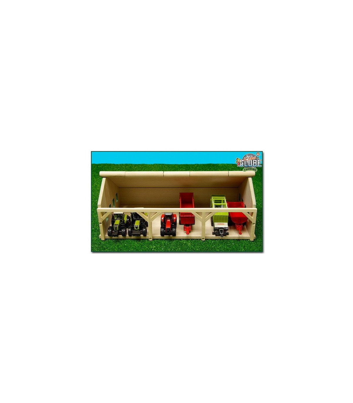 Para los más pequeños, este cobertizo agrícola/de almacenamiento está hecho completamente de madera. Siku fabrica tractores y remolques más pequeños a escala 1:87, y este cobertizo se adapta perfectamente a ellos. El cobertizo tiene un techo abatible en la parte delantera para facilitar el acceso. El cobertizo agrícola se envía como un kit y es fácil de montar con los tornillos de estrella incluidos.