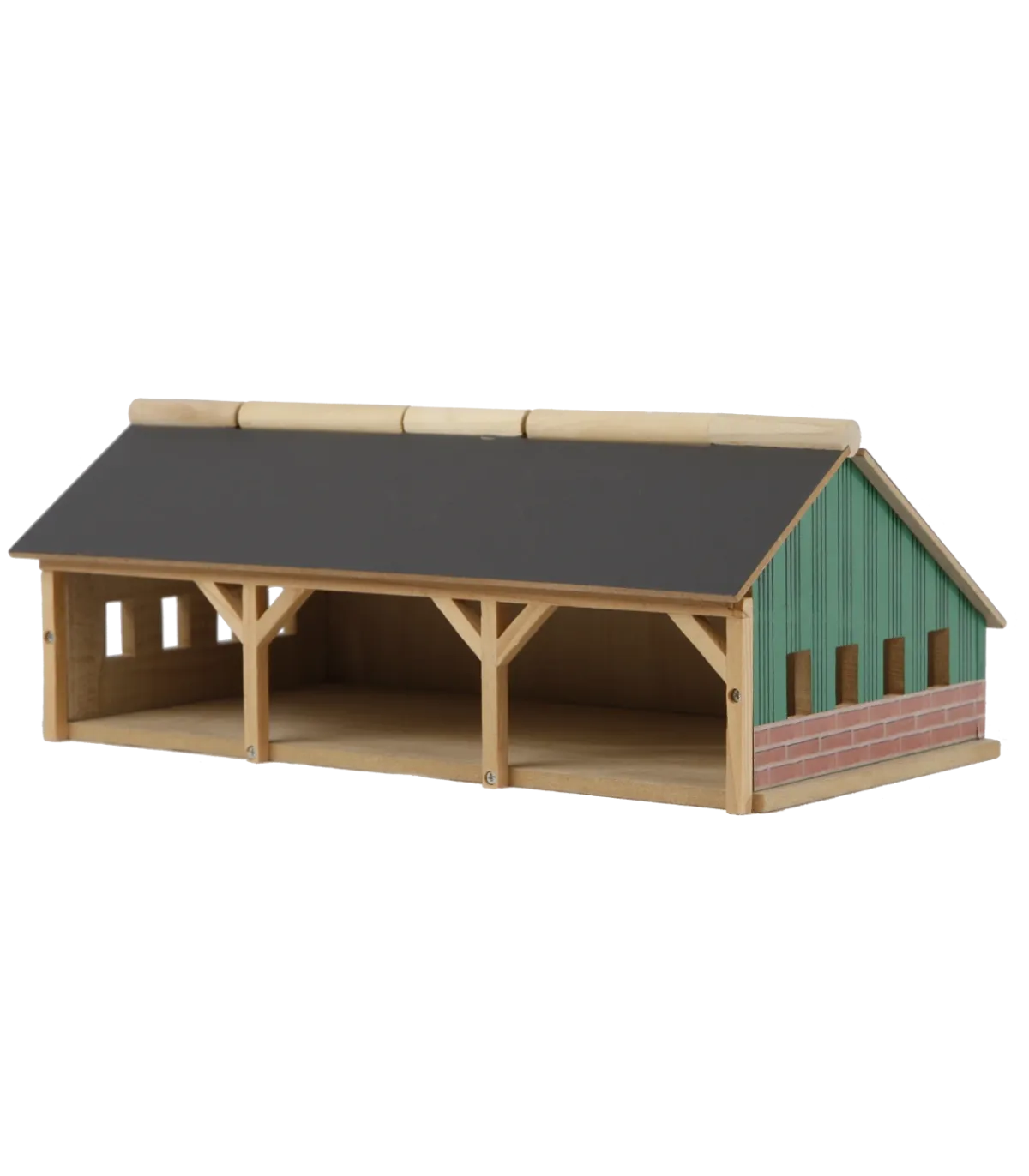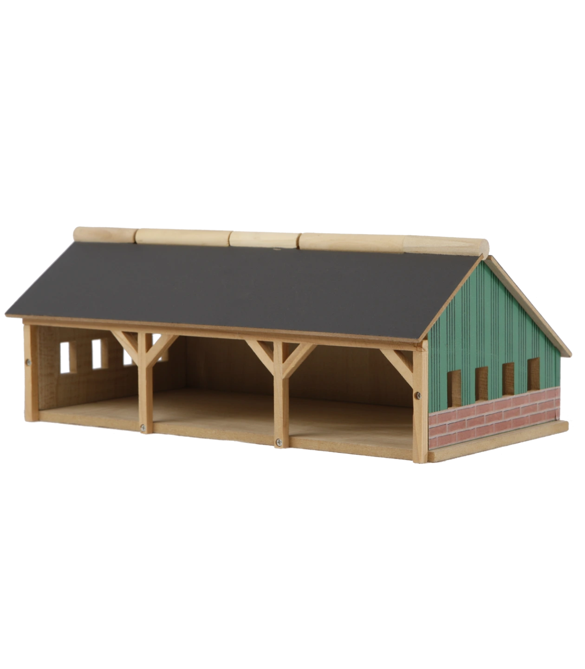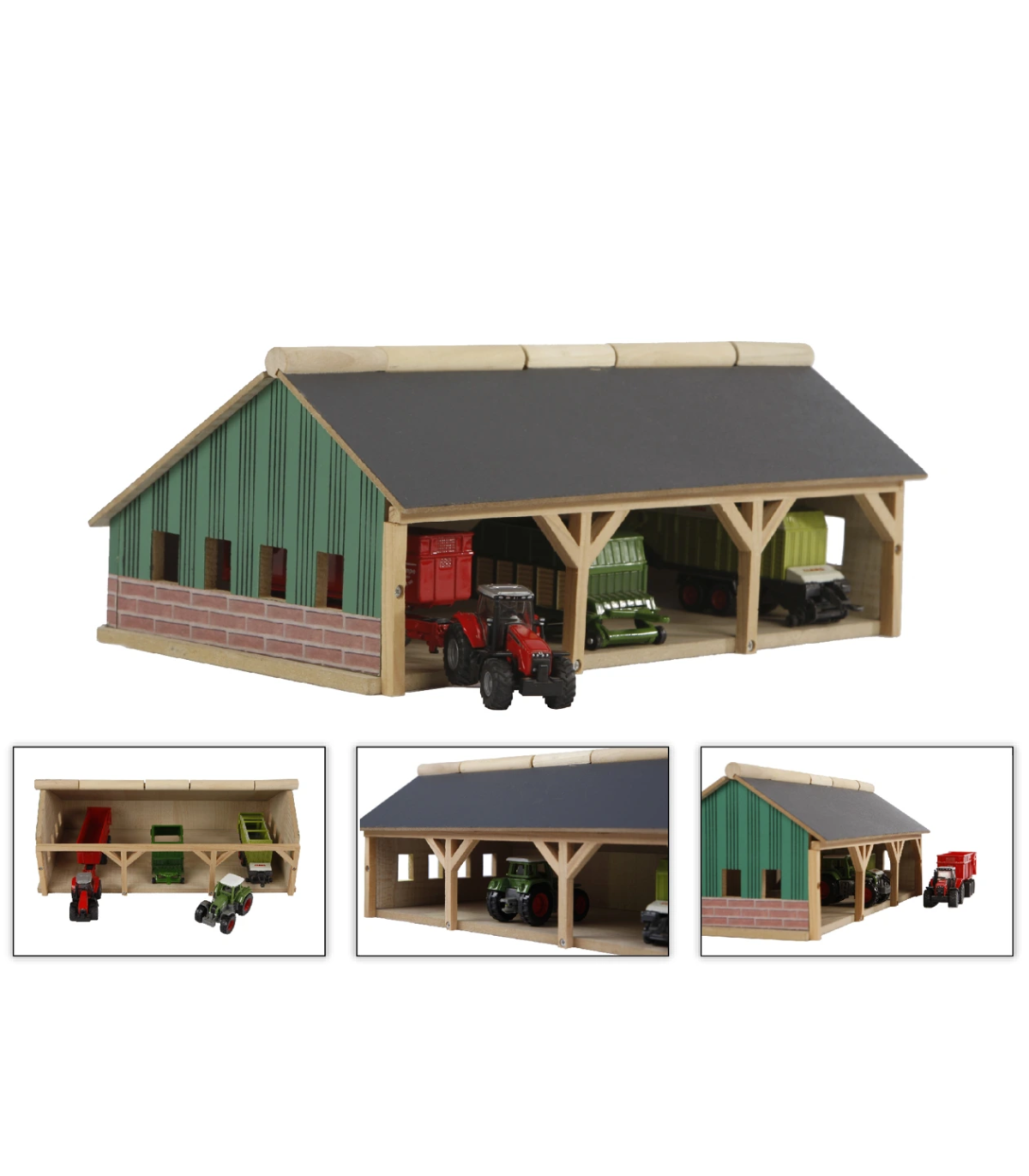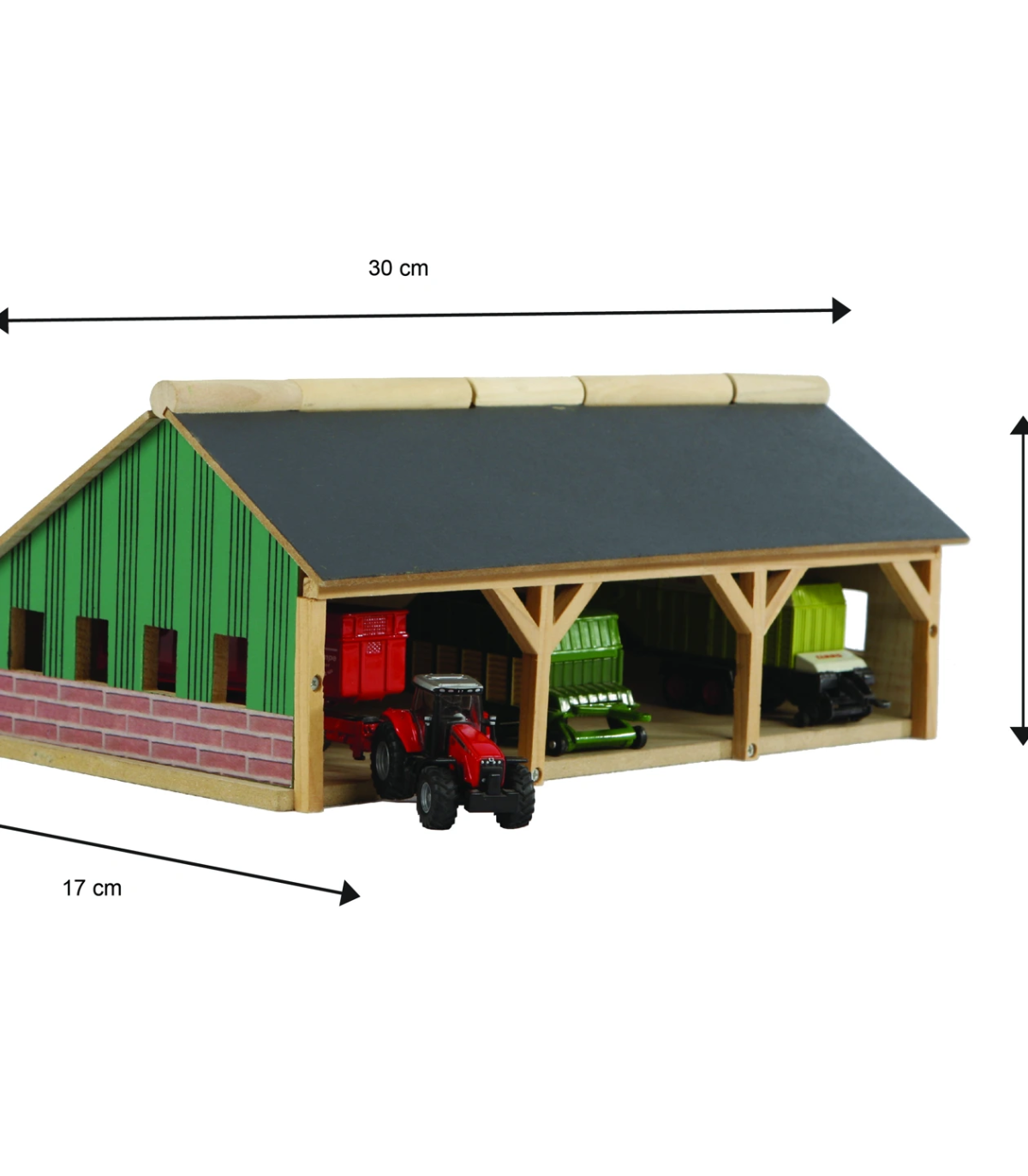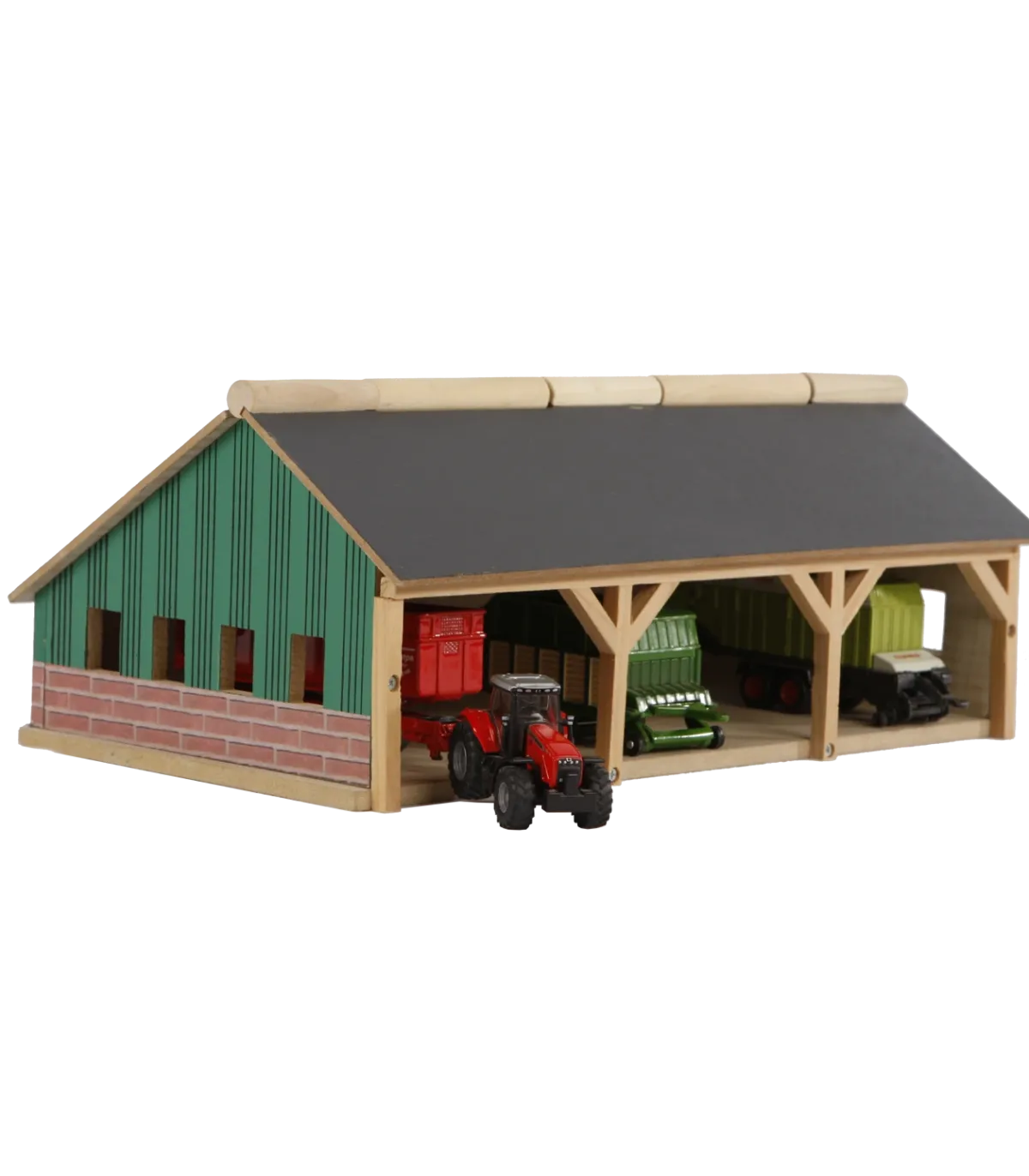 Para los más pequeños, este cobertizo agrícola/de almacenamiento está hecho completamente de madera. Siku fabrica tractores y remolques más pequeños a escala 1:87, y este cobertizo se adapta perfectamente a ellos. El cobertizo tiene un techo abatible en la parte delantera para facilitar el acceso. El cobertizo agrícola se envía como un kit y es fácil de montar con los tornillos de estrella incluidos.