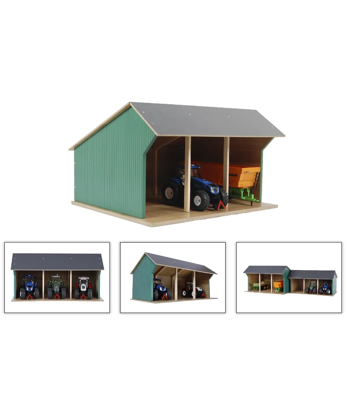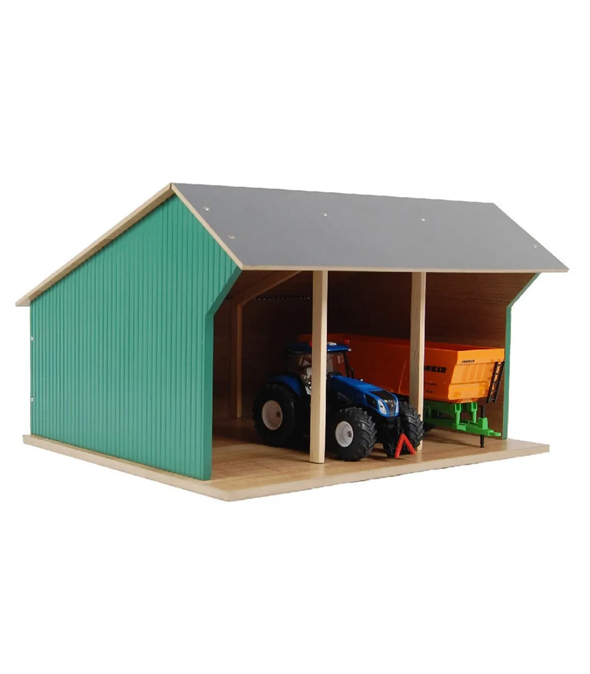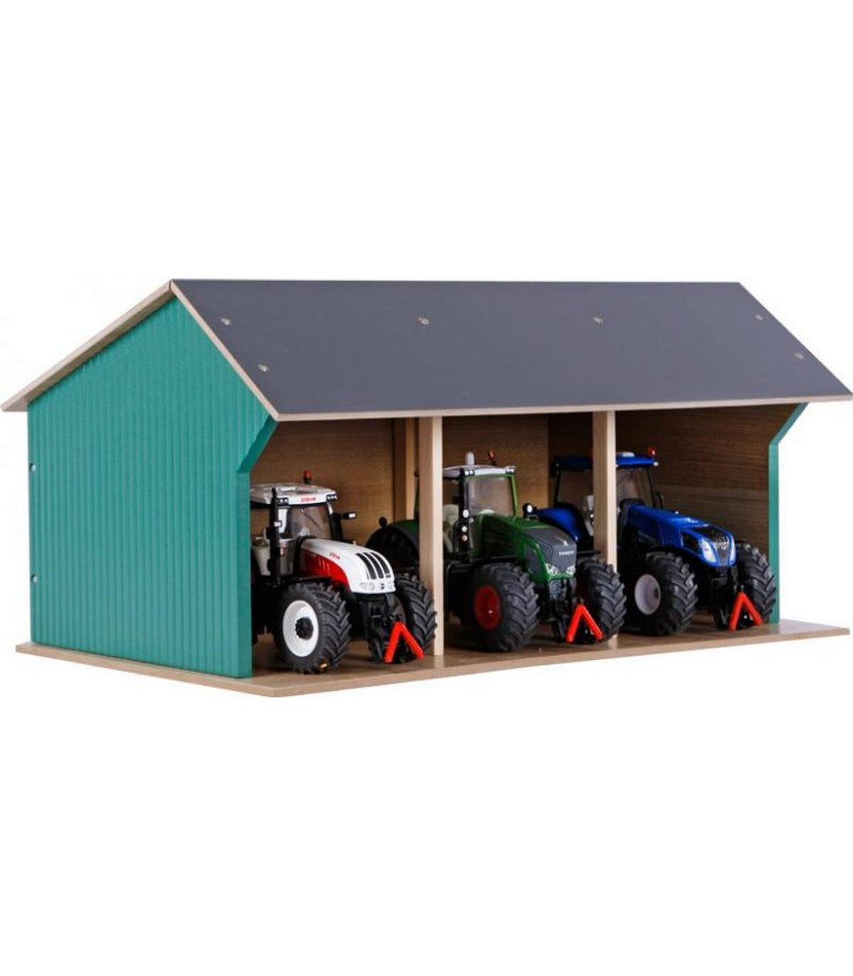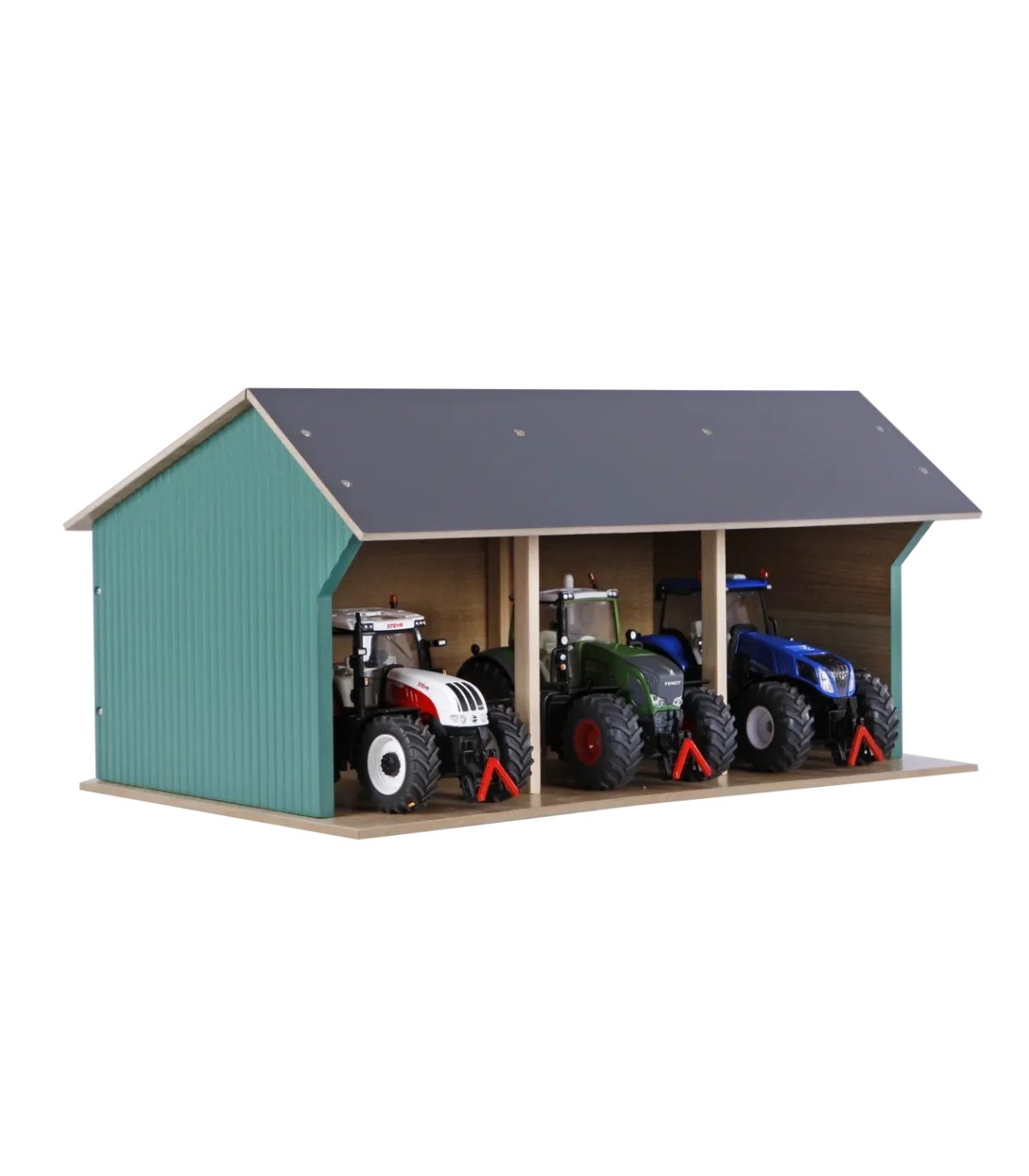 Estas casetas de juguete se entregan en kit. Así que puedes construirlas con tus hijos y disfrutar del momento en que puedan empezar a jugar. Por supuesto, se incluyen accesorios y planos de construcción claros. La sección frontal del techo se pliega para facilitar el acceso a sus tractores de juguete.