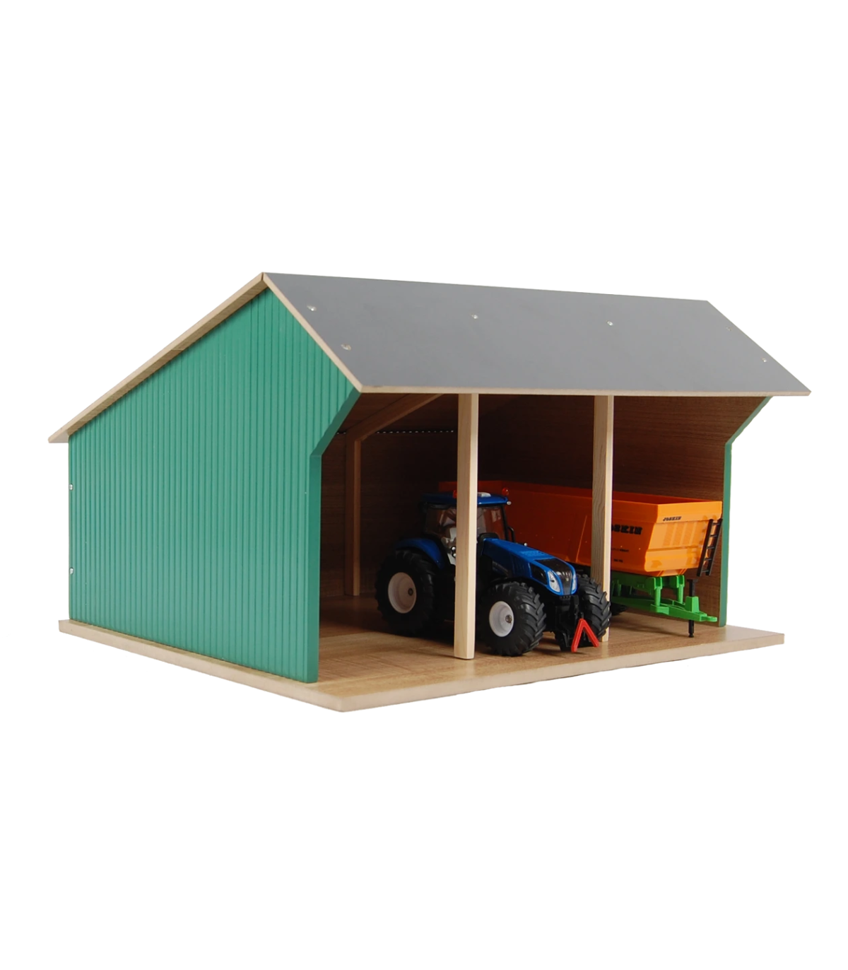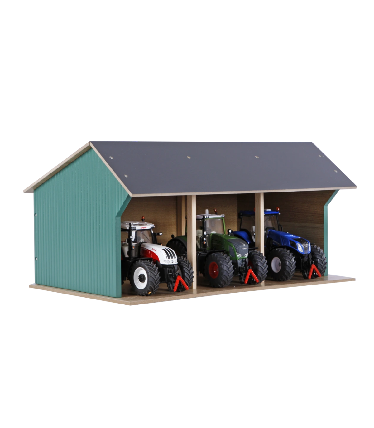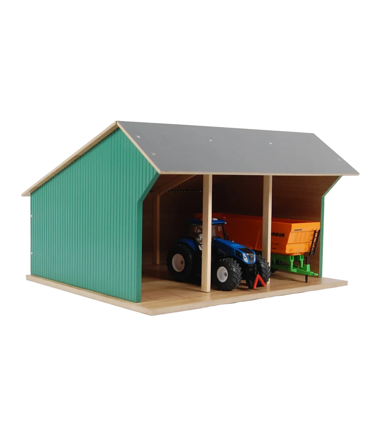 Estas casetas de juguete se entregan en kit. Así que puedes construirlas con tus hijos y disfrutar del momento en que puedan empezar a jugar. Por supuesto, se incluyen accesorios y planos de construcción claros. La sección frontal del techo se pliega para facilitar el acceso a sus tractores de juguete.