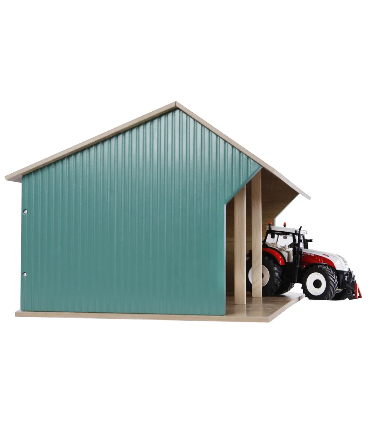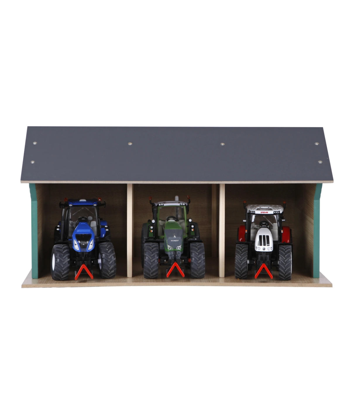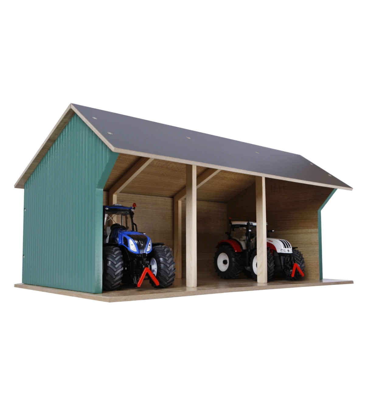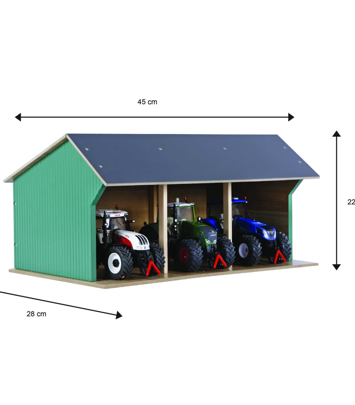 Estas casetas de juguete se entregan en kit. Así que puedes construirlas con tus hijos y disfrutar del momento en que puedan empezar a jugar. Por supuesto, se incluyen accesorios y planos de construcción claros. La sección frontal del techo se pliega para facilitar el acceso a sus tractores de juguete.