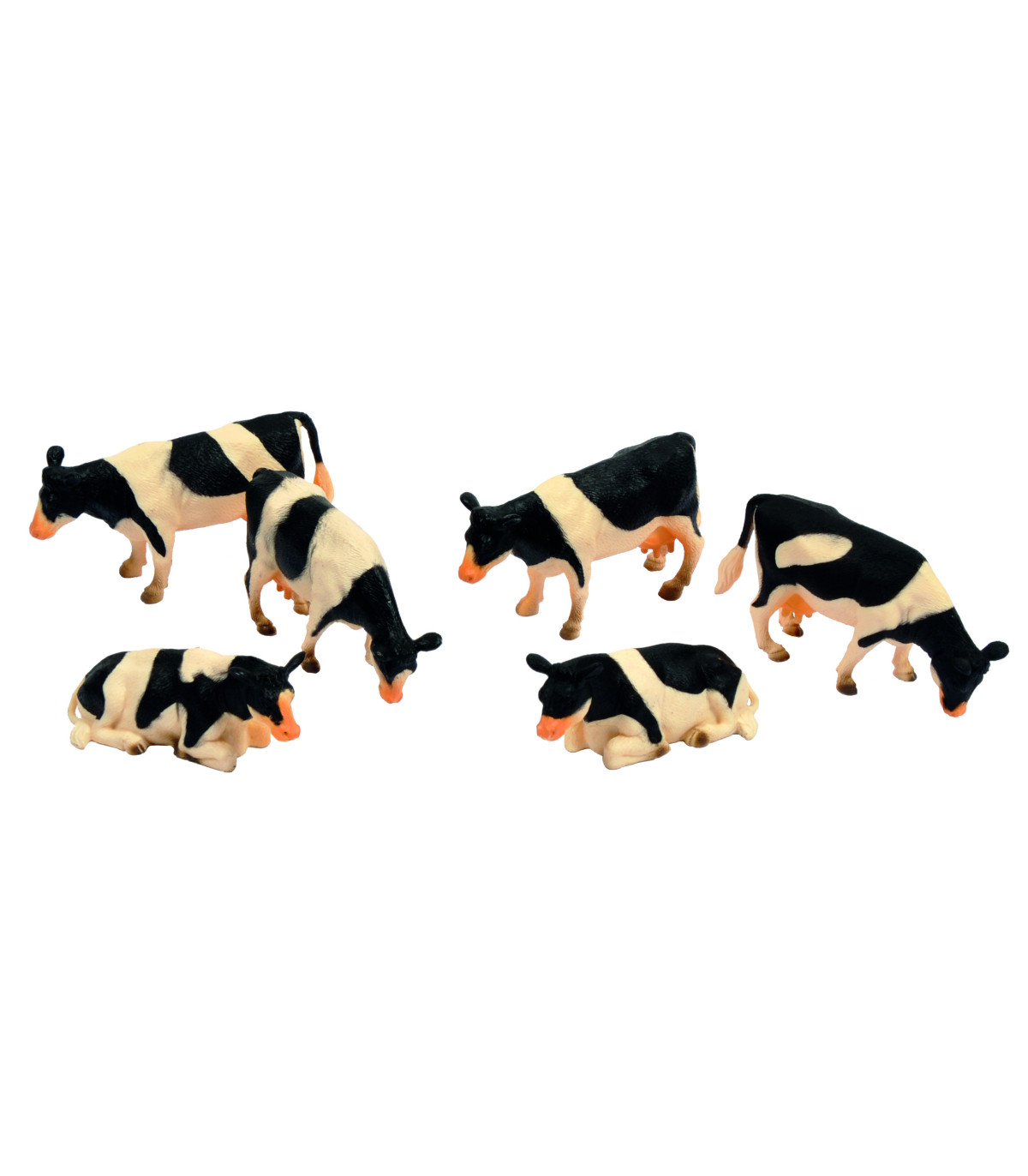 Las vacas blancas y negras vienen en un atractivo empaque de regalo. Son perfectas para exhibir en un pasto o establo como decoración de granja.