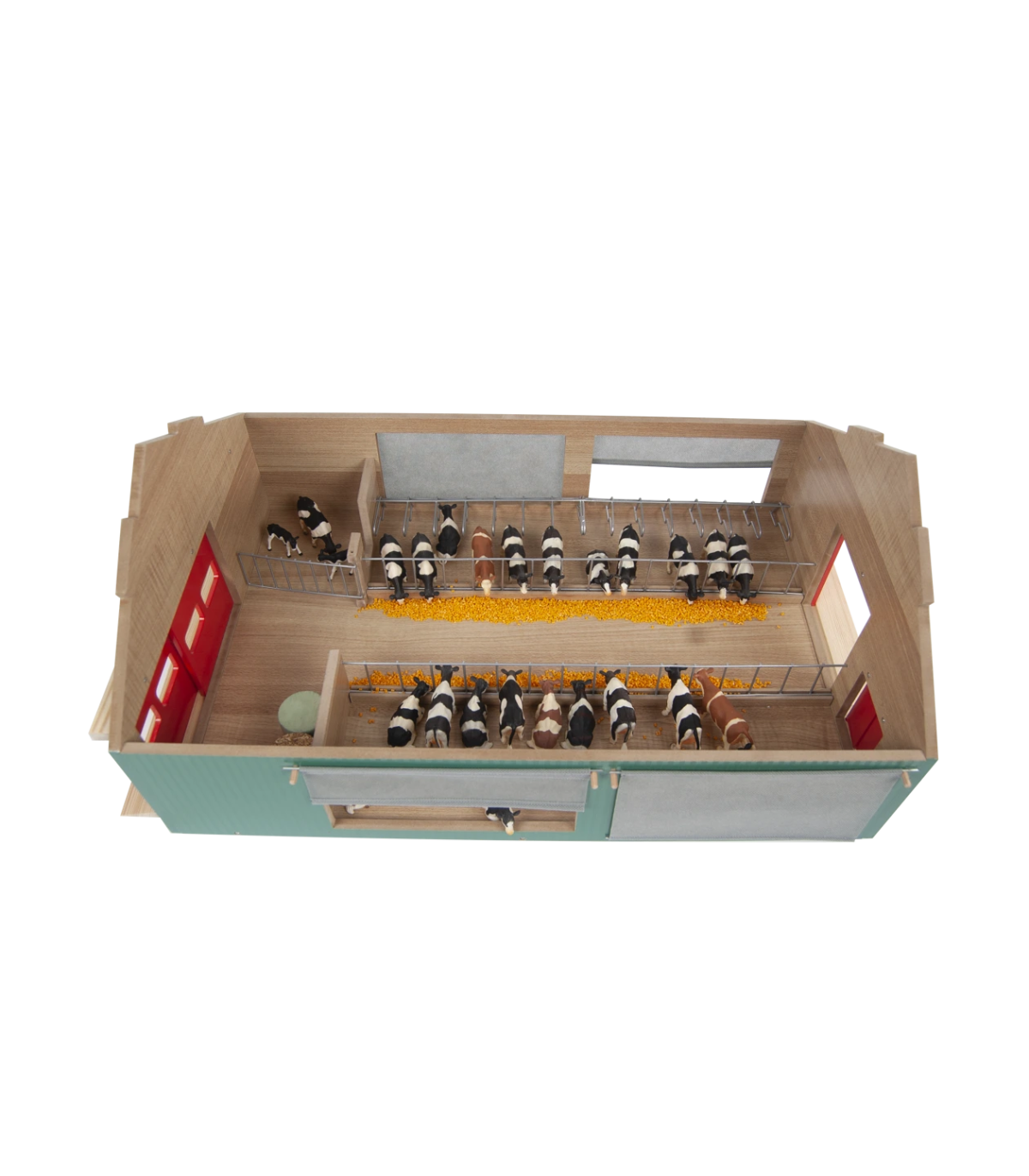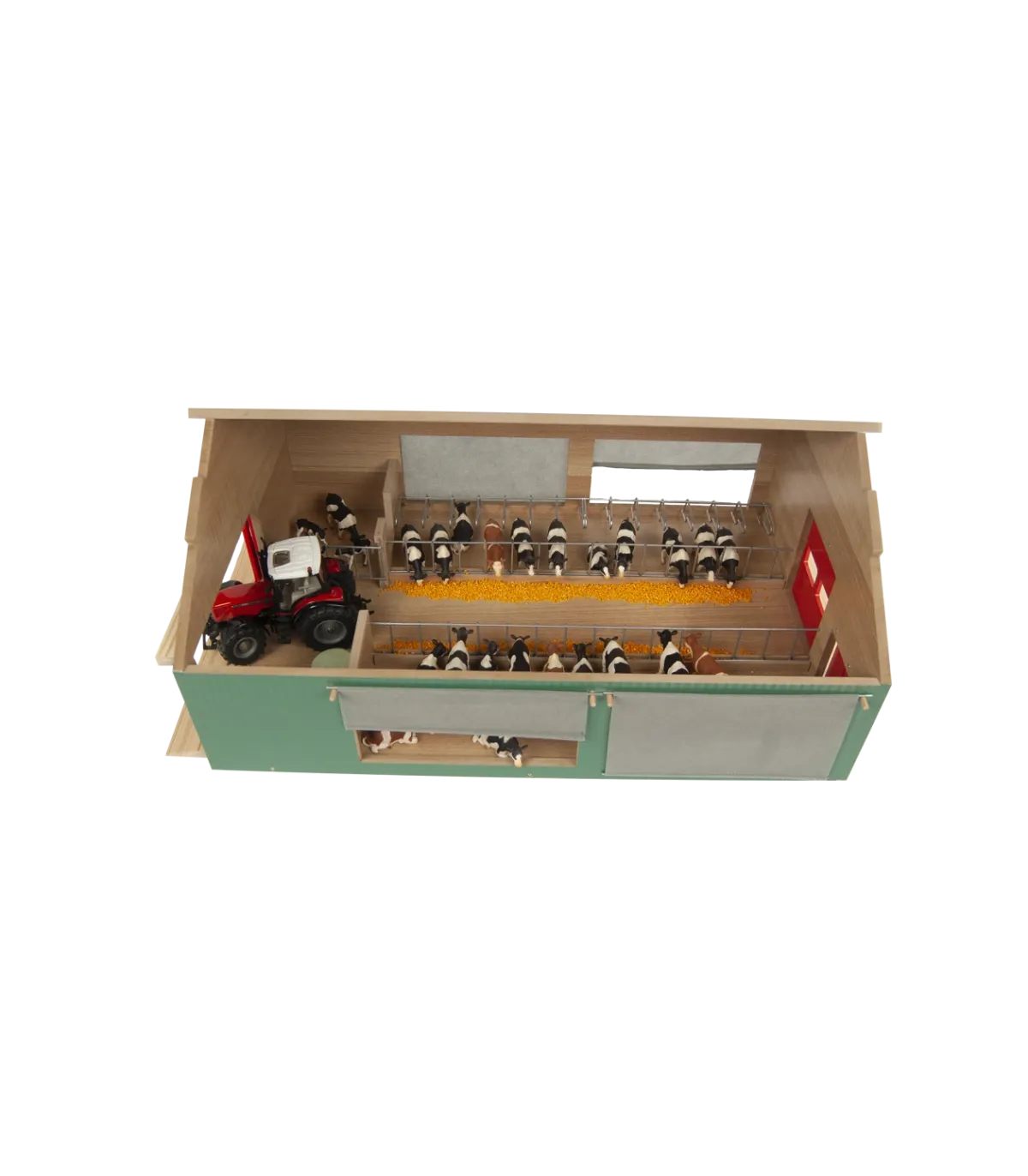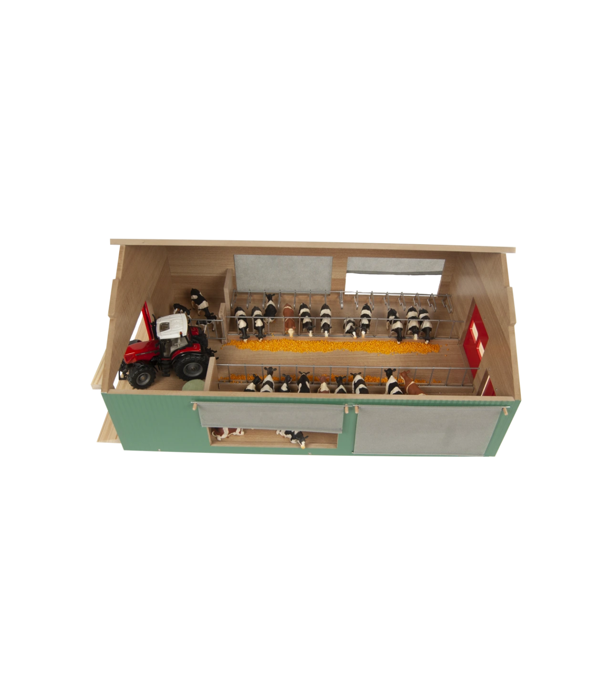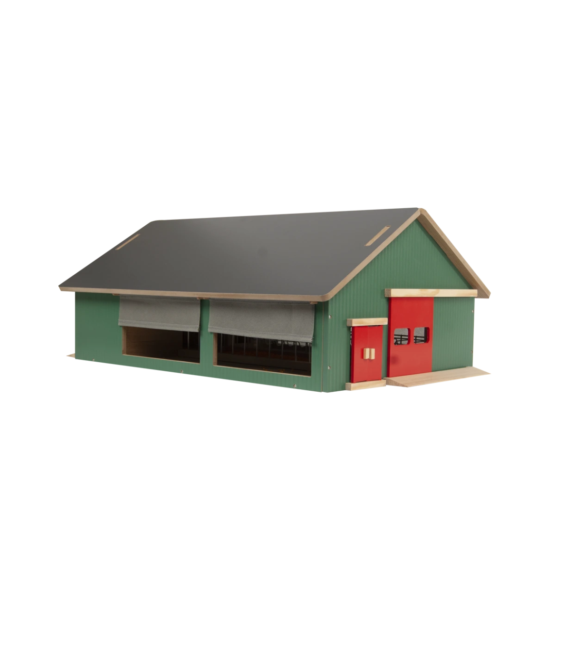 El establo Kids Globe es un robusto establo de juguete de madera, diseñado para niños pequeños que disfrutan jugando a una granja real. El techo es desmontable para facilitar el acceso a los animales y accesorios. La malla cortavientos está montada a los lados del establo, como en una granja real, para proteger a las vacas del frío y el viento. Este establo tiene una escala 1:32, lo que lo convierte en la combinación perfecta para vehículos y accesorios de marcas como Siku y Britains. ¡Completa tu mundo de granja con este establo!