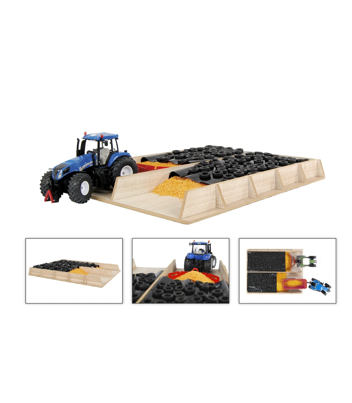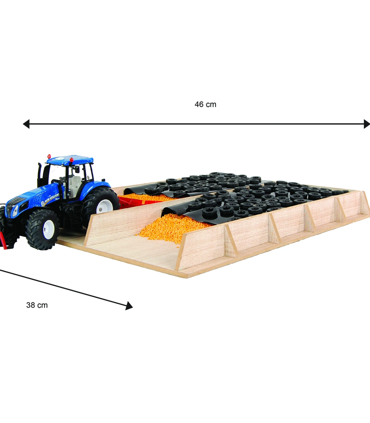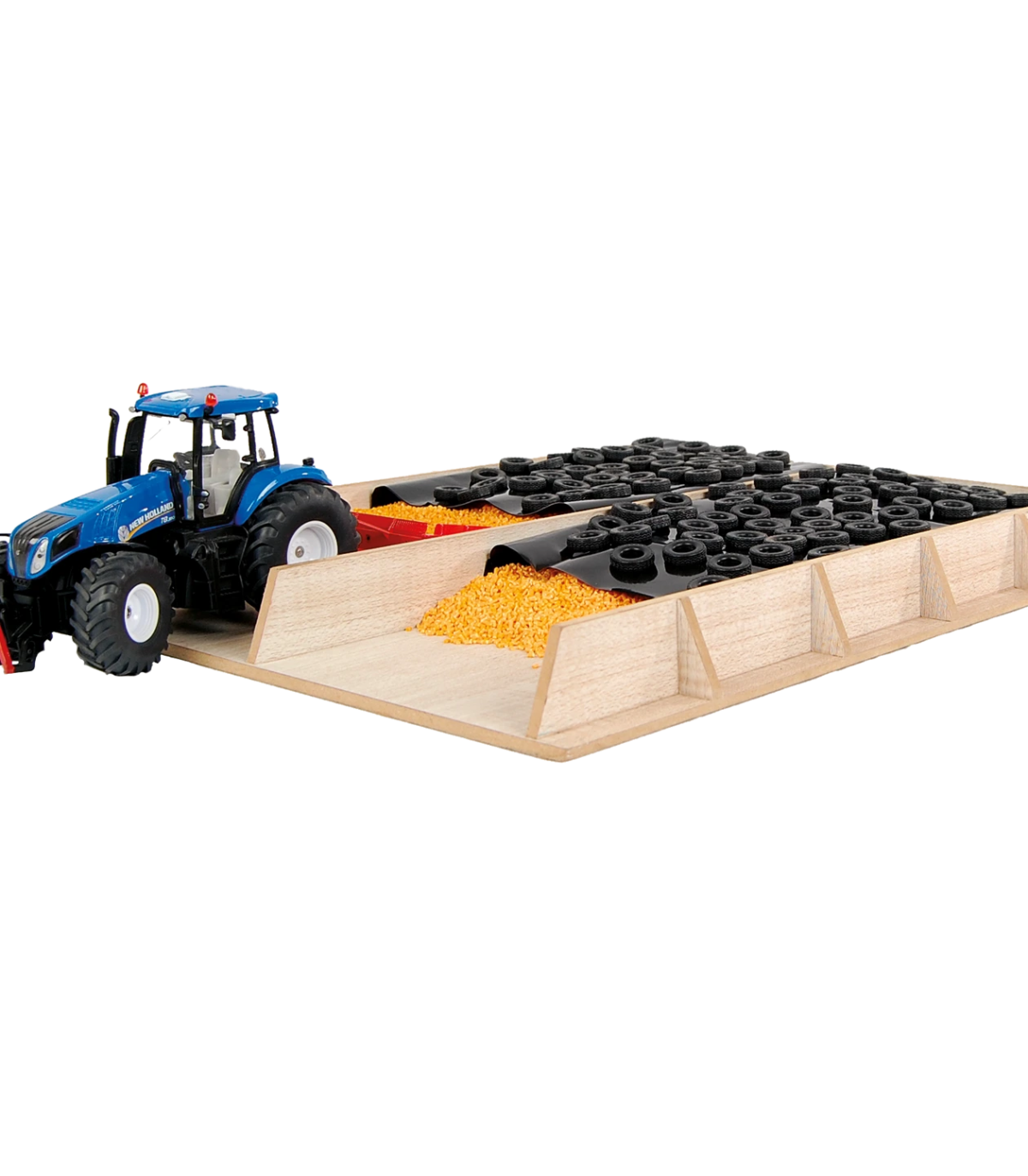 Una granja necesita un silo para alimentar a las vacas. Este silo es apto para tractores a escala 1:32 y tiene dos compartimentos: uno para maíz, por ejemplo, y otro para remolacha o hierba.