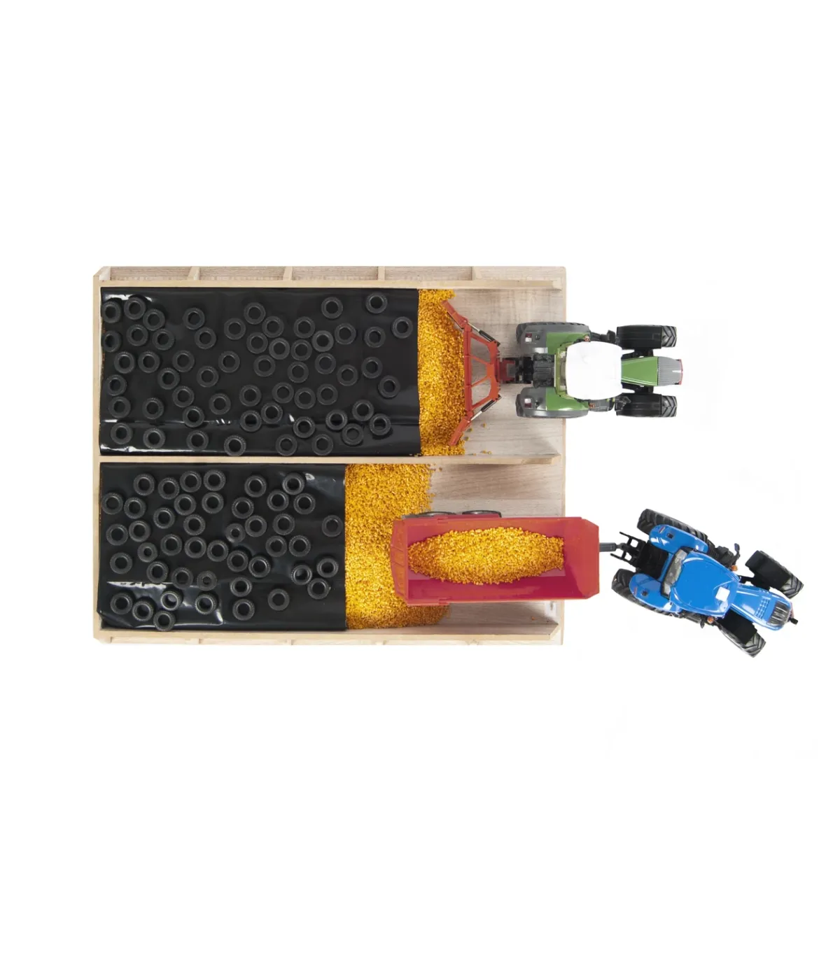 Haz que jugar con el silo sea aún más realista con la cubierta y las llantas. Después de verter el alimento en el silo, se puede cubrir con la cubierta. Luego, se colocan llantas encima para mantener la cubierta en su lugar. Esta cubierta es adecuada para los silos Kids Globe Farming en escalas 1:32 o 1:16.