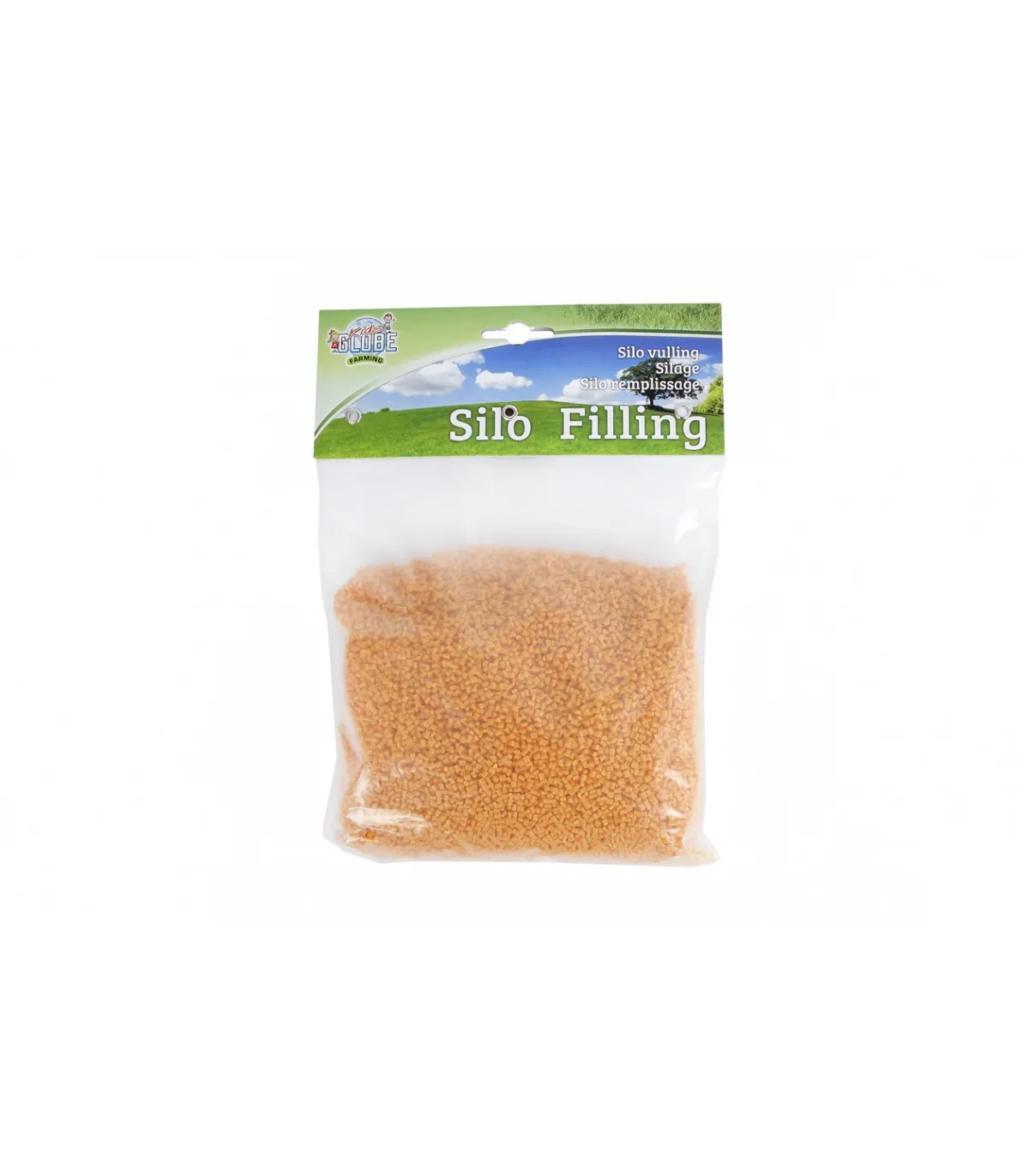 Por supuesto, el silo también necesita alimento. Los pellets de plástico se parecen a los granos de maíz y se procesan fácilmente con diversas máquinas Bruder. Se pueden recoger con la pala frontal del tractor o la cuchara de la pala y transportar con diversos carros. Esto hace que el juego imaginativo de los niños sea aún más realista, permitiéndoles recrear lo que han visto.