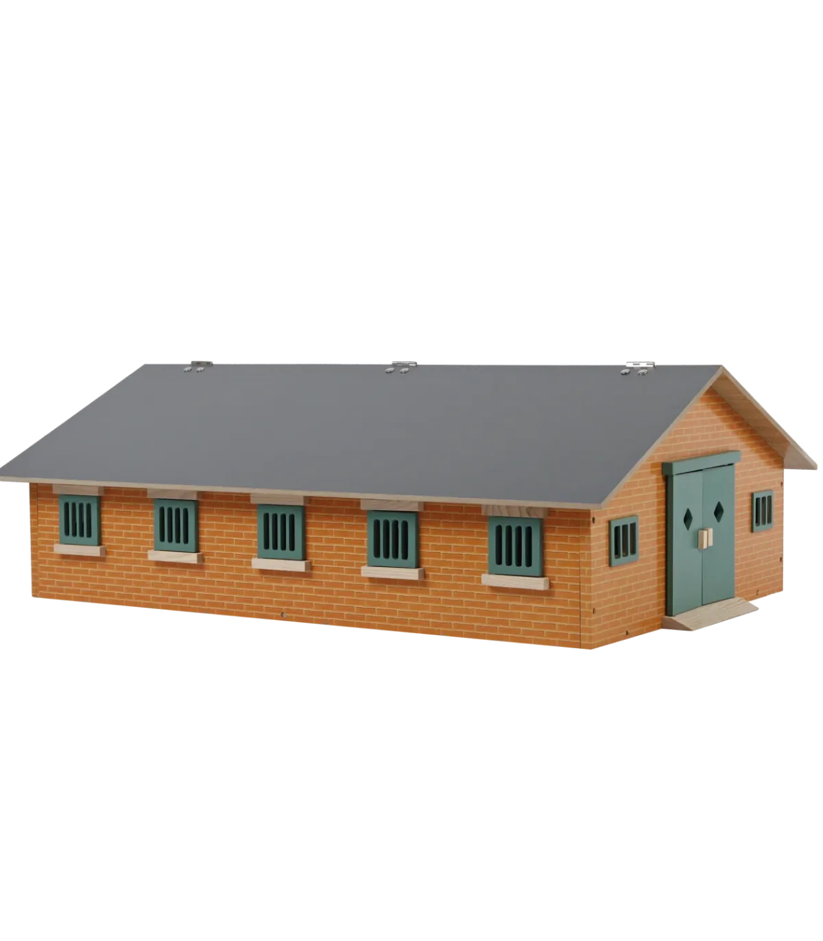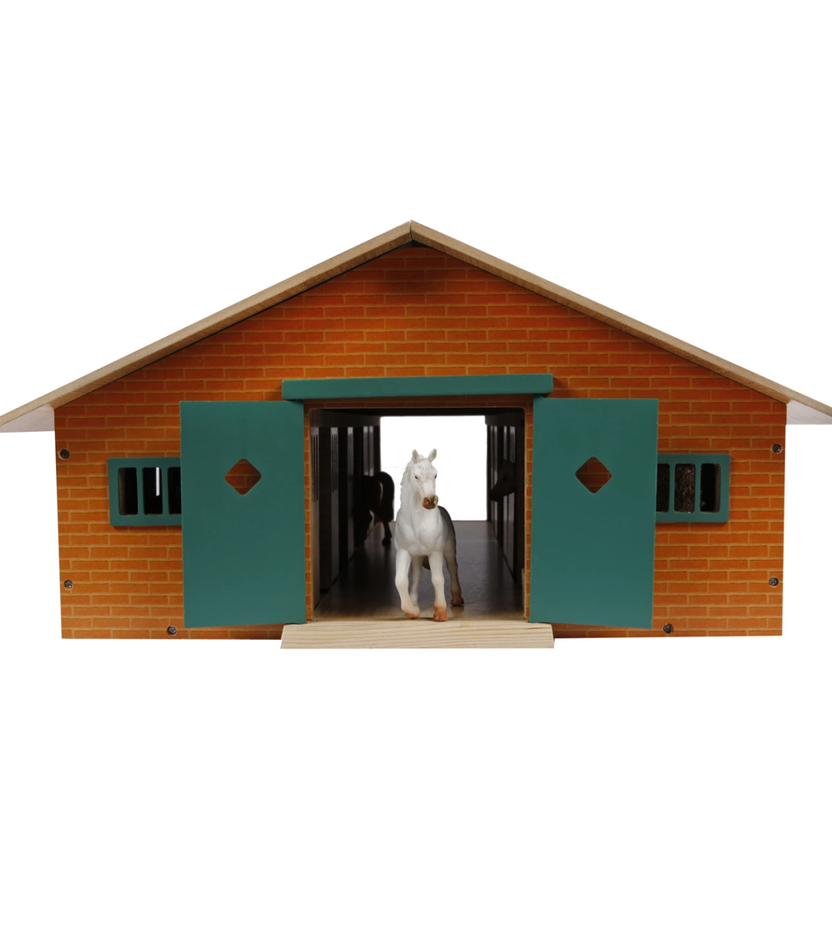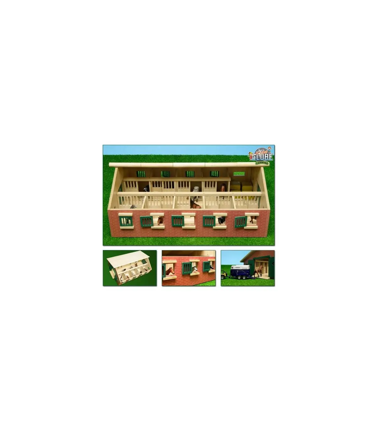 Todos los establos cuentan con puertas corredizas para que los caballos puedan entrar y salir. Todos los boxes tienen trampillas que se pueden abrir, lo que permite a los caballos estar cómodamente de pie con la cabeza fuera. Todos los boxes también cuentan con comederos. El establo también cuenta con un pequeño almacén para cosas como pacas de ensilado o pacas redondas de heno. Las grandes puertas a ambos lados del establo se pueden abrir. El techo se puede cerrar completamente; durante el juego, se puede abrir un panel del techo para facilitar el acceso.