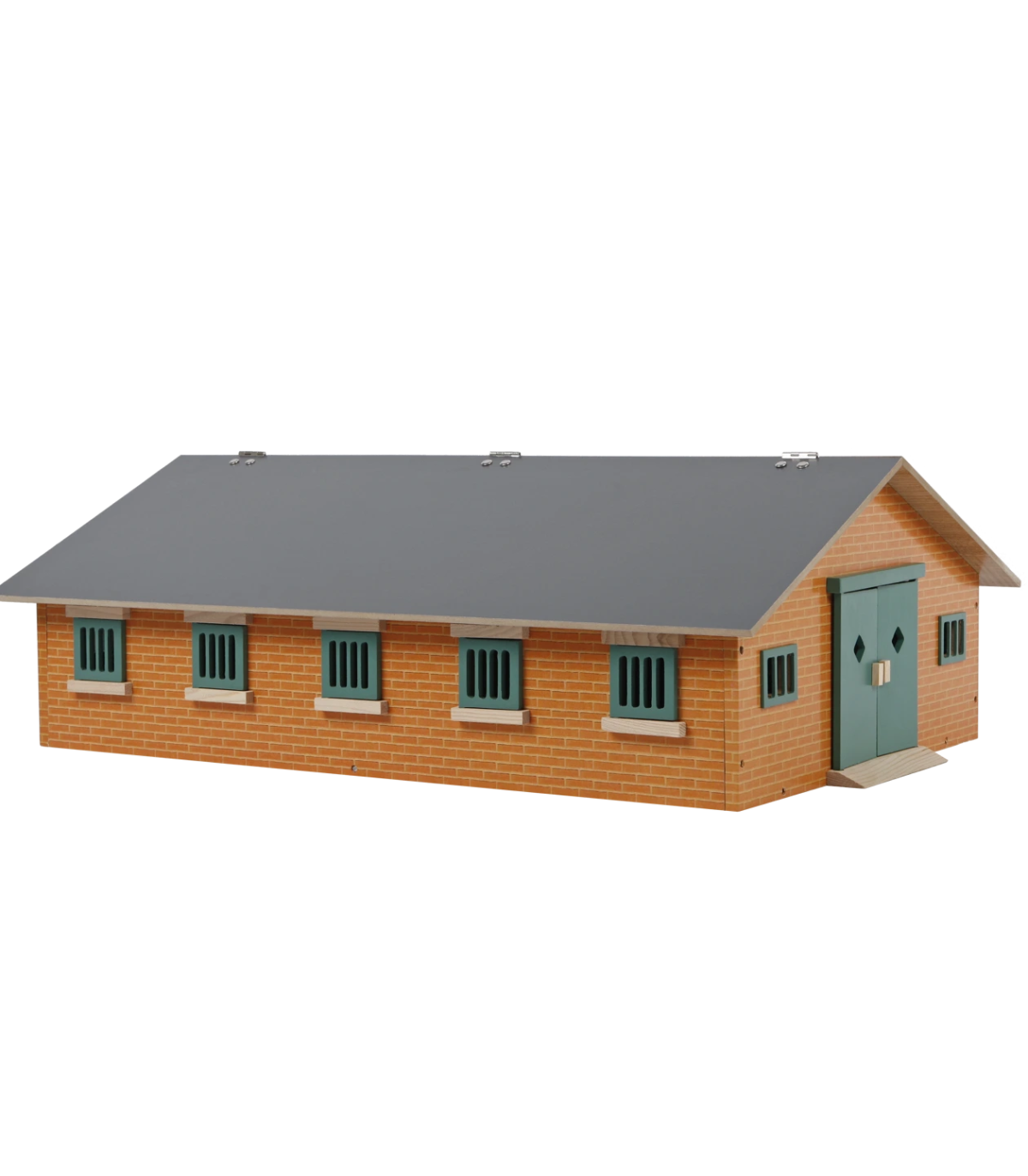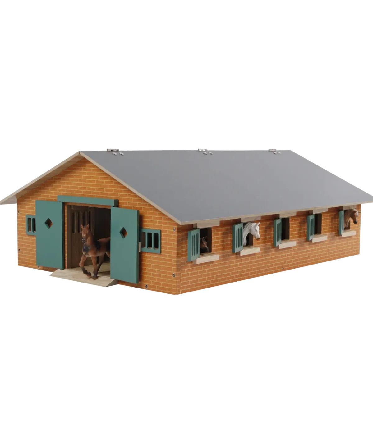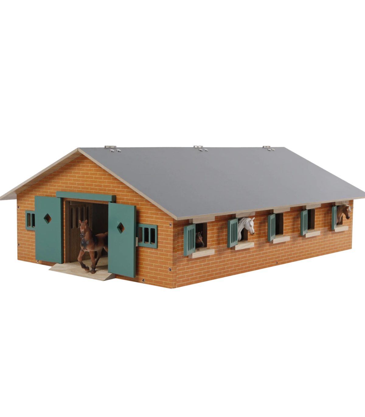 Todos los establos cuentan con puertas corredizas para que los caballos puedan entrar y salir. Todos los boxes tienen trampillas que se pueden abrir, lo que permite a los caballos estar cómodamente de pie con la cabeza fuera. Todos los boxes también cuentan con comederos. El establo también cuenta con un pequeño almacén para cosas como pacas de ensilado o pacas redondas de heno. Las grandes puertas a ambos lados del establo se pueden abrir. El techo se puede cerrar completamente; durante el juego, se puede abrir un panel del techo para facilitar el acceso.