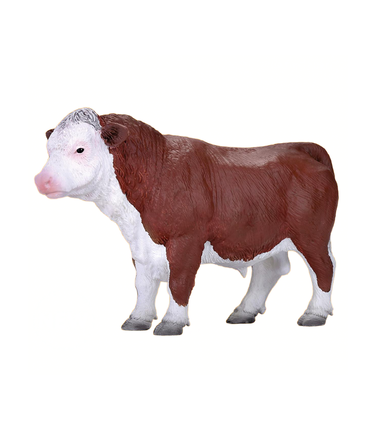 El Toro Mojo Hereford está esculpido en posición de pie, mirando hacia adelante. Está pintado de blanco en la cara, el cuello y la parte inferior, y de color marrón en el lomo y los costados, con la nariz rosada y las pezuñas grises, mientras que presenta detalles impresionantes en todo su pelaje. Este modelo de vaca macho es perfecto para tu juego de granja imaginario y tu colección de animales de campo, especialmente cuando se combina con la vaca y el ternero Mojo Hereford 2024 para una dulce familia de granjeros.