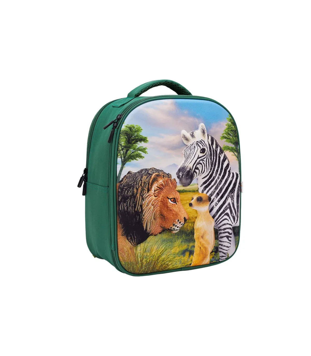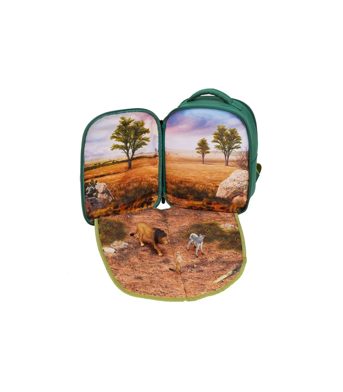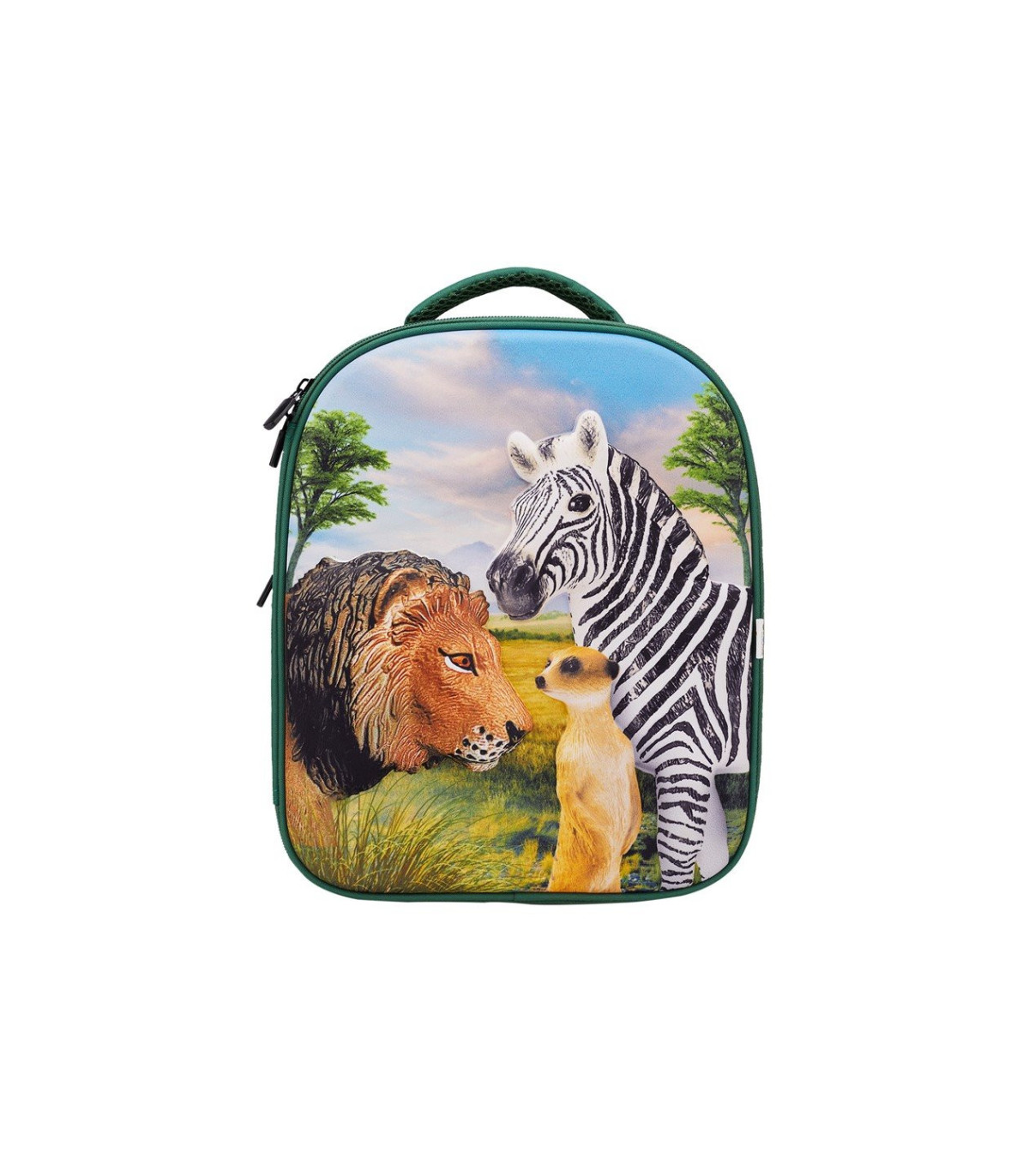 Mochila Selva 3D con 3 figuras y folleto de coleccionista (Leon, Zebra y Suricato)