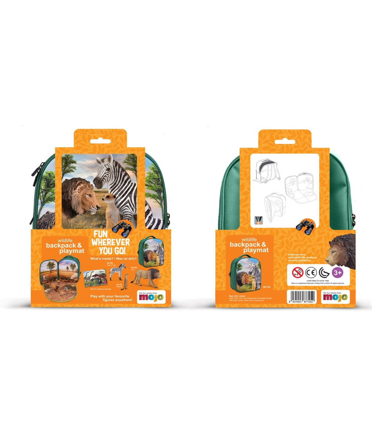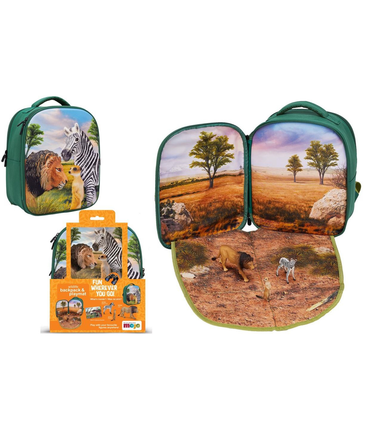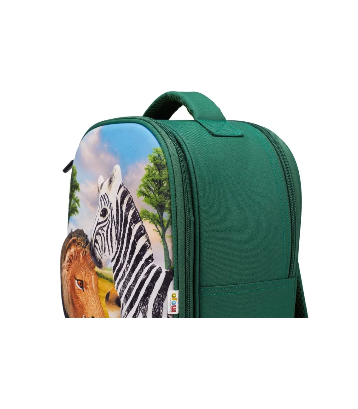 Mochila Selva 3D con 3 figuras y folleto de coleccionista (Leon, Zebra y Suricato)