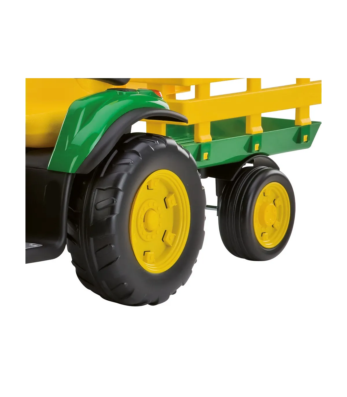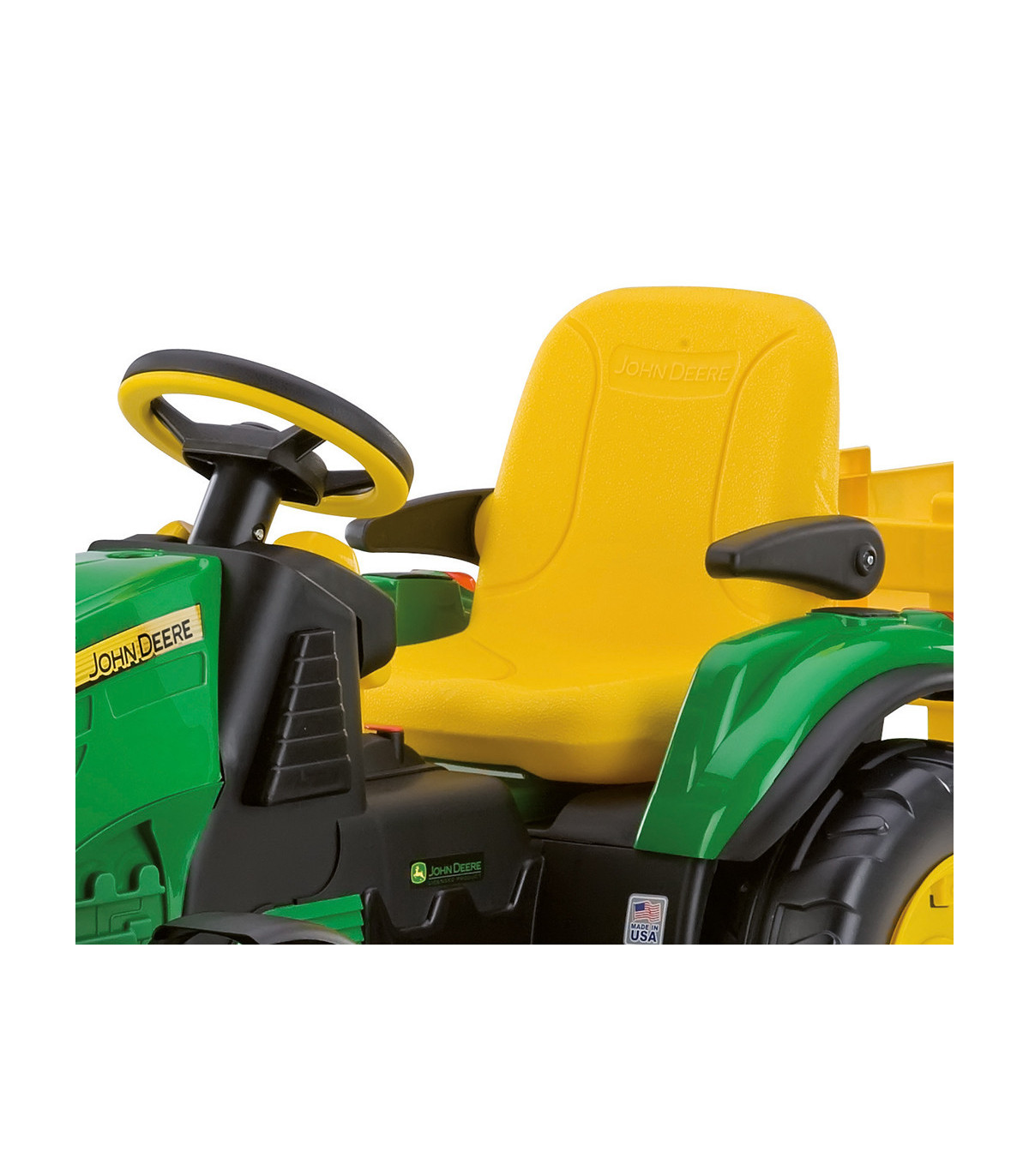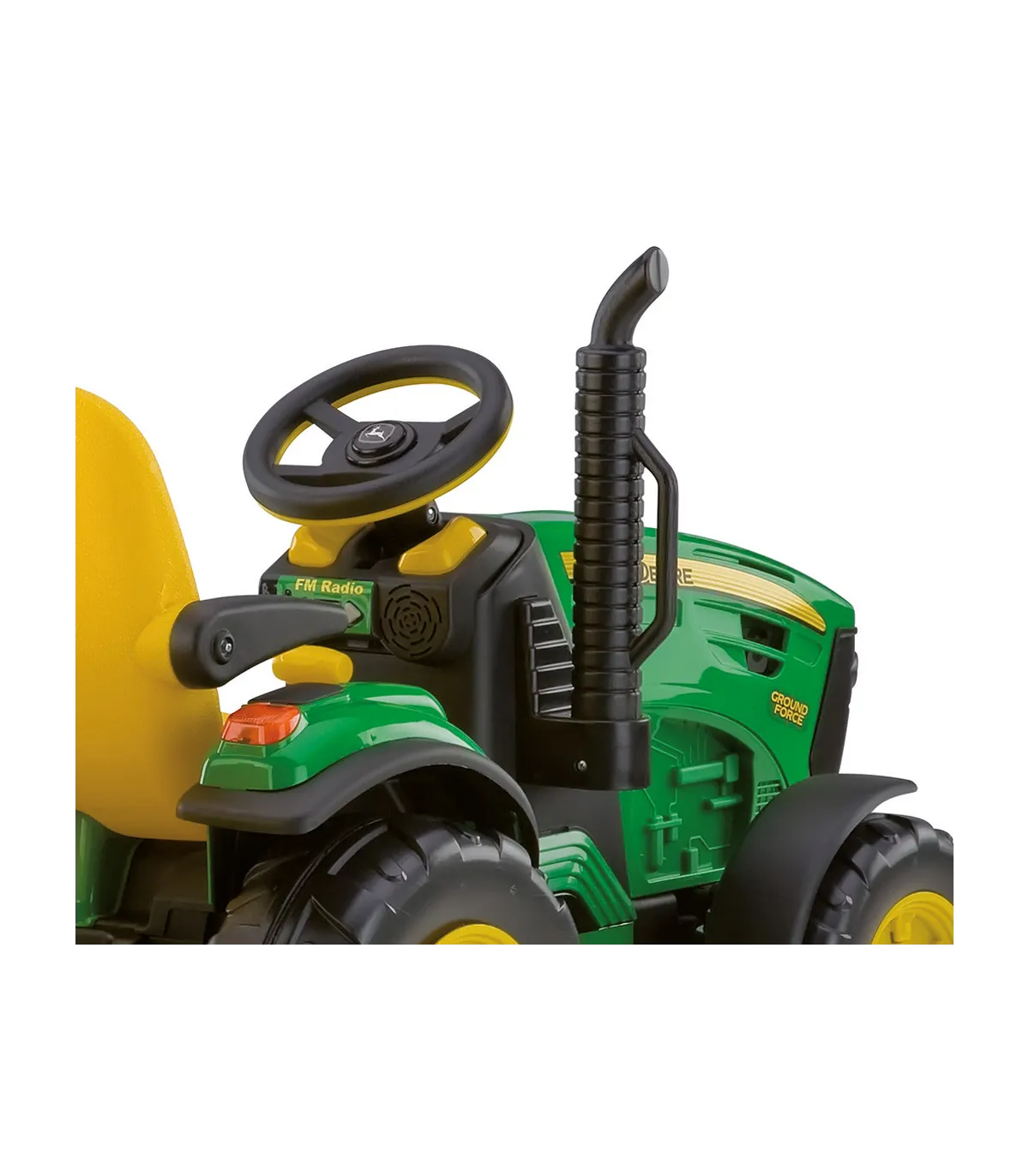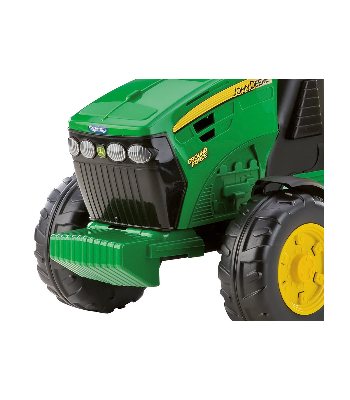 ¡Para jugar al aire libre con una marcha más! John Deere Ground Force es una fiel reproducción del tractor americano John Deere más famoso del mundo. Los niños lo adoran por su majestuosidad, sus inconfundibles colores verde y amarillo y sus especiales características. Este precioso tractor eléctrico es ideal a partir de los 3 años de edad. Funciona con una batería recargable de 12 voltios/8 Ah.