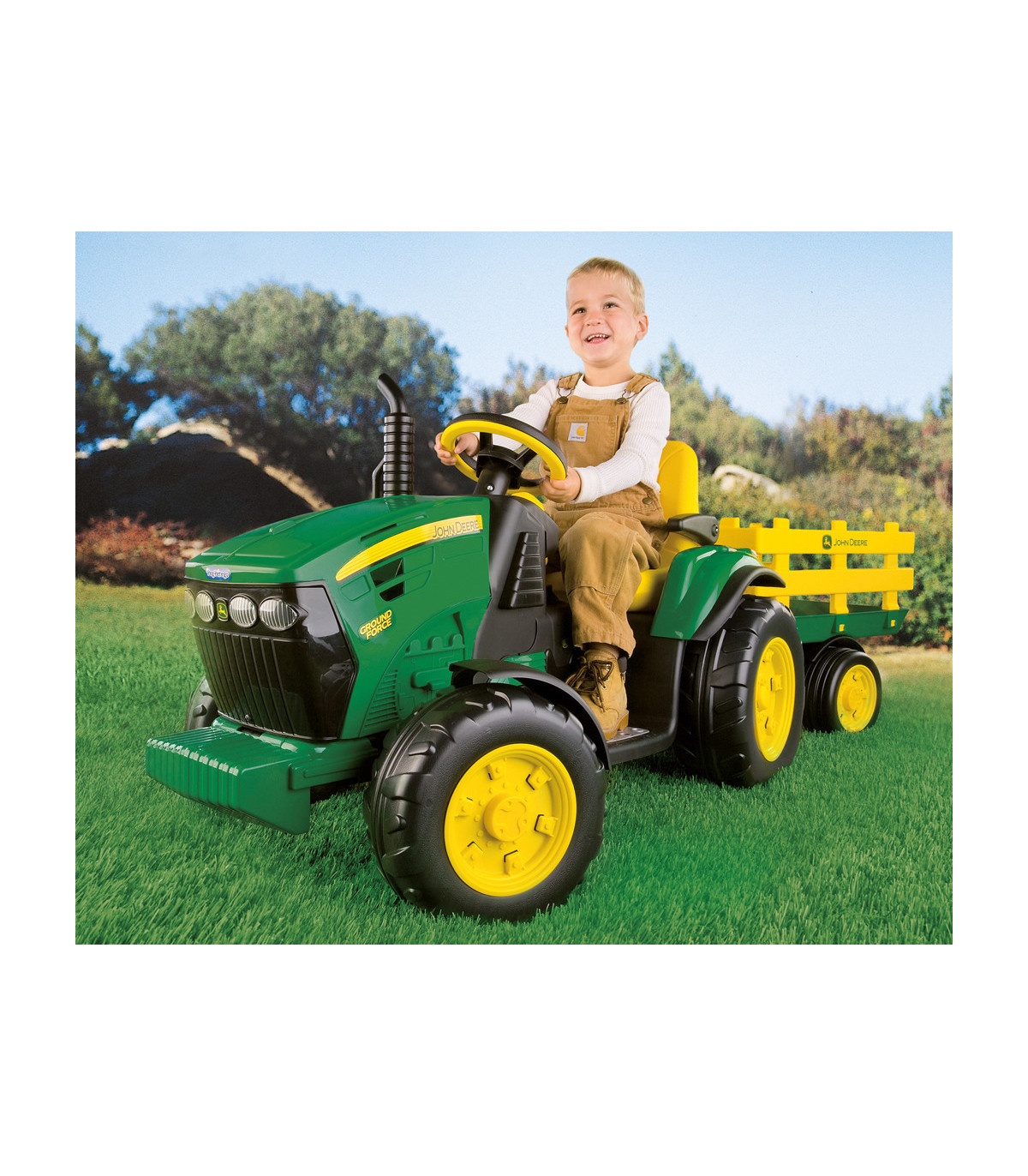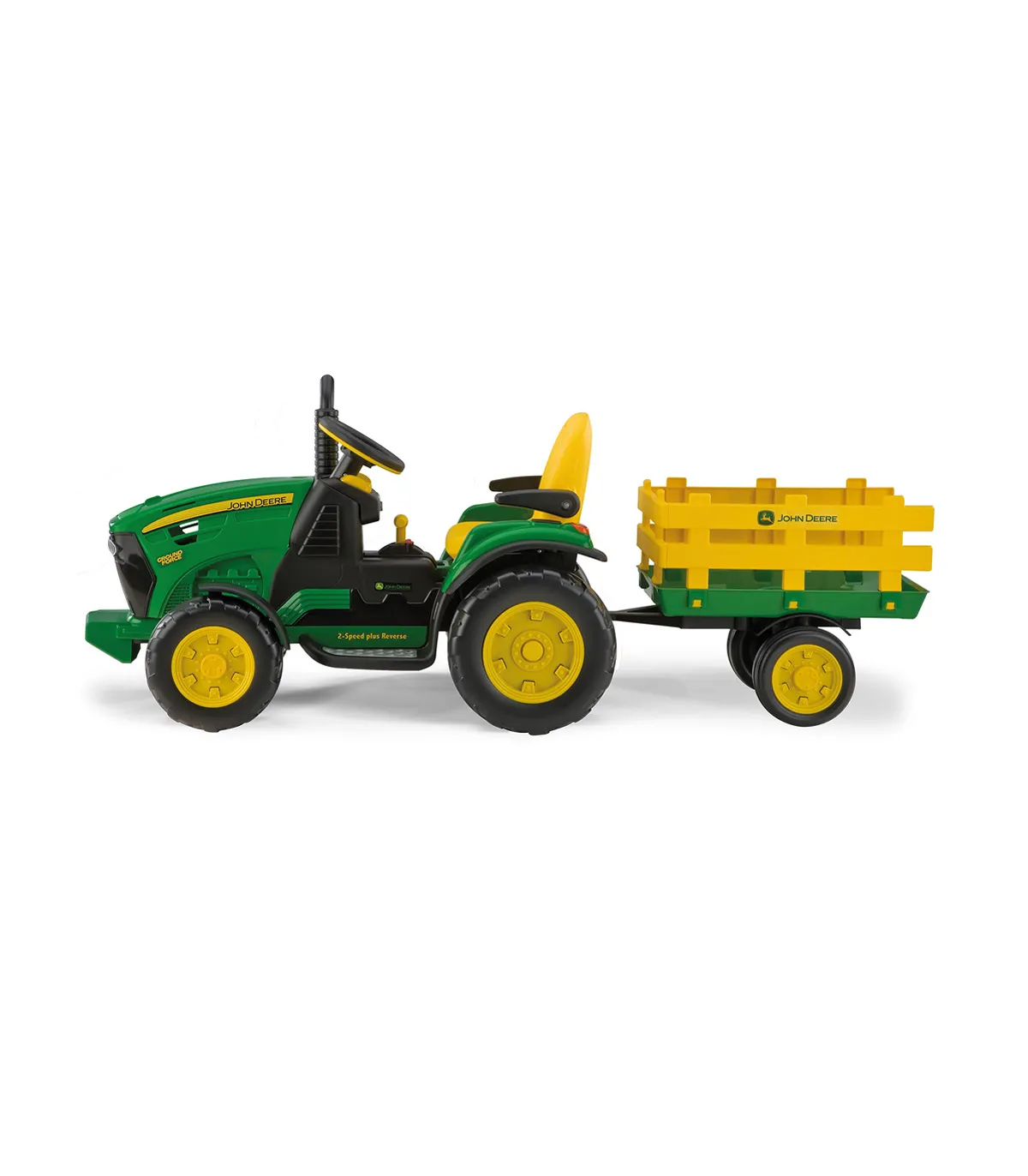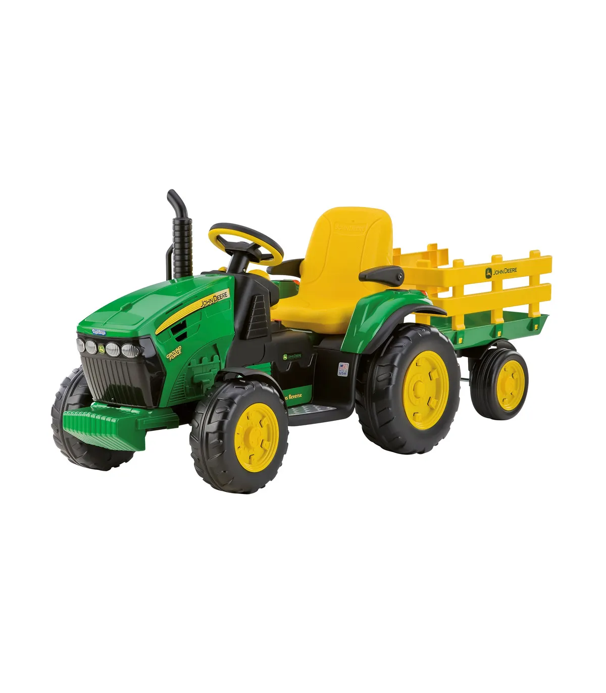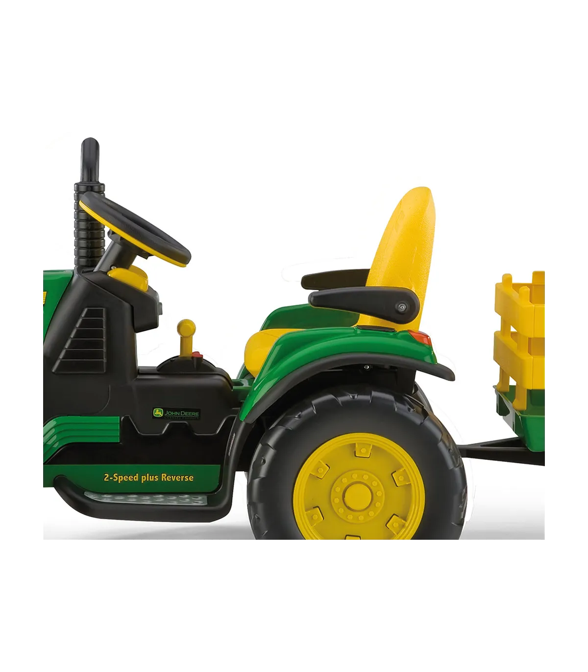 ¡Para jugar al aire libre con una marcha más! John Deere Ground Force es una fiel reproducción del tractor americano John Deere más famoso del mundo. Los niños lo adoran por su majestuosidad, sus inconfundibles colores verde y amarillo y sus especiales características. Este precioso tractor eléctrico es ideal a partir de los 3 años de edad. Funciona con una batería recargable de 12 voltios/8 Ah.