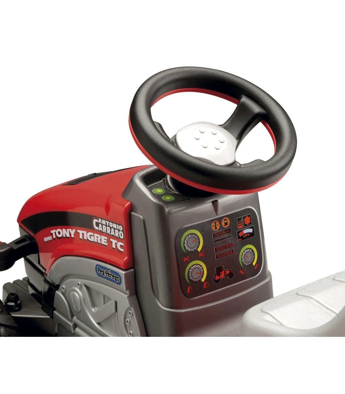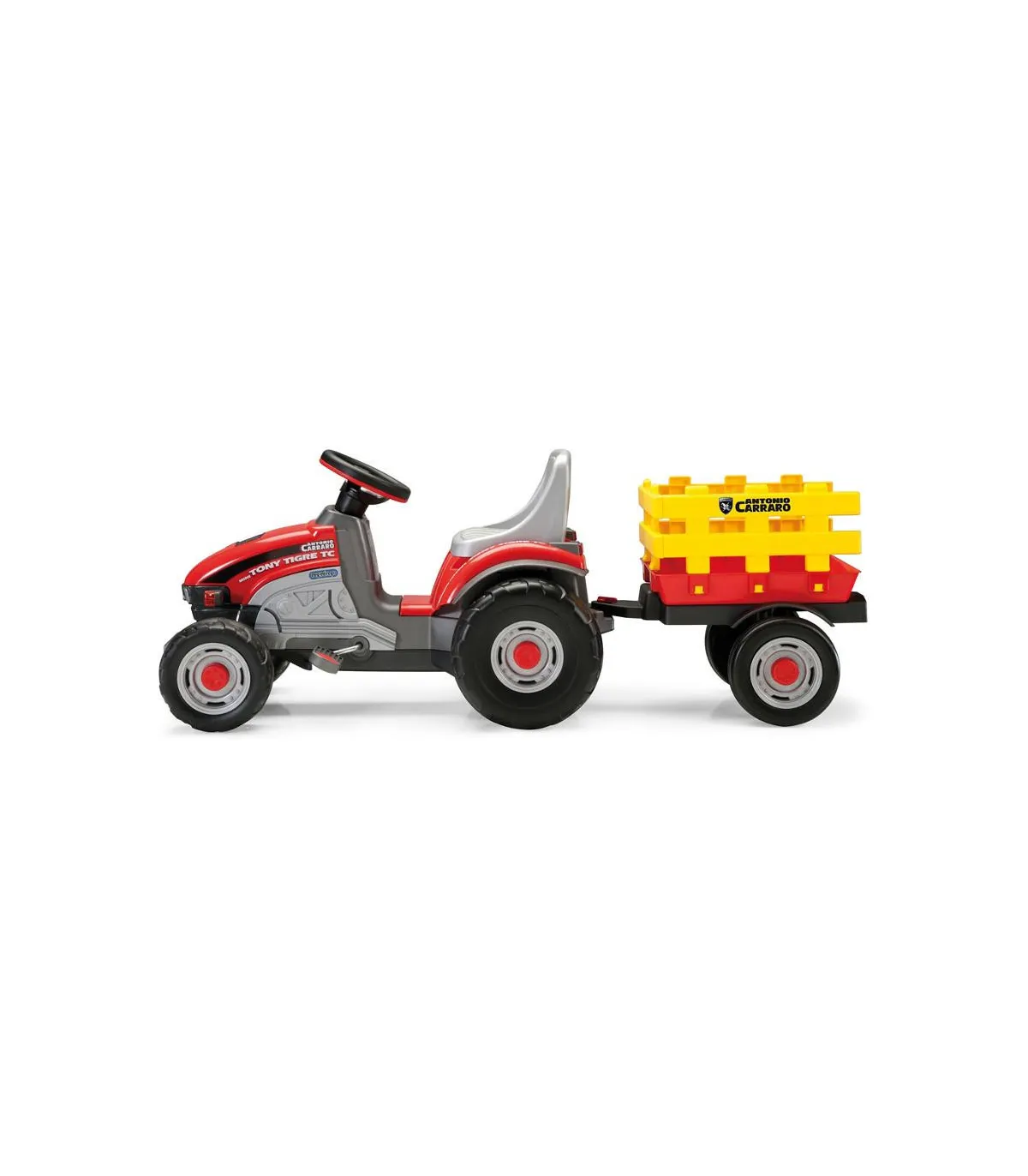 El tractor Antonio Carraro para niños a partir de 2 años. Mini Tony Tigre es el tractor Antonio Carraro, el famoso productor italiano de maquinaria agrícola. El tractor, que funciona con cadena, es apto a partir de los 2 años de edad. Es ideal para que tu hijo pase horas de diversión al aire libre pedaleando con su propio tractor, como un verdadero agricultor