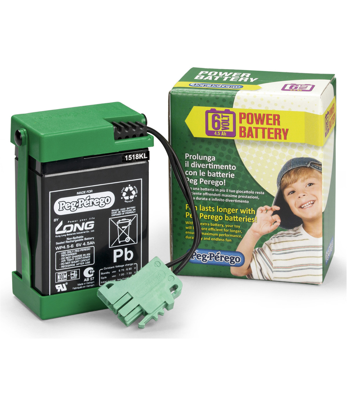 Las baterías recargables originales de Peg Perego no solo son útiles para sustituir las viejas baterías agotadas, sino también para ofrecer un mayor tiempo de uso del juguete.