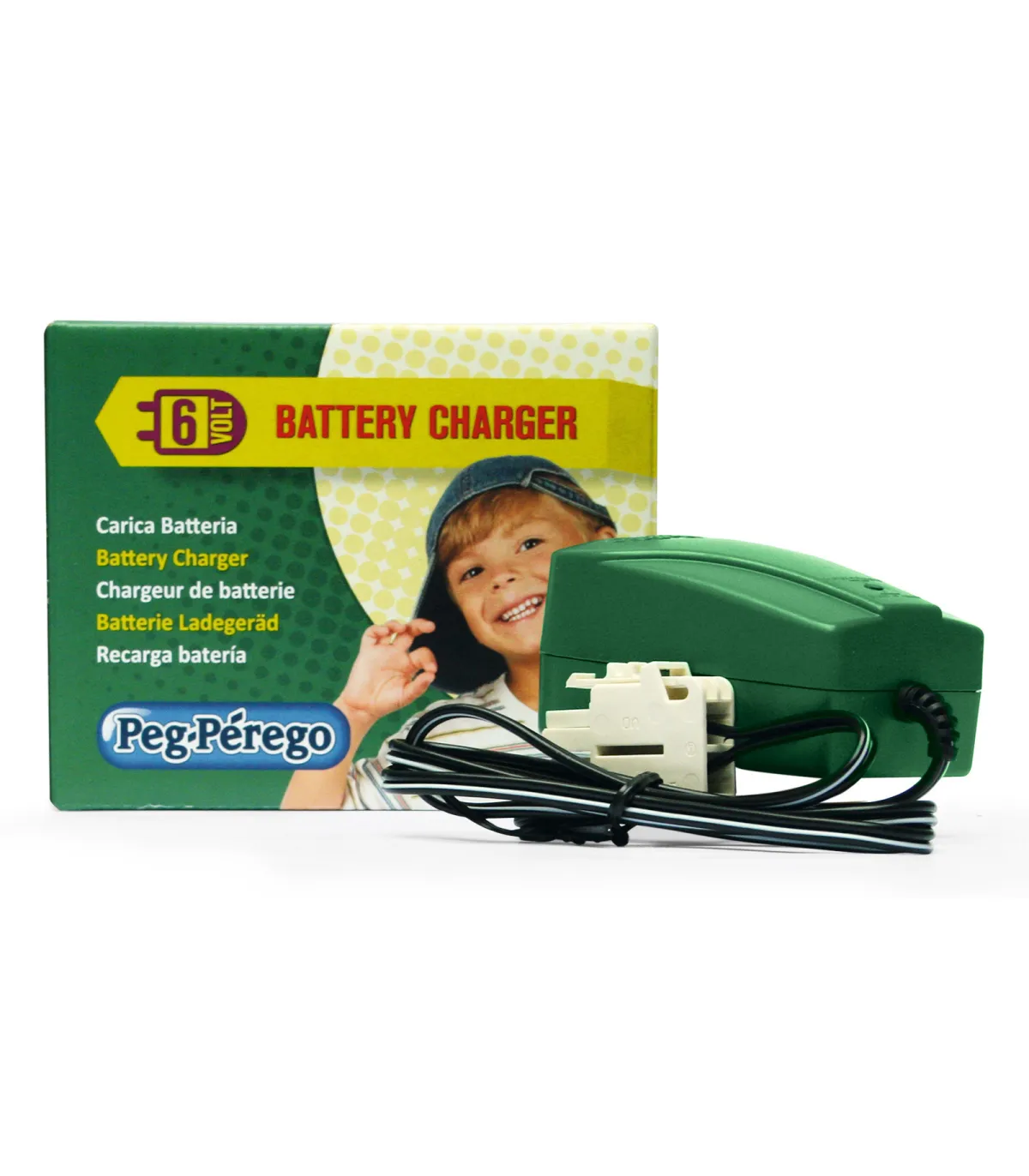Carga sencilla y más fácil. Los cargadores originales de Peg Perego se pueden comprar por separado como pieza de recambio o como segundo cargador para dejar en casa de los abuelos, en la casa de la playa o, simplemente, para tenerlo de repuesto. La recarga se efectúa conectando el transformador a la batería y enchufándolo a una sencilla toma de corriente doméstica. El cargador cuenta con un testigo led que se vuelve verde cuando la batería ya está cargada.