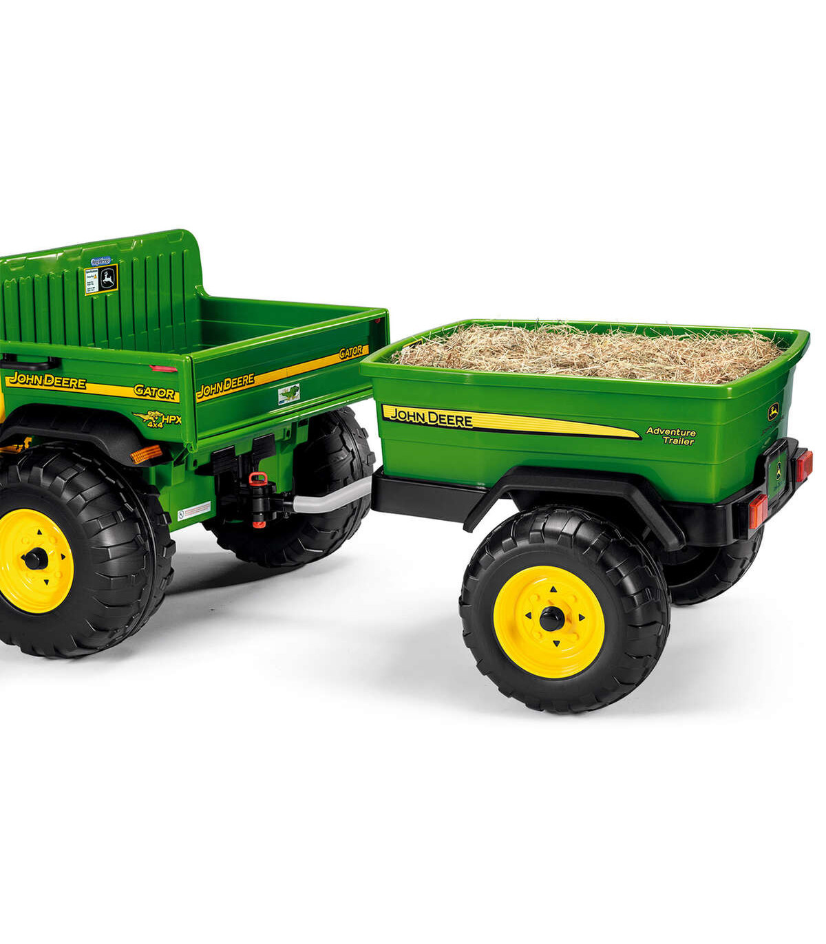 Es el remolque para los modelos John Deere Gator, incluso los menos recientes. Se engancha fácilmente gracias al gancho para remolque incluido.