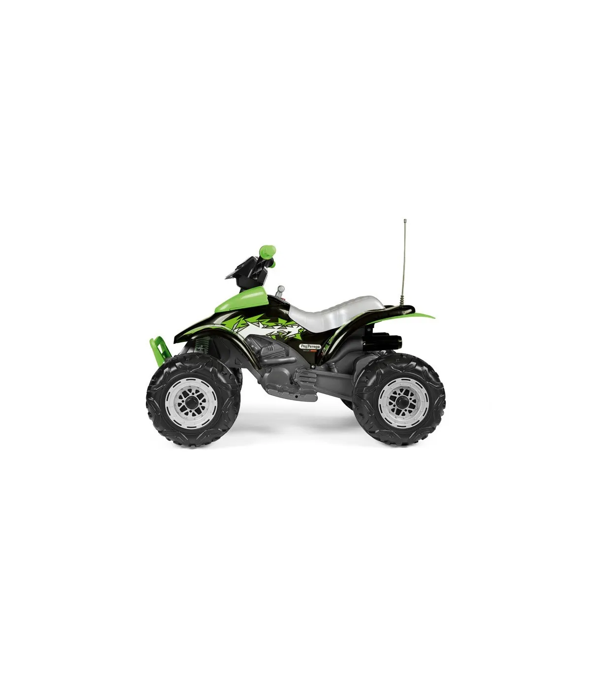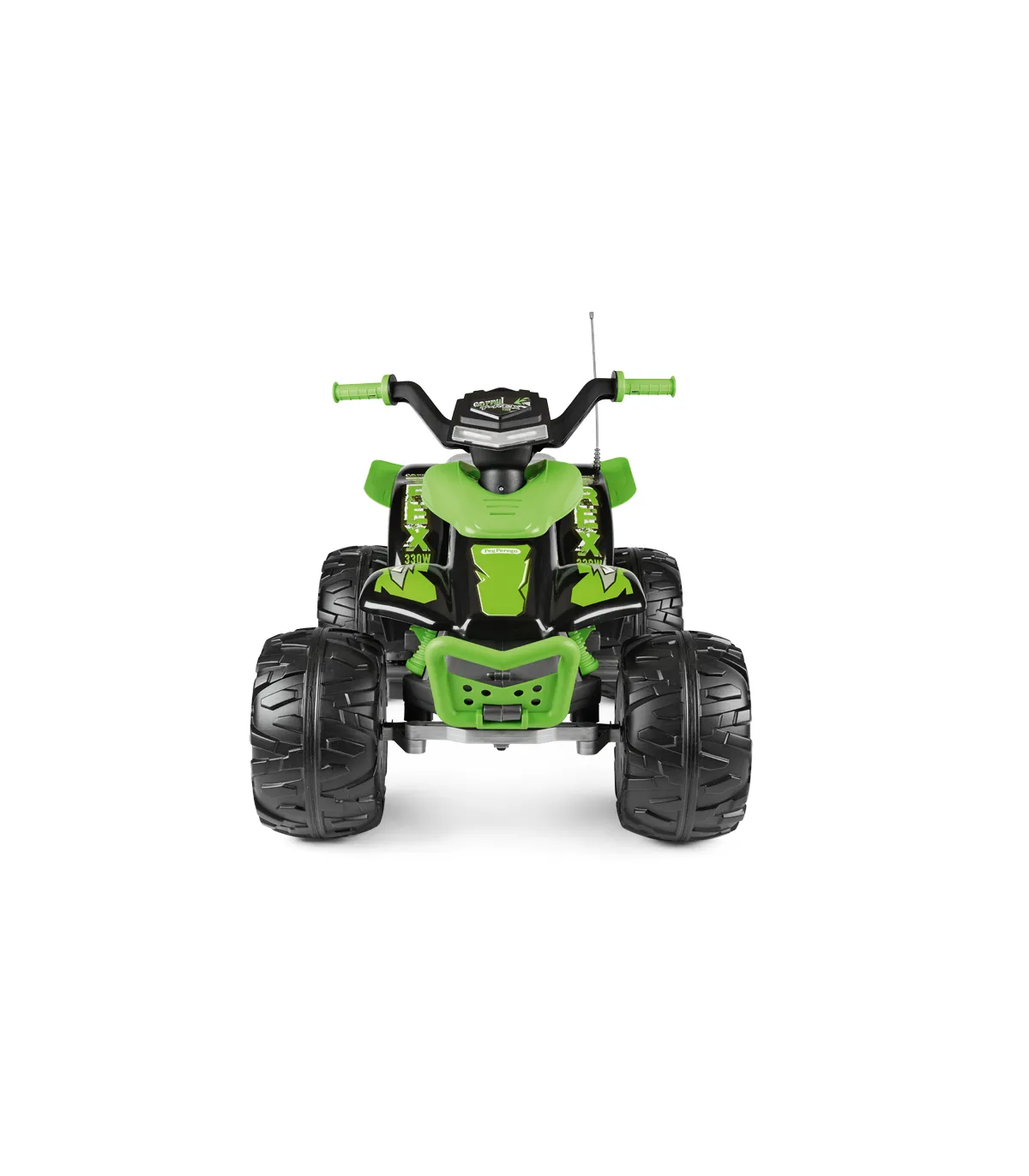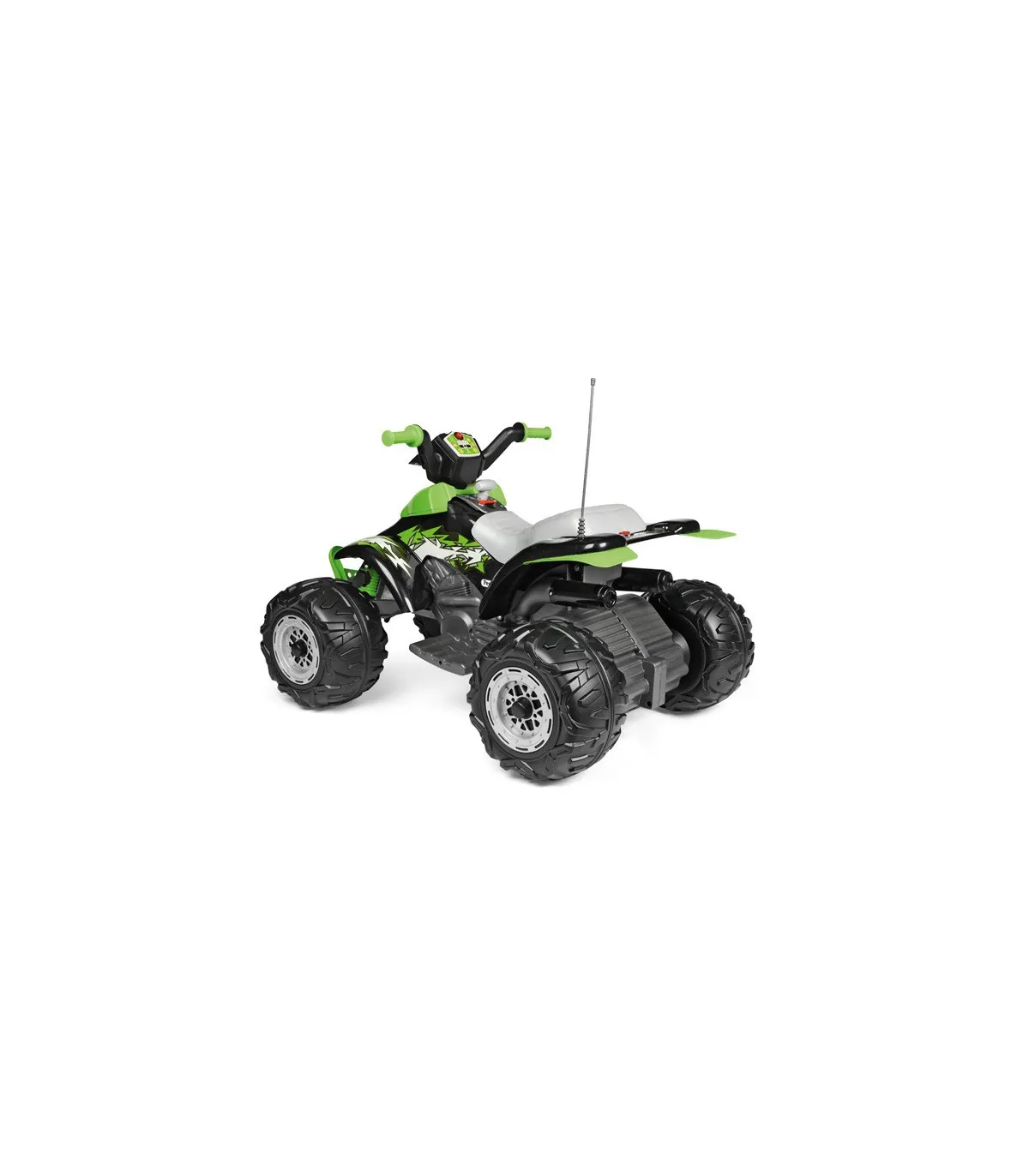 El marchoso quad eléctrico con luces y sonidos . El Corral T-Rex 330W es el icónico quad de Peg Perego siempre listo para vivir nuevas aventuras. Calidad Made in Italy y características de alto rendimiento como luces, sonidos, melodías y claxon, para divertirse a partir de 3 años. El quad eléctrico funciona con una batería recargable de 12 V - 8 Ah