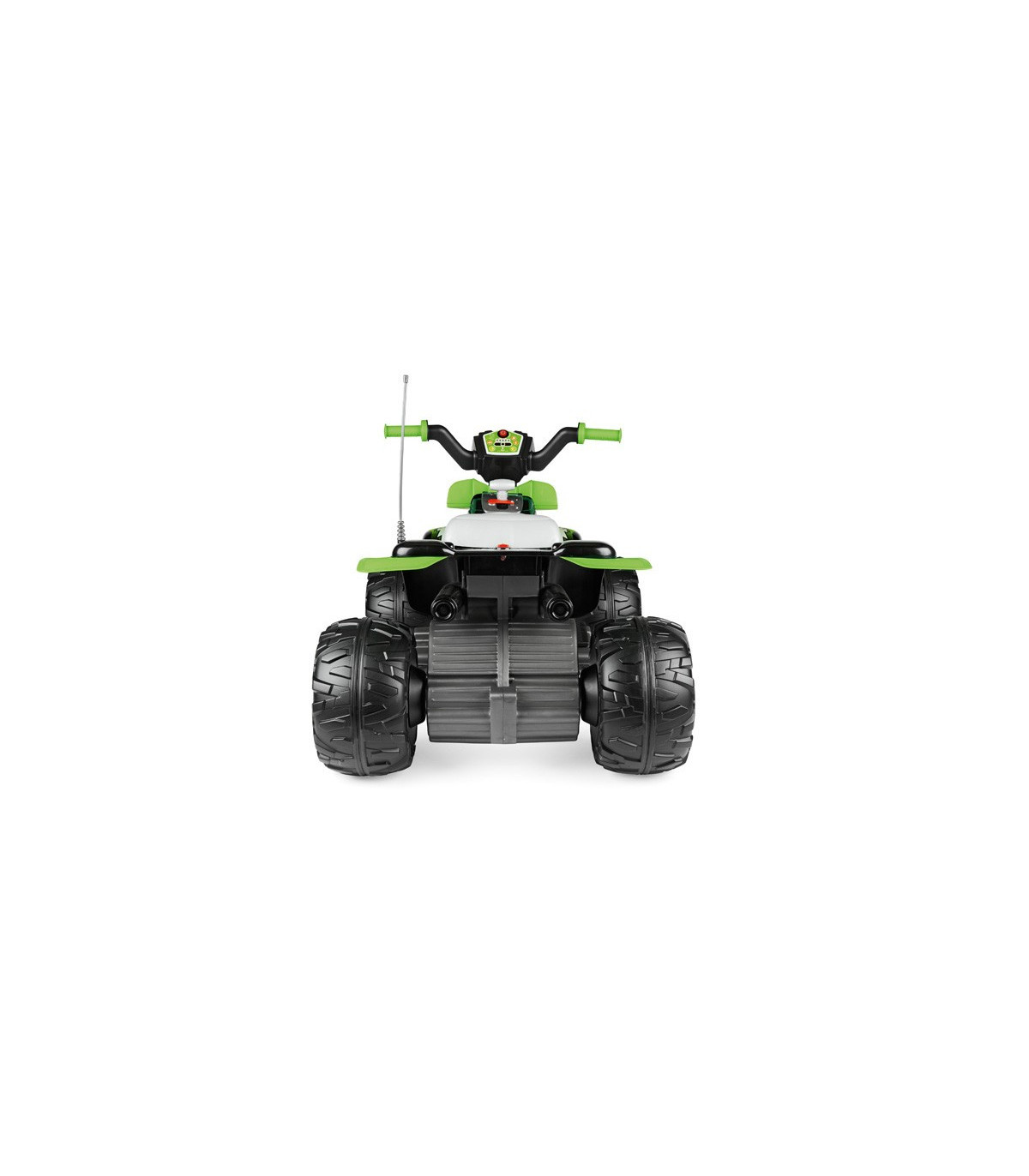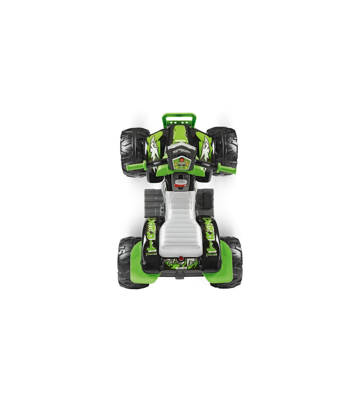 El Corral T-Rex 330W de Peg Perego es un quad con carácter todoterreno. Gracias a sus grandes ruedas, el asiento es más alto, lo que permite una conducción segura fuera de la carretera. El Corral T-Rex alcanza una velocidad máxima de 6,7 km / hy lo lleva en casi cualquier pista todoterreno gracias a las cuatro grandes ruedas, el parachoques delantero que protege en caso de impacto y los faldones guardabarros que mantienen fuera el agua sucia. Los guardabarros traseros también protegen contra el barro y las salpicaduras de agua, le dan a la carrocería una apariencia dinámica y evitan rayones. Los puños con revestimiento antideslizante garantizan una sujeción segura del manillar incluso en terrenos accidentados. El Corral T-Rex tiene todo lo que los grandes aventureros quieren para un gran placer de conducción. Los reposapiés anchos garantizan un apoyo óptimo incluso en las curvas.