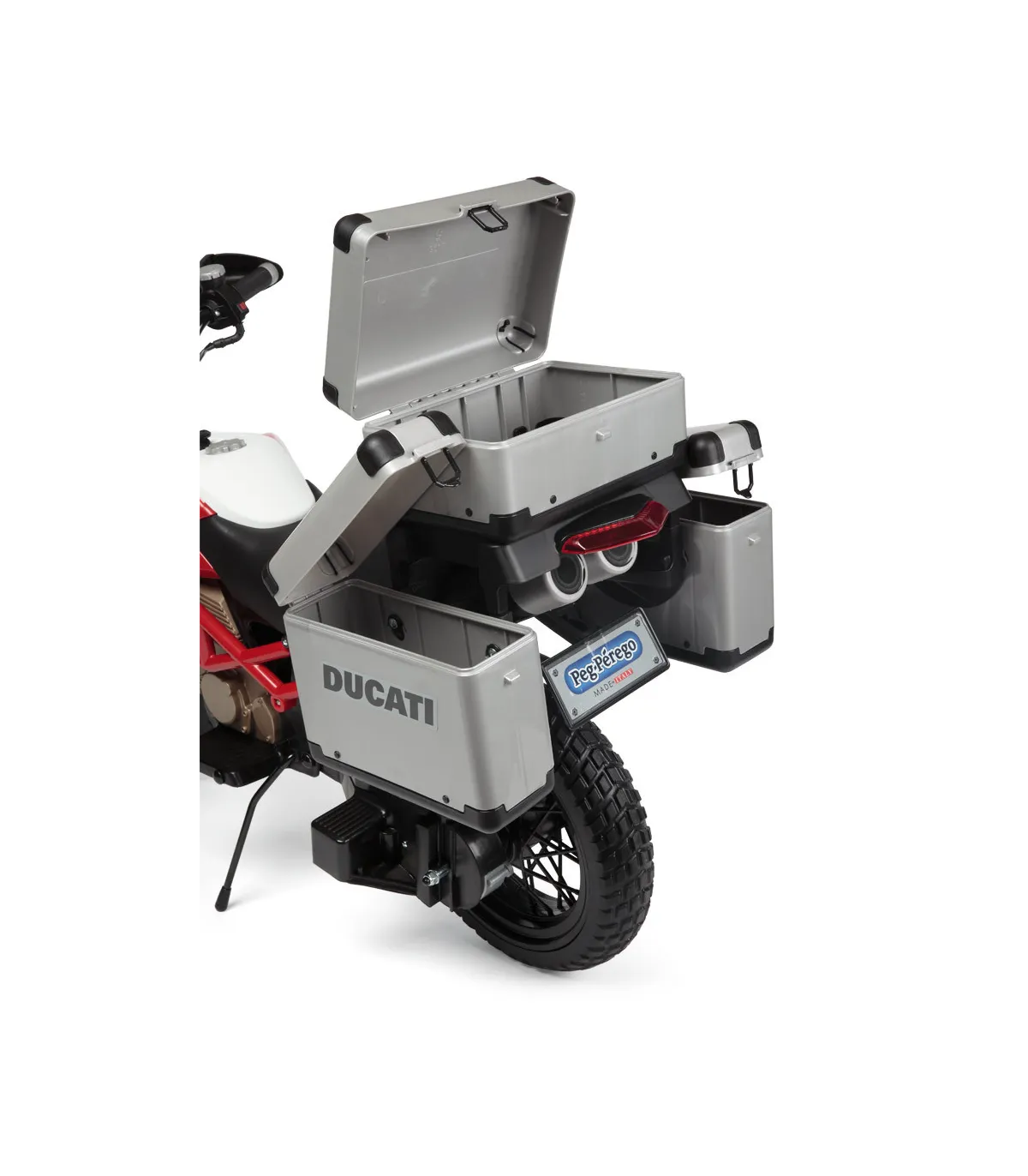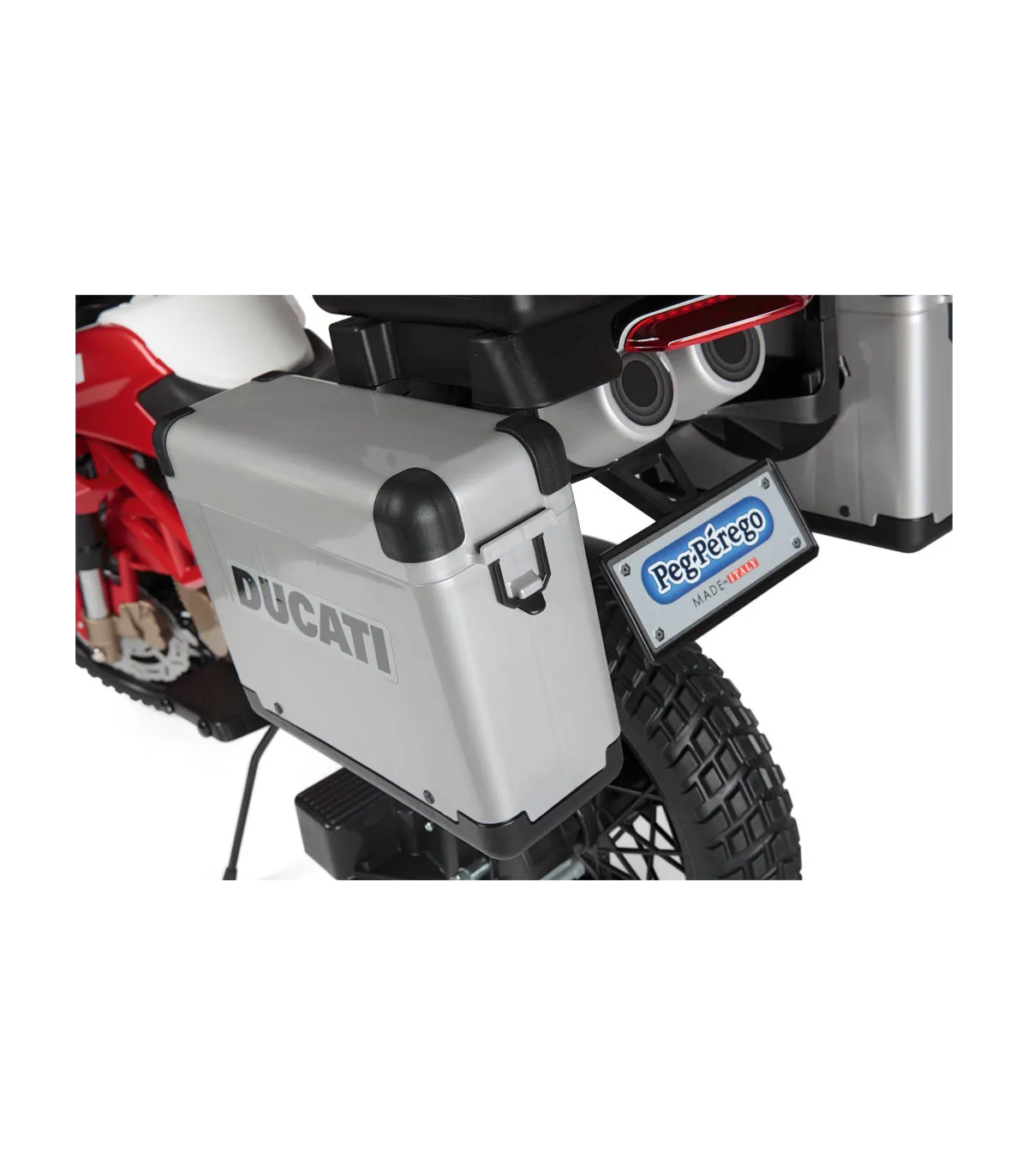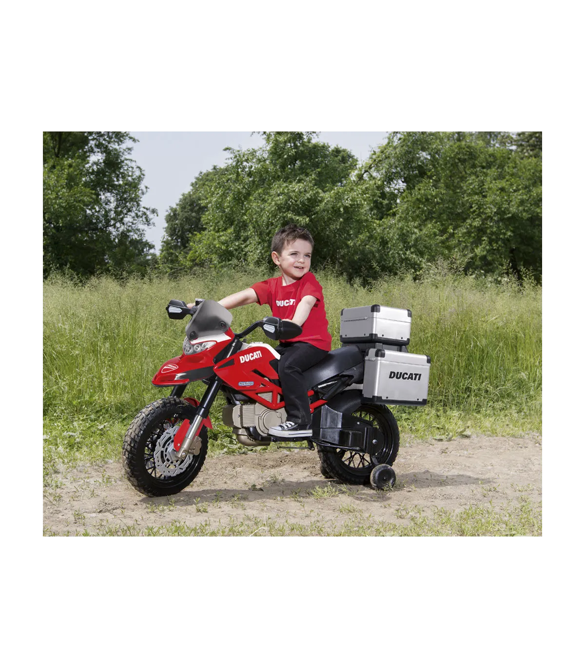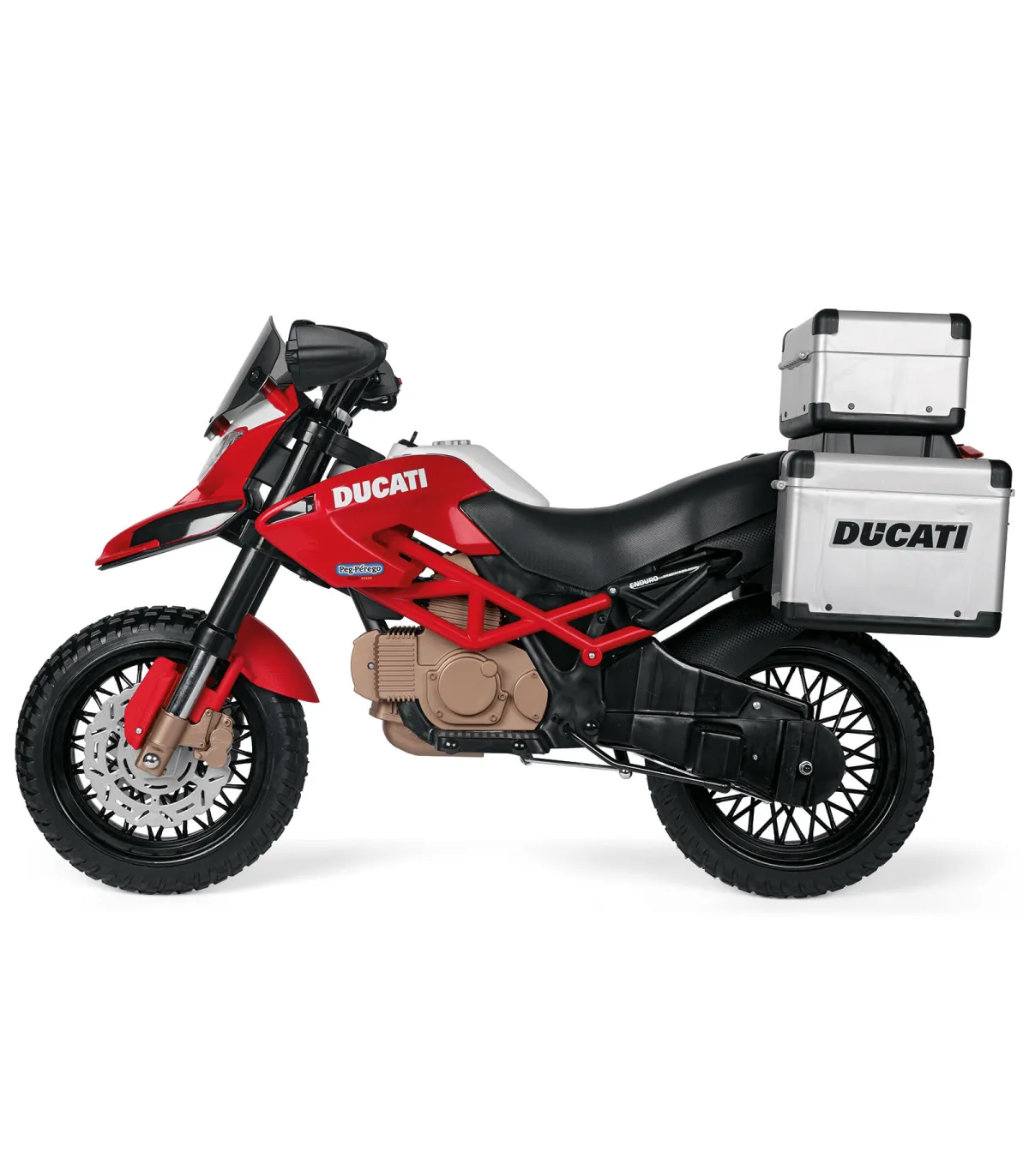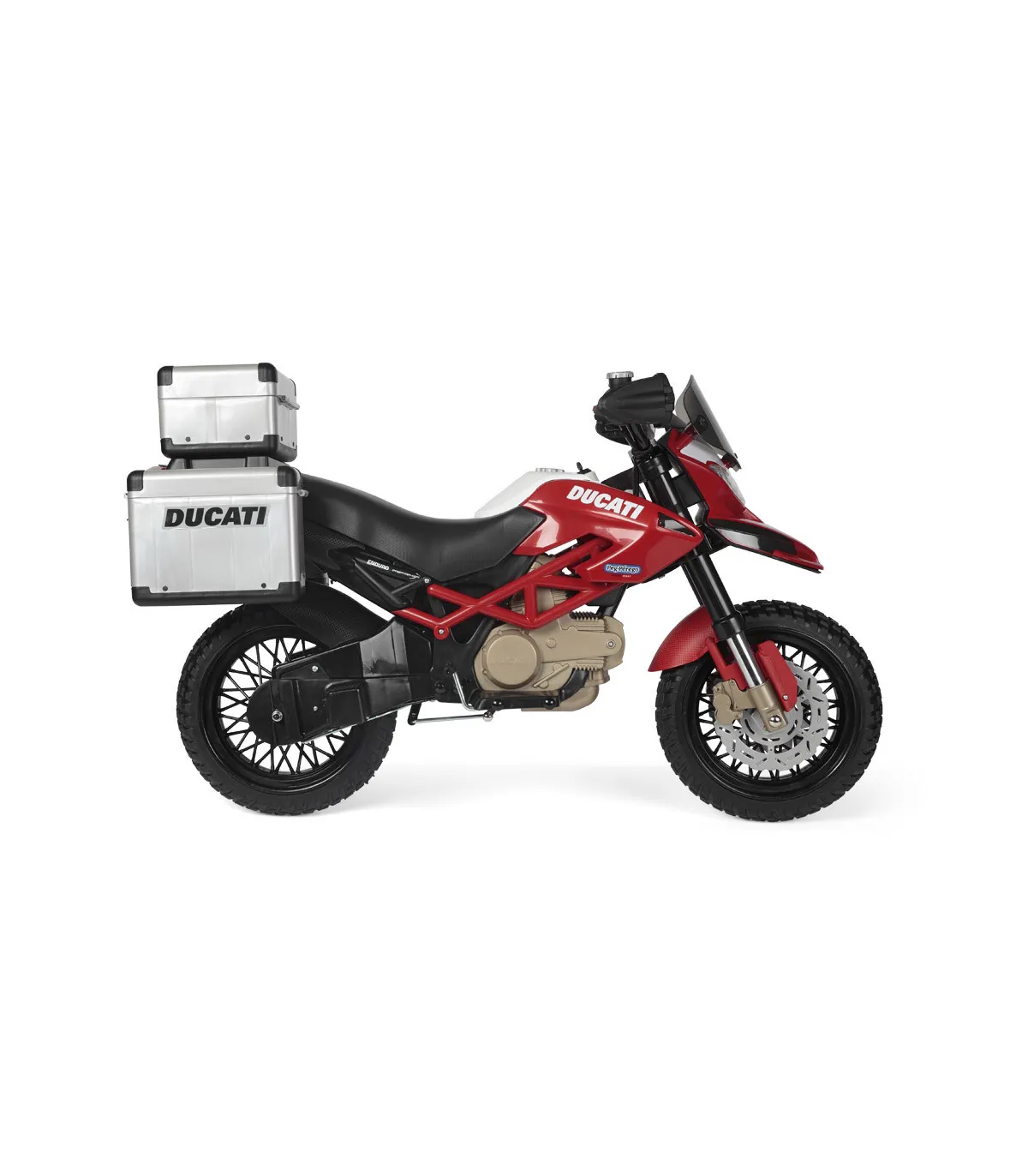 Moto Ducati Enduro, ¡qué espectáculoo!Ágil y llena de detalles, la Ducati Enduro es la moto eléctrica de 12V para niños a partir de 3 años que corre a casi 8 km/h y es capaz de ofrecer aventuras inolvidables, también sobre terrenos irregulares