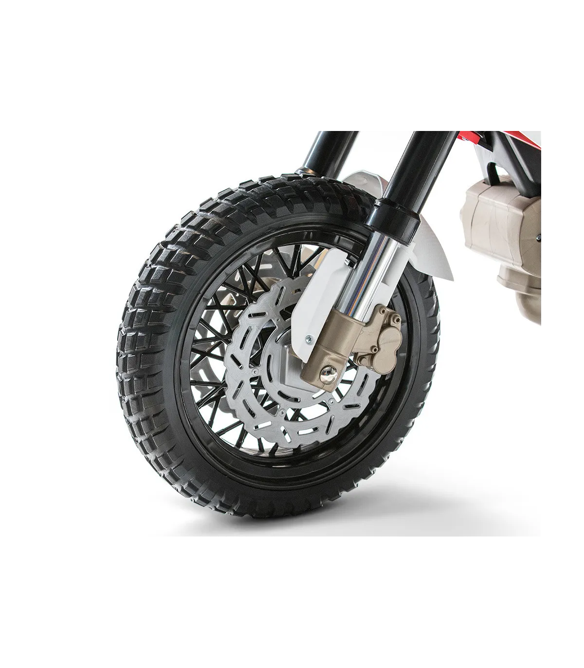 Ágil y llena de detalles, la Ducati Enduro es la moto eléctrica de 12 V para niños a partir de 3 años que corre a casi 8 km/h y es capaz de ofrecer aventuras inolvidables, también sobre terrenos irregulares.