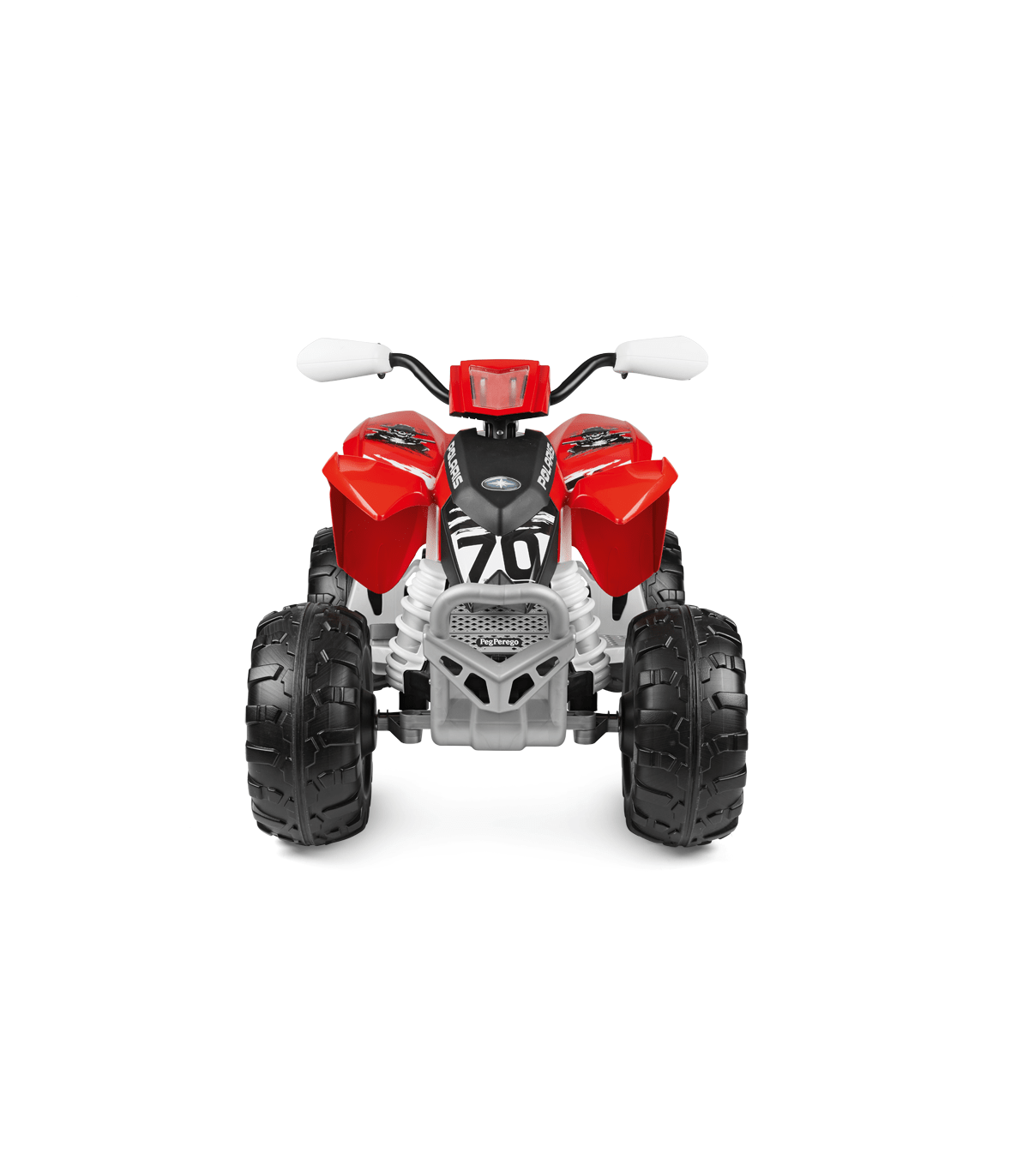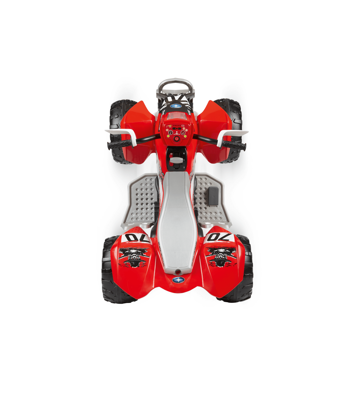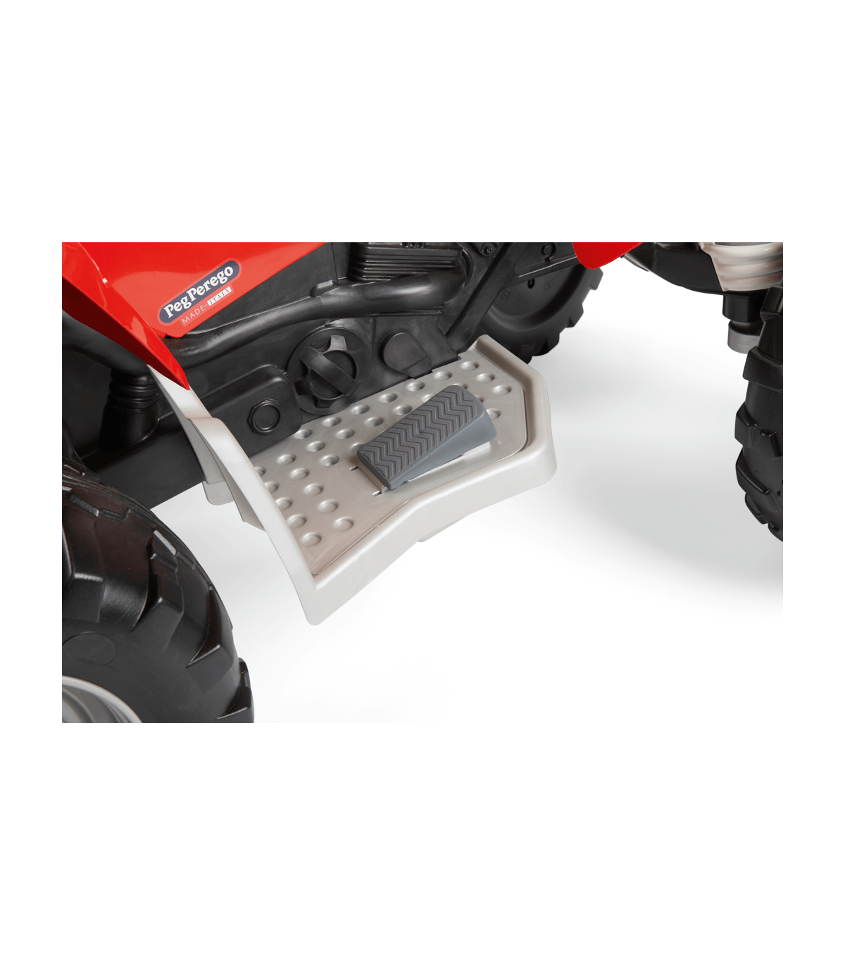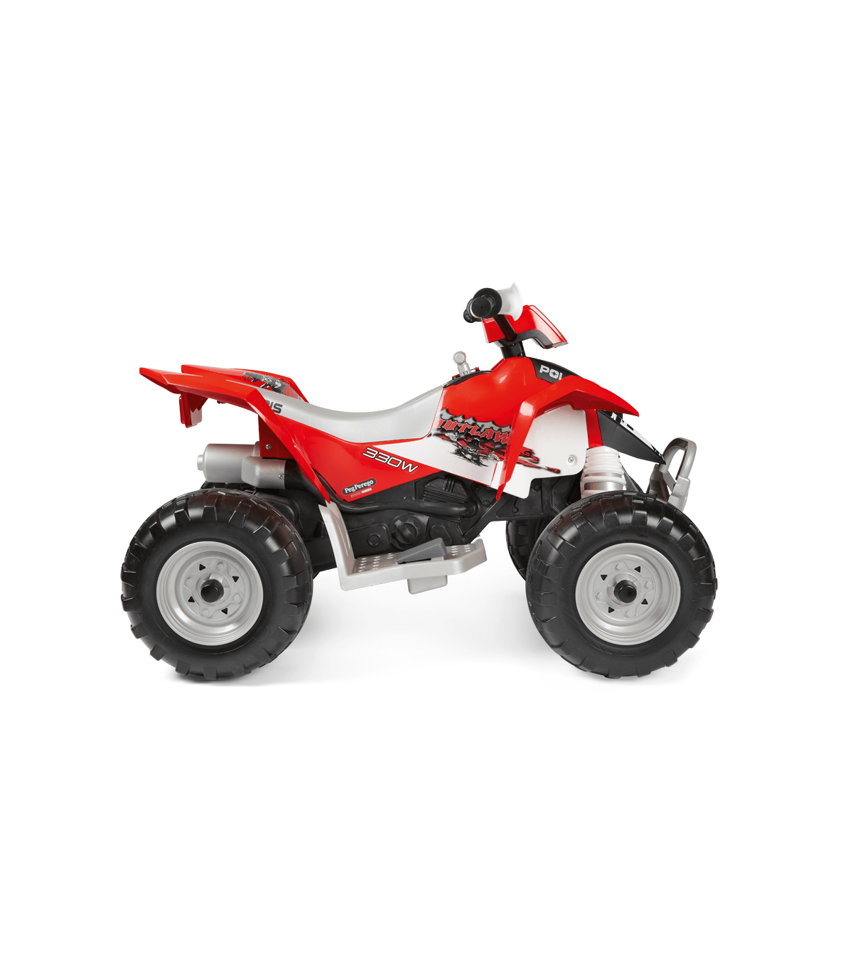 El Polaris Outlaw 330W siempre está listo para vivir nuevas aventuras. ¡Y menudas aventuras! Calidad Made in Italy y características de alto rendimiento como luces, sonidos, melodías y claxon, para divertirse a partir de 3 años. El quad eléctrico Peg Perego funciona con una batería recargable de 12 V - 8Ah y 100 Wh.