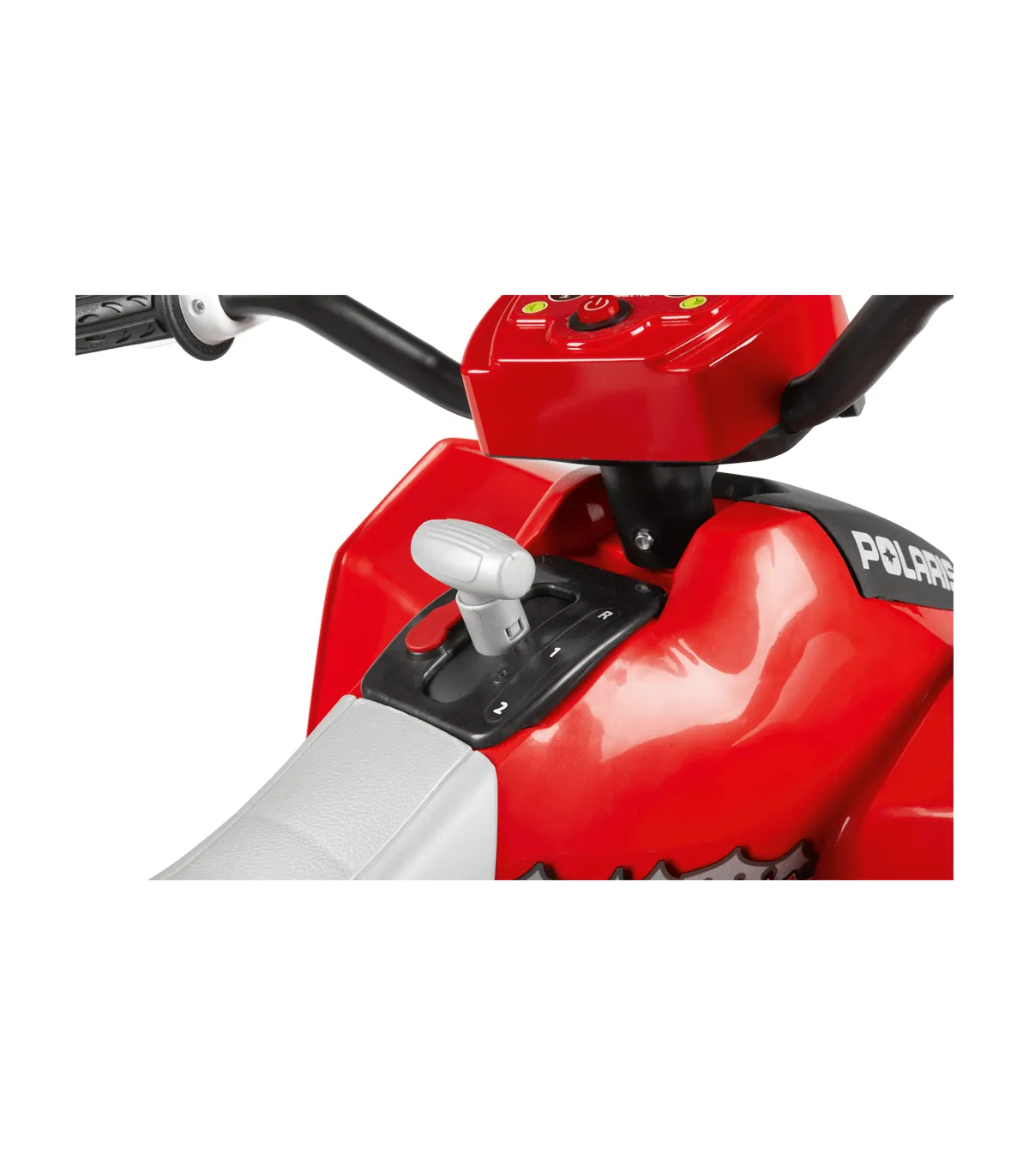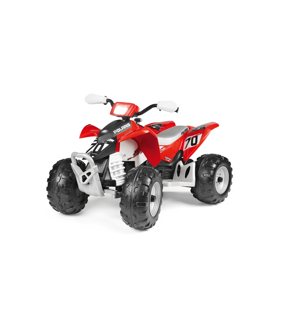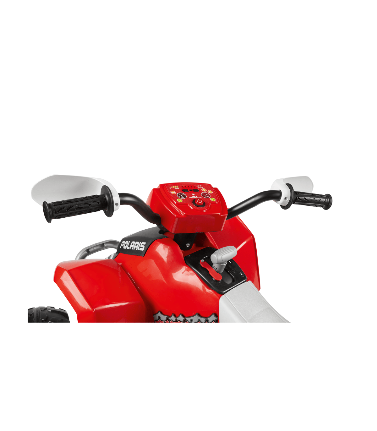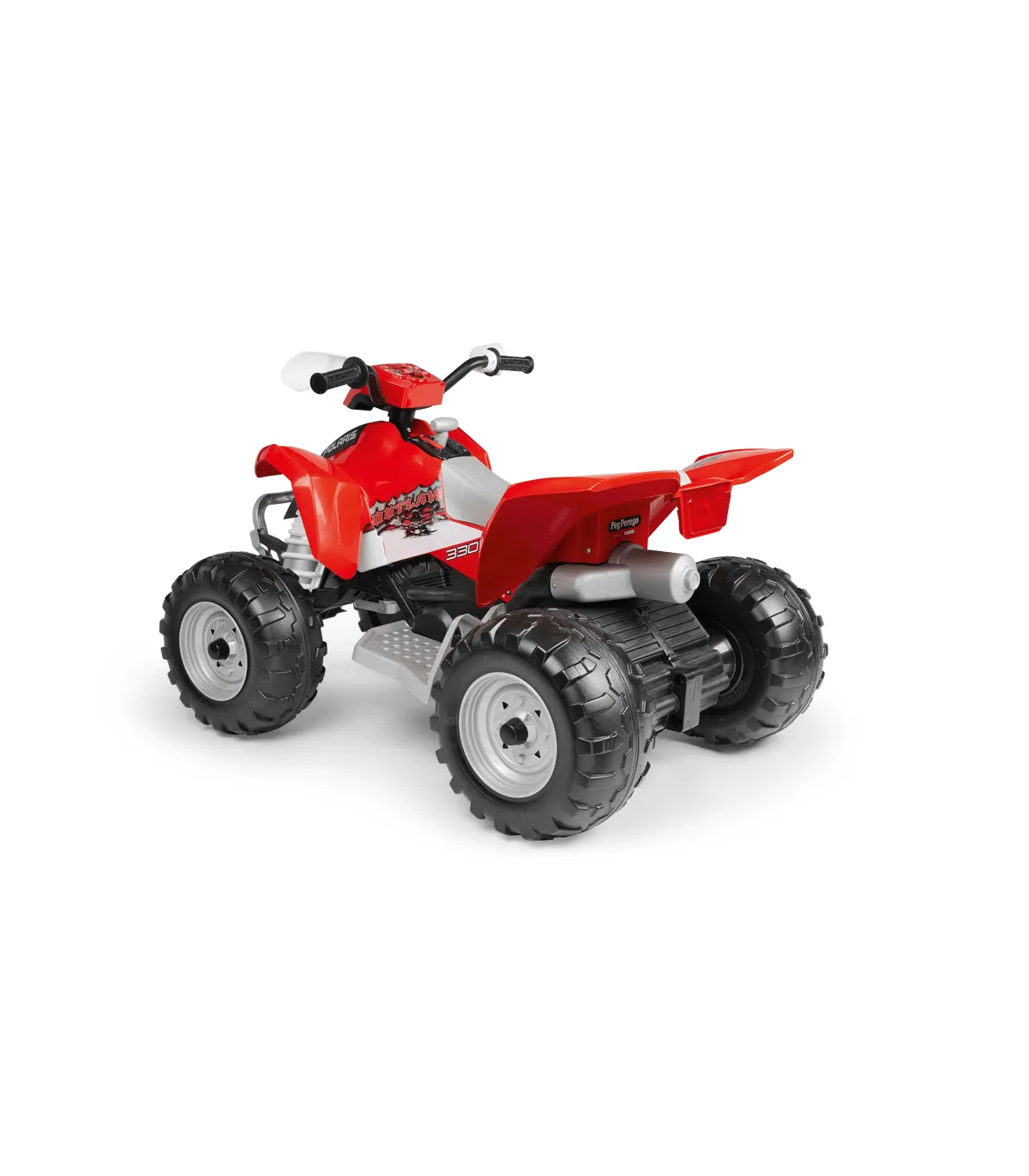 El Polaris Outlaw 330W siempre está listo para vivir nuevas aventuras. ¡Y menudas aventuras! Calidad Made in Italy y características de alto rendimiento como luces, sonidos, melodías y claxon, para divertirse a partir de 3 años. El quad eléctrico Peg Perego funciona con una batería recargable de 12 V - 8Ah y 100 Wh.