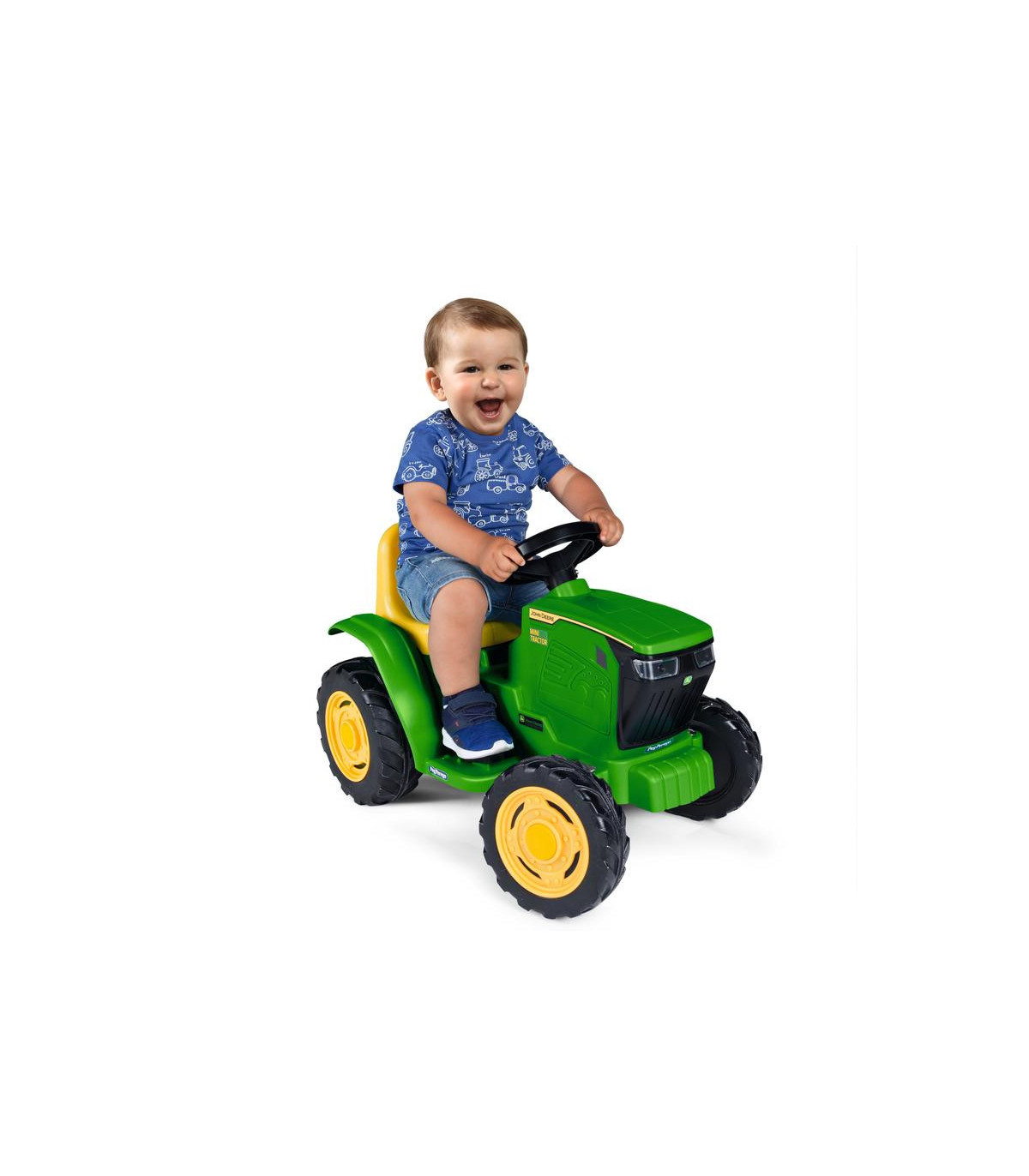 El tractor infantil con batería recargable John Deere Mini Tractor es perfecto para sus primeras experiencias de juego. Puede utilizarse a partir de 1 año de edad. Cómodo y fácil de conducir gracias a sus 2 ruedas motrices y a la potencia del motor de 25 W. Viaja a unos 2,7 km/h y regala multitud de momentos divertidos, dentro y fuera de casa