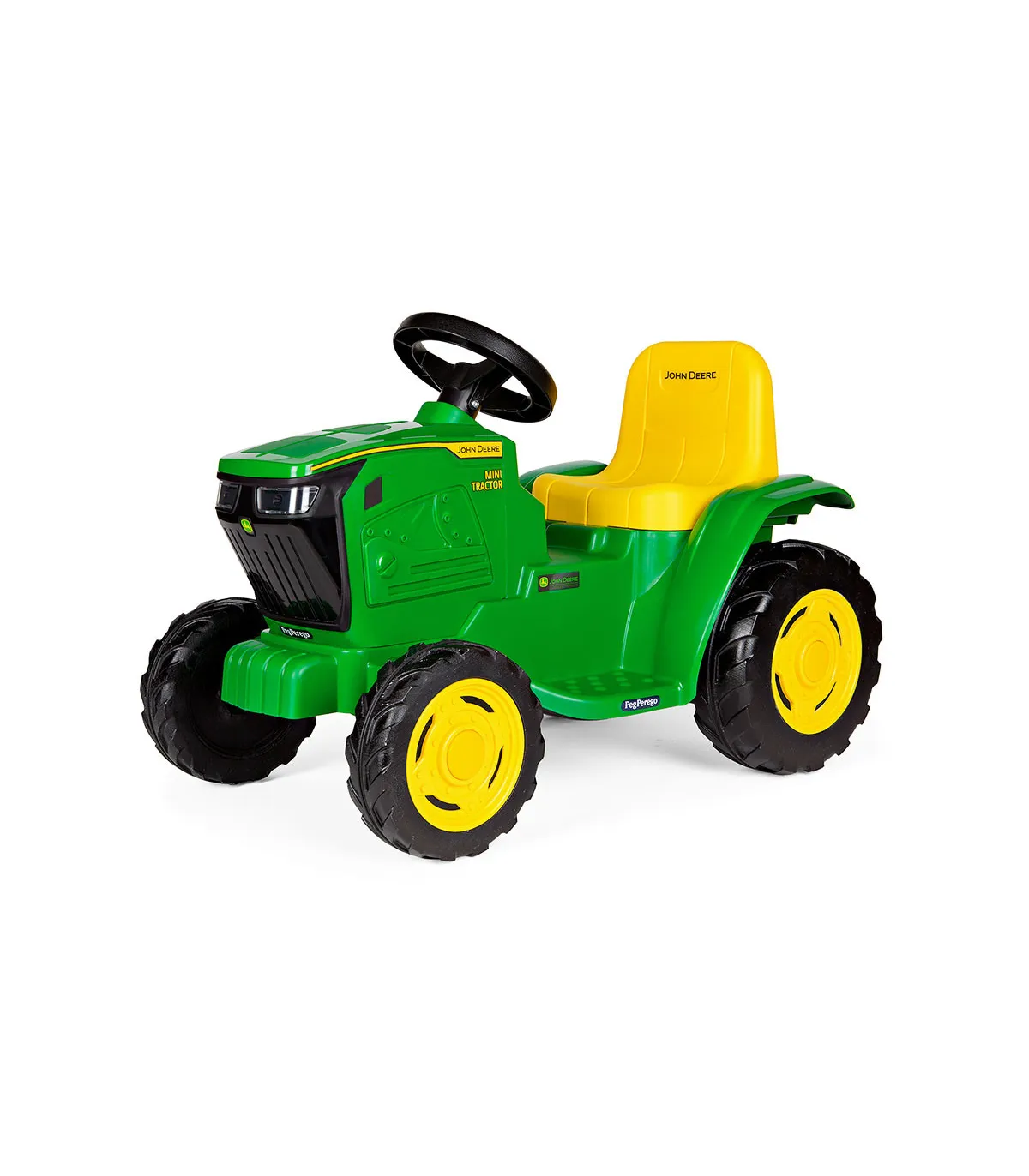 ¡Un minitractor, grandes aventuras!El tractor infantil con batería recargable John Deere Mini Tractor es perfecto para sus primeras experiencias de juego. Puede utilizarse a partir de 1 año de edad. Cómodo y fácil de conducir gracias a sus 2 ruedas motrices y a la potencia del motor de 25 W. Viaja a unos 2,7 km/h y regala multitud de momentos divertidos, dentro y fuera de casa
