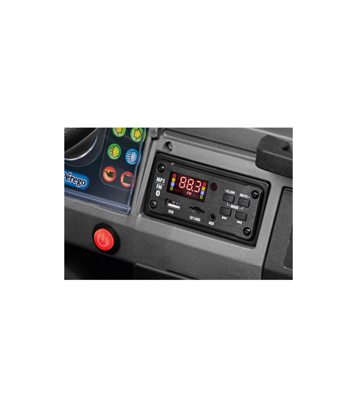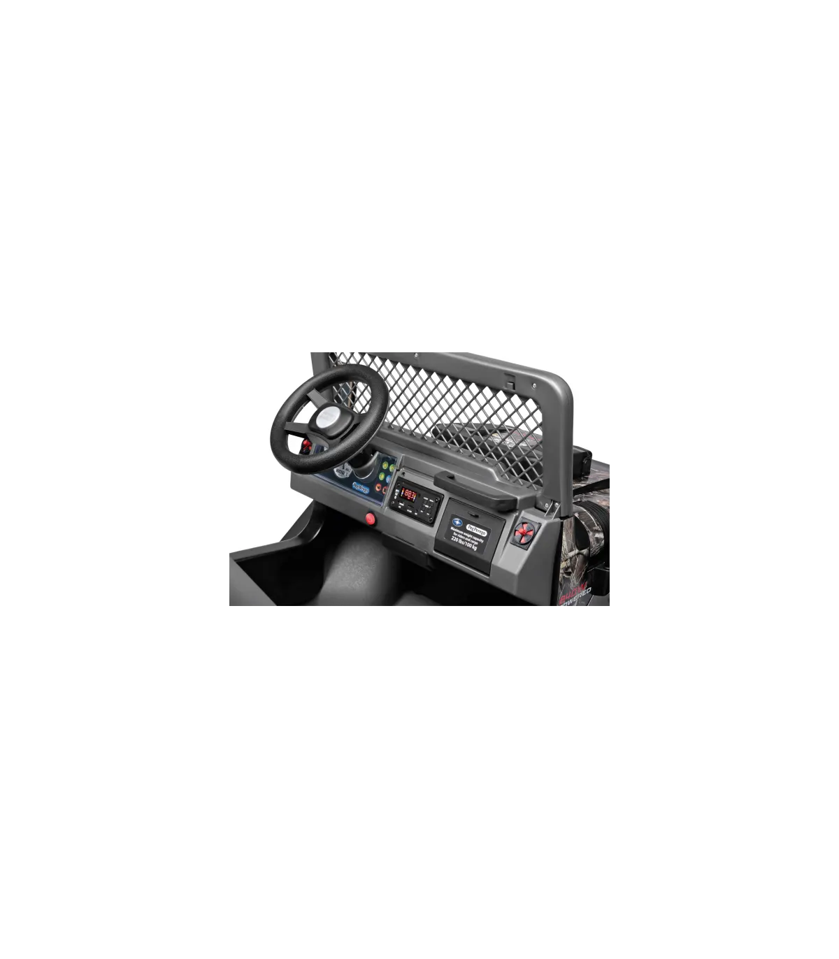 Con la palanca de cambios se puede elegir entre dos velocidades de aproximadamente 6 o 12 km/h y una marcha atrás. La velocidad más alta se puede bloquear hasta que el niño se familiarice con la conducción.