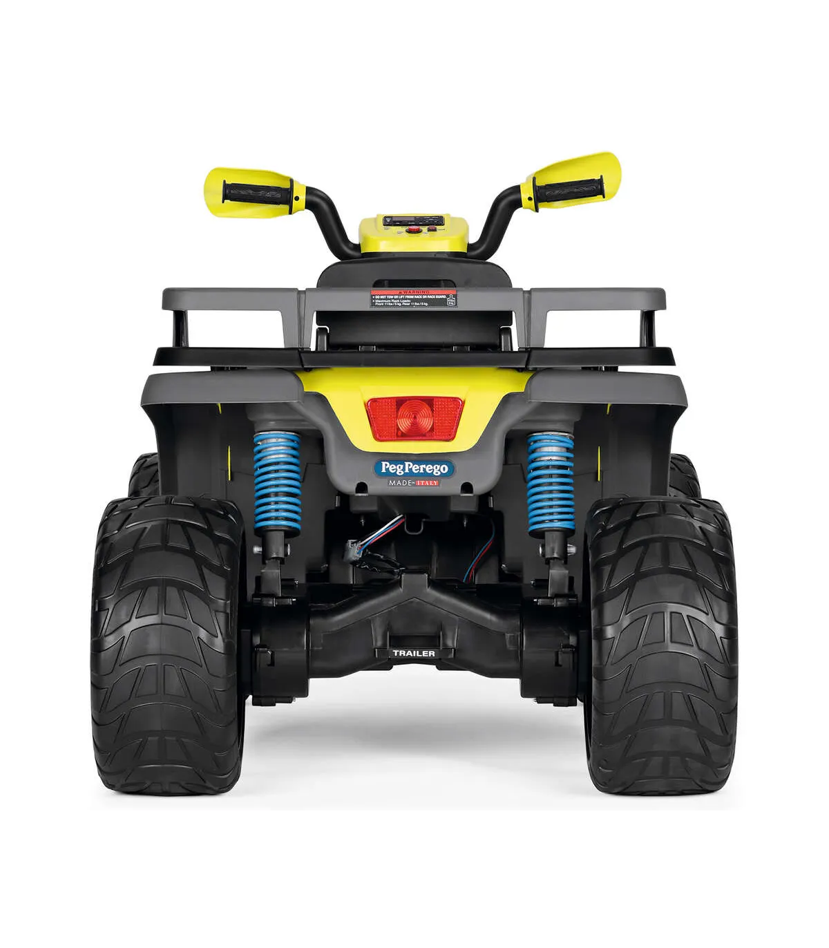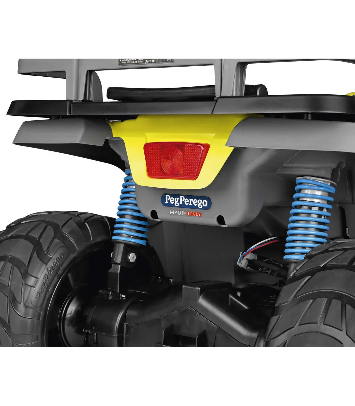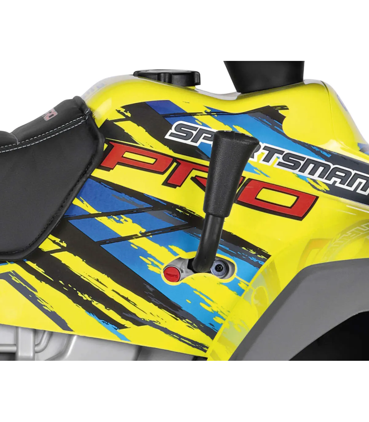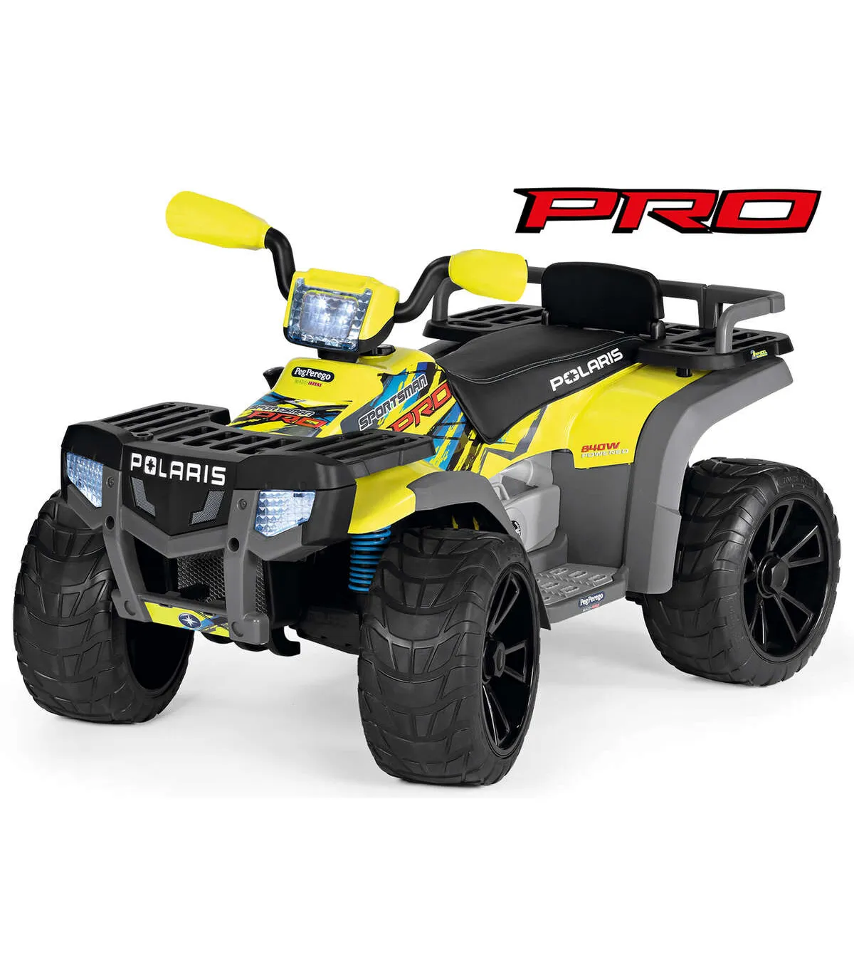 ¡Conduce como un profesional!¡Bienvenidos al maximo nivel de diversión! ¡El Polaris Sportsman Pro Citrus es el potente quad de batería recargable de 24 Volt/12 Ah/300 Wh listo para todo! Cero molestias, mucha diversión:PRESTACIONES PROFESIONALES: gracias a las ruedas de goma con tracción extrema, ¡no hay terreno que no pueda superar!BAJO NIVEL DE RUIDO Y UNA POTENCIA SUPERIOR: los 2 motores silenciosos de 420 W (840 W en total) dan movimiento al juguete como un auténtico coche eléctrico con un bajo nivel de ruido.¡DIVERSIÓN EXTREMA INCLUSO EN CAMINOS DE TIERRA! Su punto fuerte es superar obstáculos. Los dos motores cuadruplicados permiten desafiar cualquier obstáculo con gran facilidad y superar pendientes de hasta el 17% siempre a máxima potencia y a una velocidad máxima de 12 km/h. A partir de 6 años.