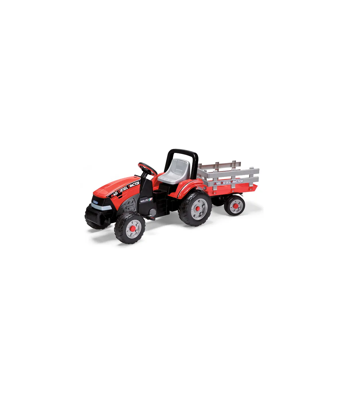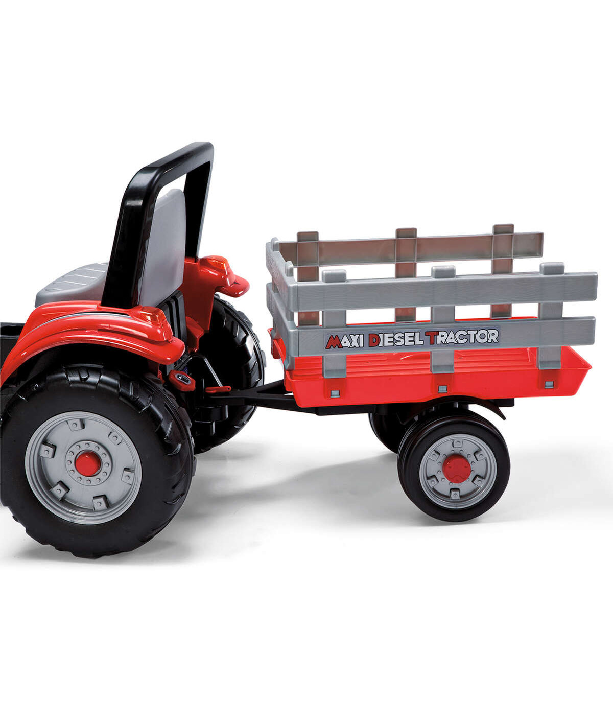 Maxi Diesel Tractor: ¡más capacidad, más diversión!Este tractor a pedales, que funciona con cadena y es apto a partir de los 2 años de edad, es el compañero ideal para pasar el tiempo al aire libre inventando juegos la mar de divertidos. Tu hijo podrá dar rienda suelta a su imaginación cargando todo lo que quiera en el remolque desmontable, que puede contener hasta 10 kg de peso