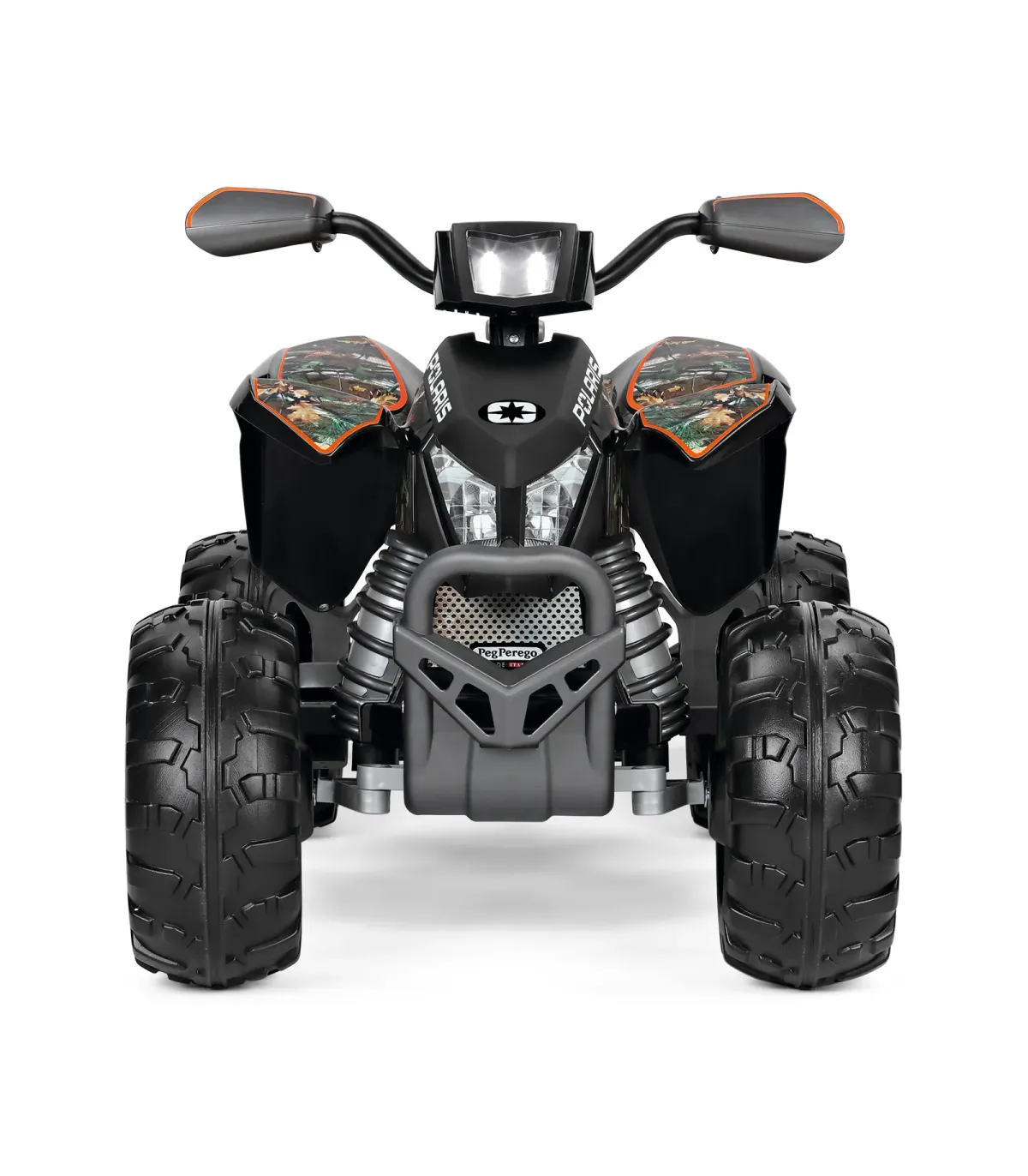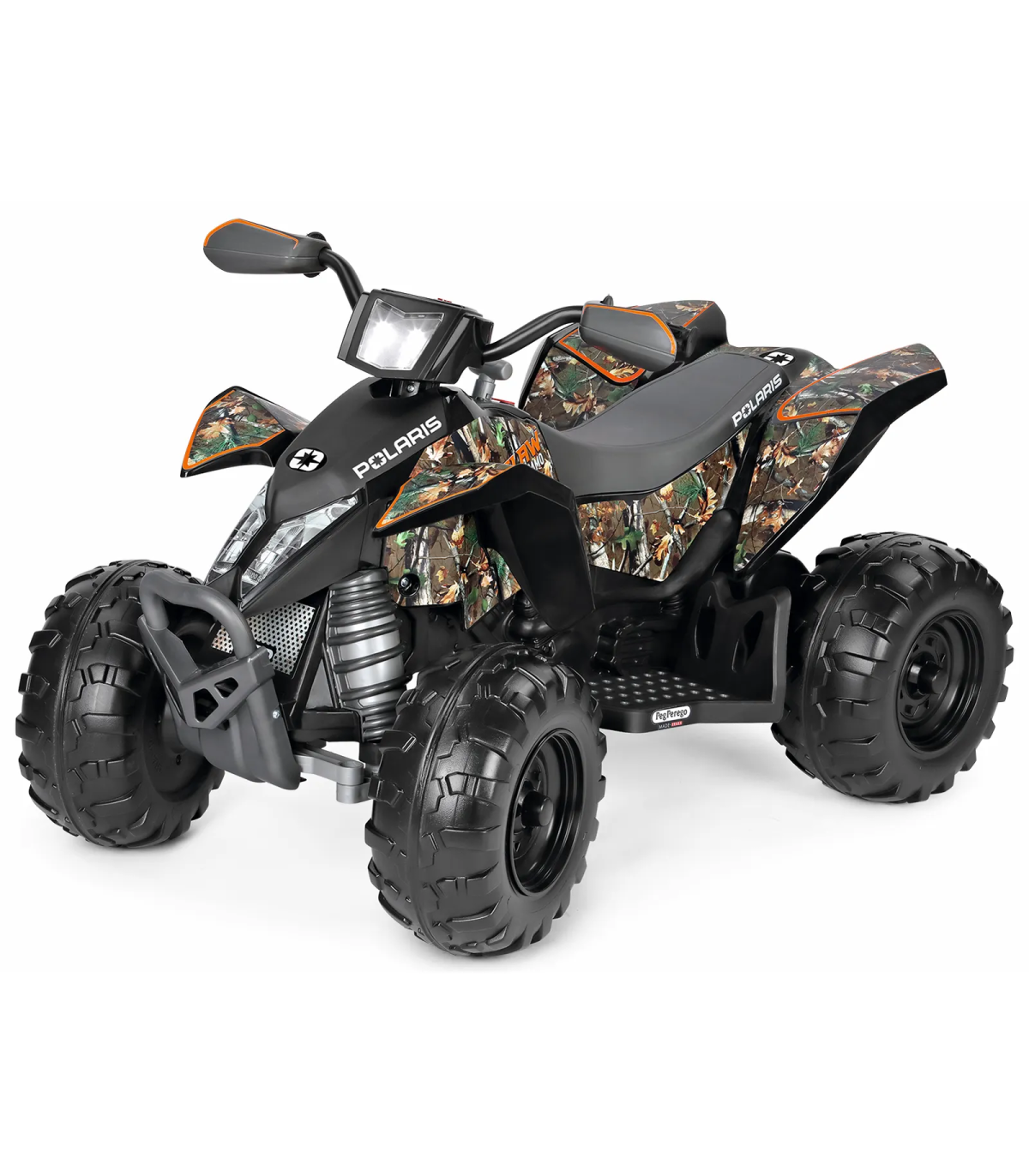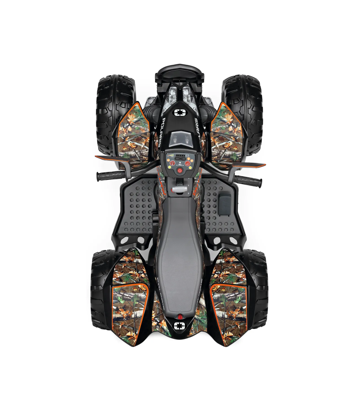 El quad eléctrico infantil con luces y sonidos en versión camuflaje para vivir aventuras todoterreno. Características de alto rendimiento como luces, sonidos, melodías y claxon, para divertirse a partir de 3 años. Polaris Outlaw 330W Camo funciona con una batería recargable de 12 V/8Ah/100 Wh.