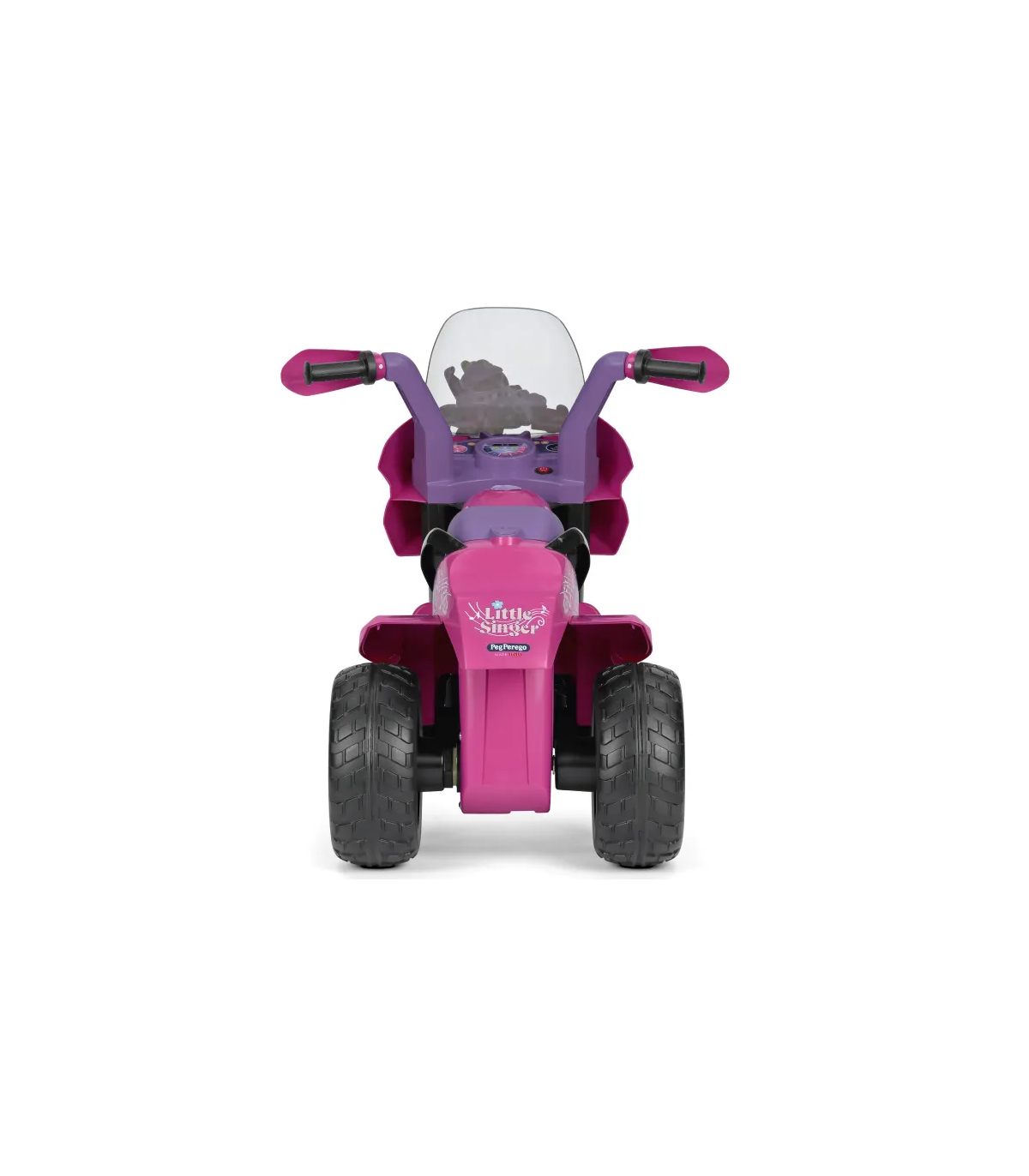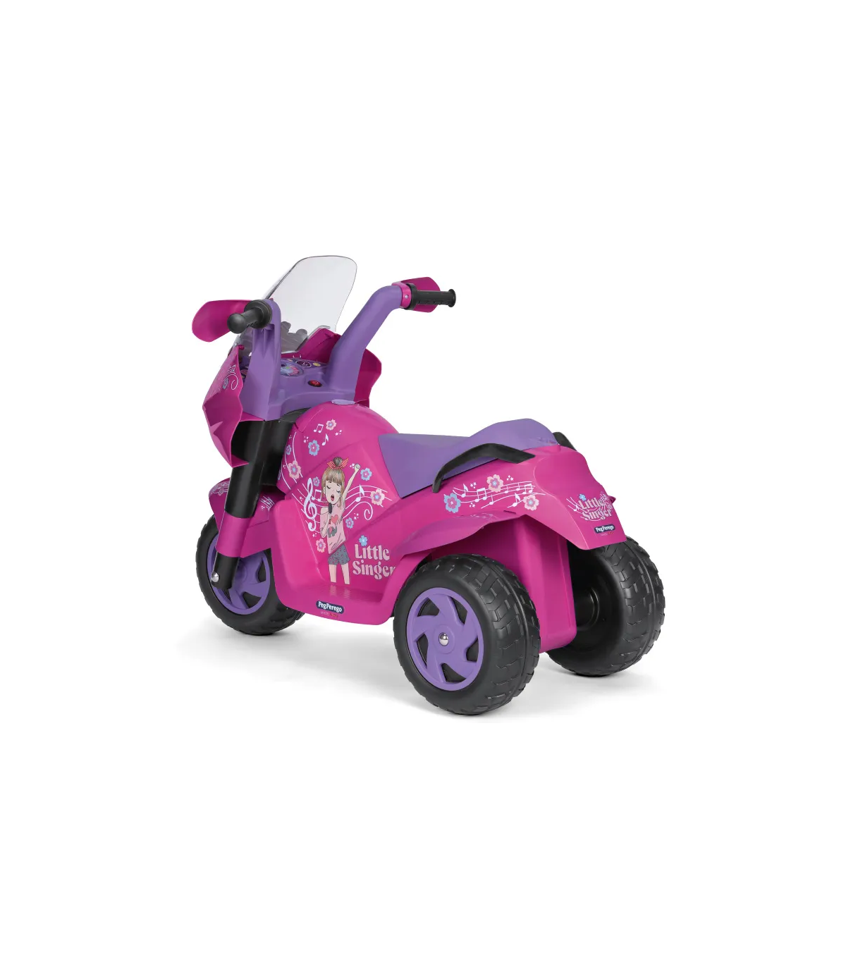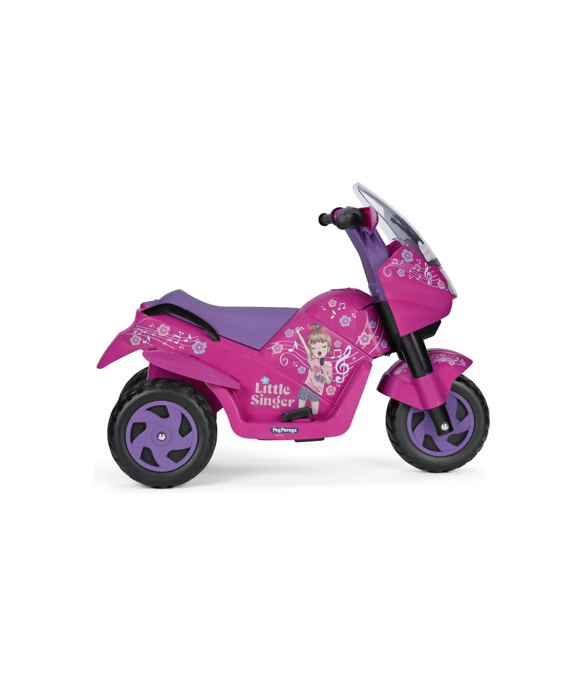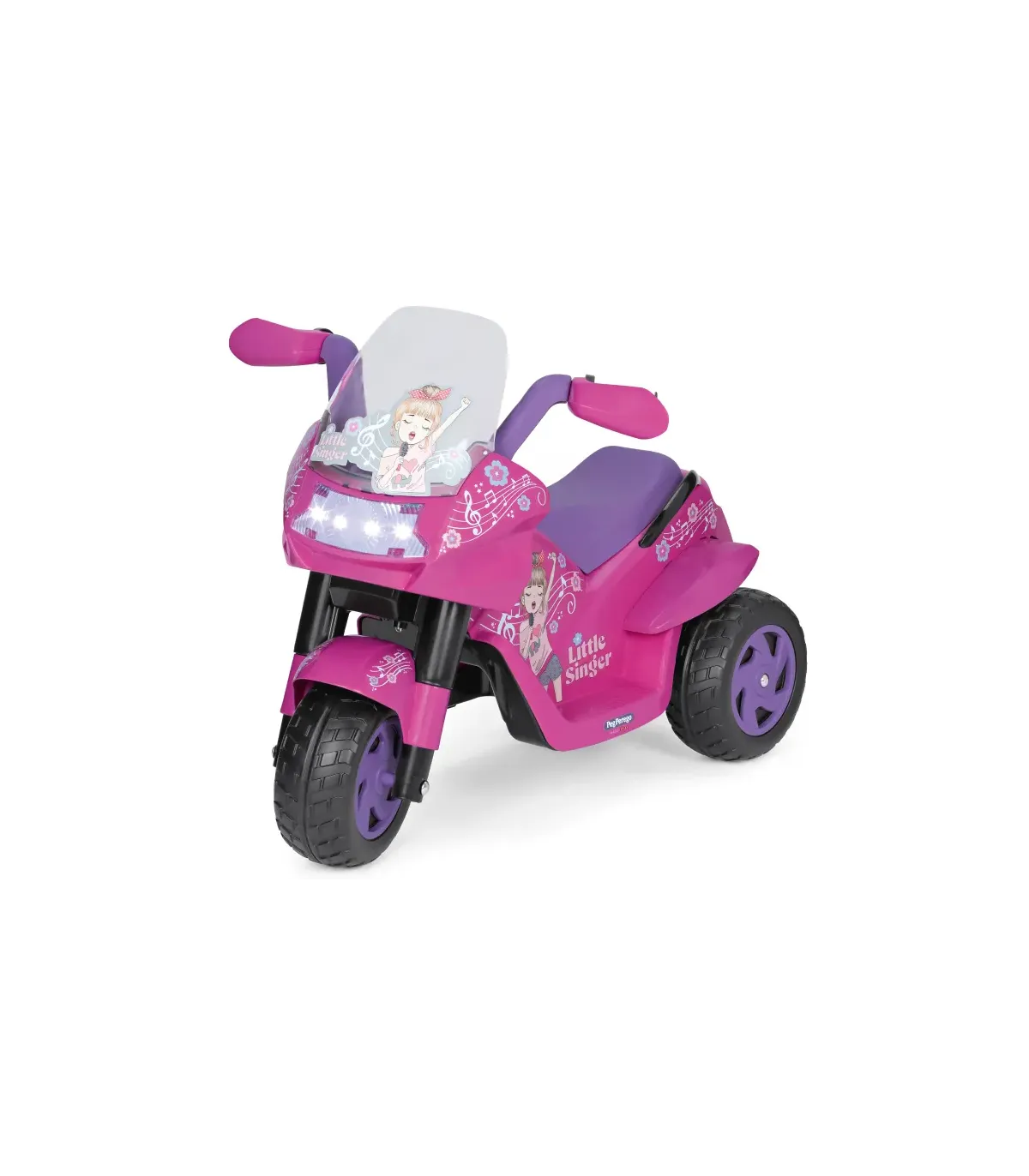 Con la moto eléctrica Little Singer, la diversión será fantástica. Luces, sonidos, música, claxon y toda la seguridad de los materiales hechos en Italia para jugar con alegría desde los 2 años de edad. Esta moto eléctrica funciona con una batería recargable de 6V - 4,5Ah (25Wh)