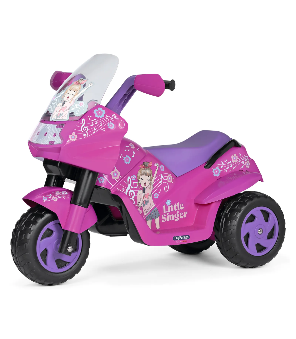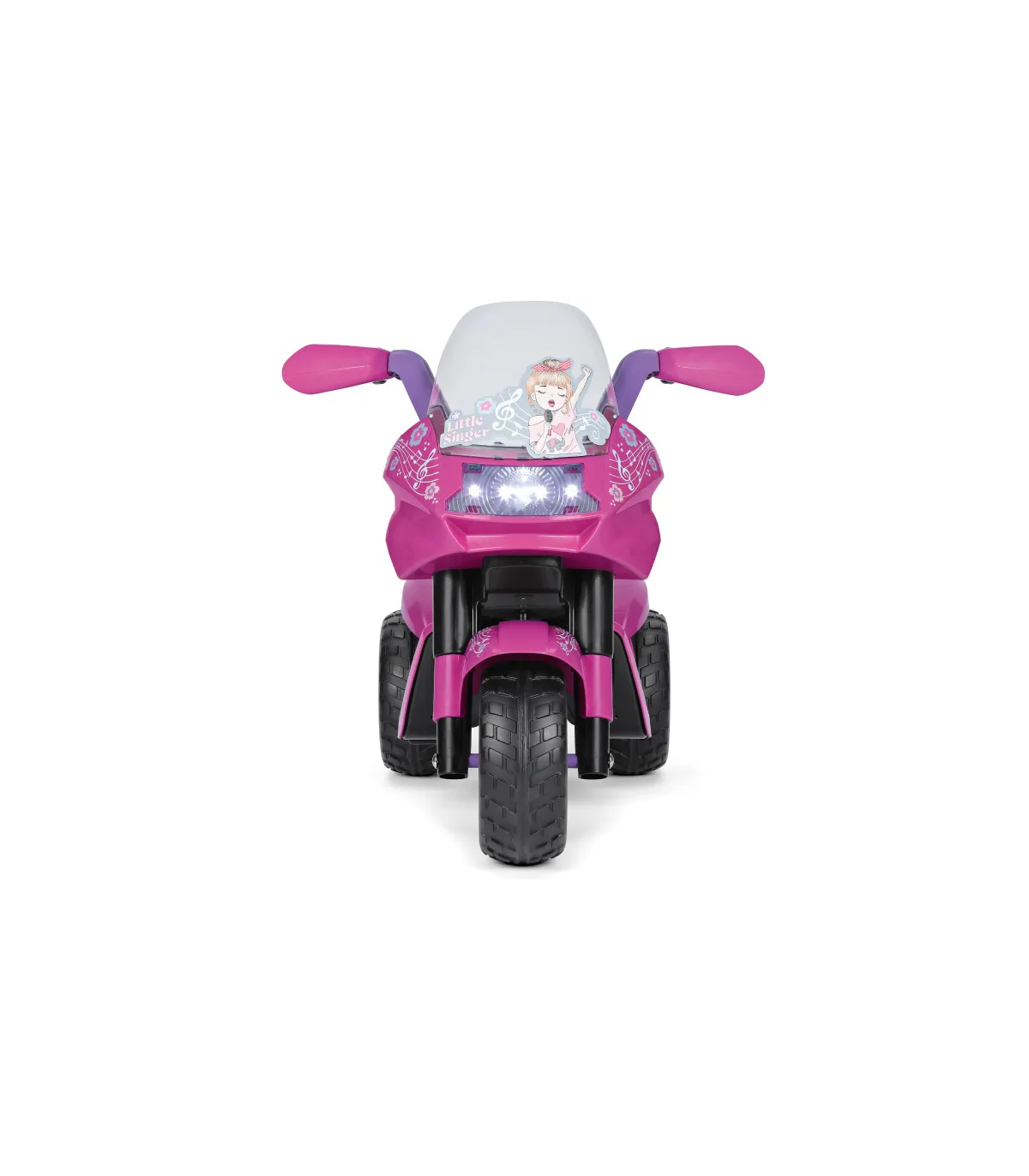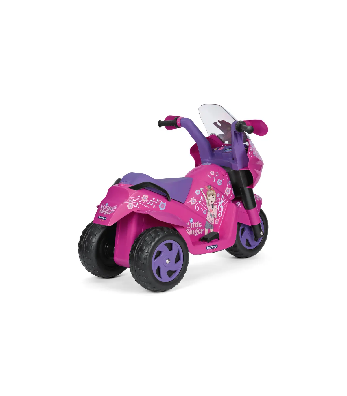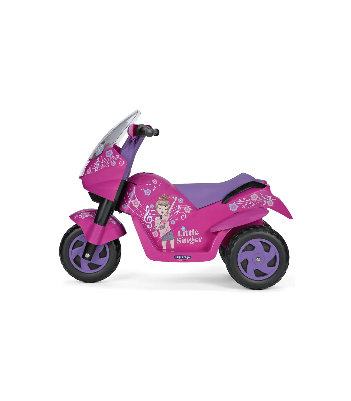 Con la moto eléctrica Little Singer, la diversión será fantástica. Luces, sonidos, música, claxon y toda la seguridad de los materiales hechos en Italia para jugar con alegría desde los 2 años de edad. Esta moto eléctrica funciona con una batería recargable de 6V - 4,5Ah (25Wh)