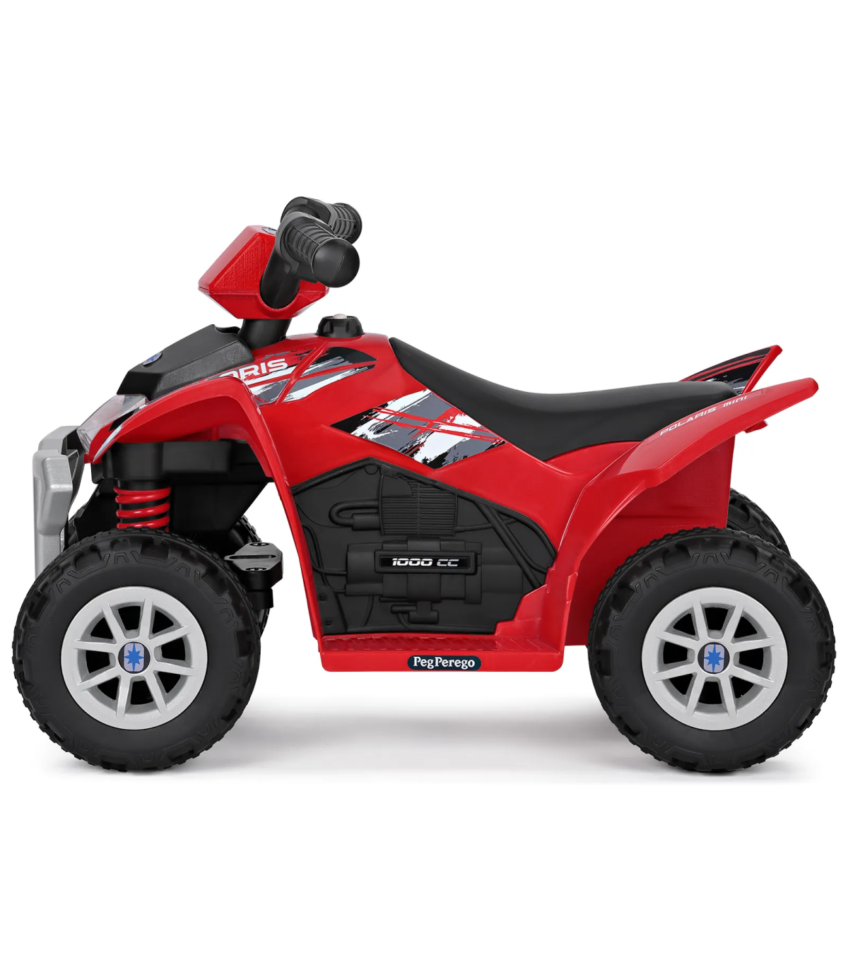 El quad eléctrico infantil con batería recargable Polaris Mini es ideal para sus primeras experiencias de juego, ya que se puede utilizar a partir de 1 año. Cómodo, fácil de conducir, con bocina y luz delantera: para divertirse al máximo.El quad funciona con una batería de litio recargable de 6 V - 2,5 Ah