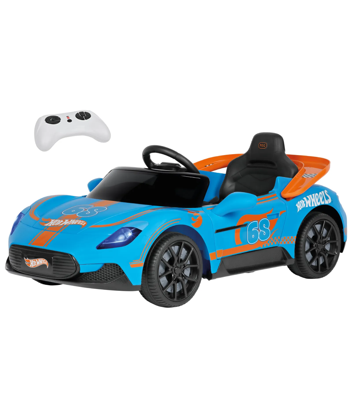 Hot Wheels RC es el coche eléctrico infantil diseñado para entretener incluso a los pilotos más pequeños. De 18 meses a 3 años, el vehículo puede ser conducido por un adulto mediante el mando a distancia; a partir de los 3 años, los niños pueden tomar el volante y lanzarse a la carrera con el auténtico estilo Hot Wheels. Equipado con una batería de 12V, dos motores, luces LED de colores y una radio con música, cada trayecto ofrece una experiencia de juego única y emocionante. El alerón trasero se convierte en una pista integrada para coches Hot Wheels. Batería y cargador incluidos.