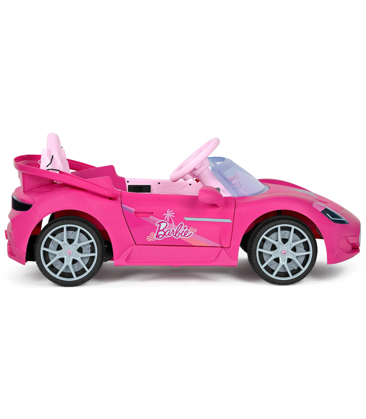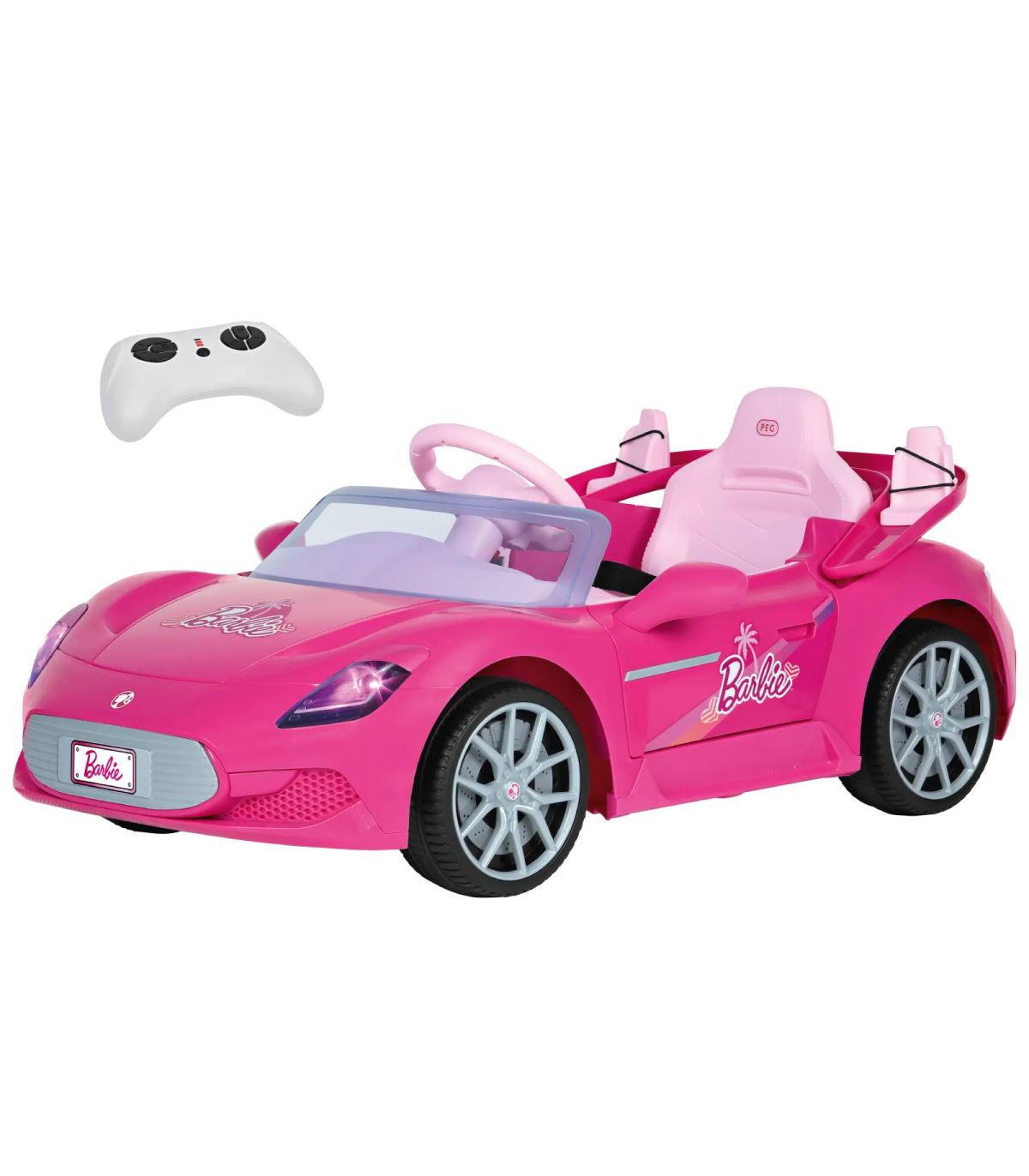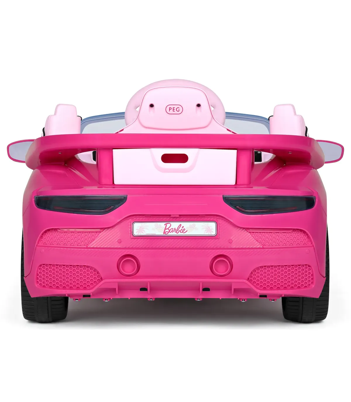 Barbie RC es el coche eléctrico infantil diseñado para convertir cada viaje en una aventura especial. De 18 meses a 3 años, el vehículo puede ser conducido por un adulto mediante el mando a distancia; a partir de los 3 años, los niños pueden tomar el volante y divertirse sin límites con el auténtico estilo Barbie. Equipado con una batería de 12V, dos motores, luces LED de colores y una radio con música, cada trayecto ofrece una experiencia de juego única y emocionante. Gracias a los dos asientos dedicados para las muñecas Barbie, la aventura es siempre compartida. Batería y cargador incluidos