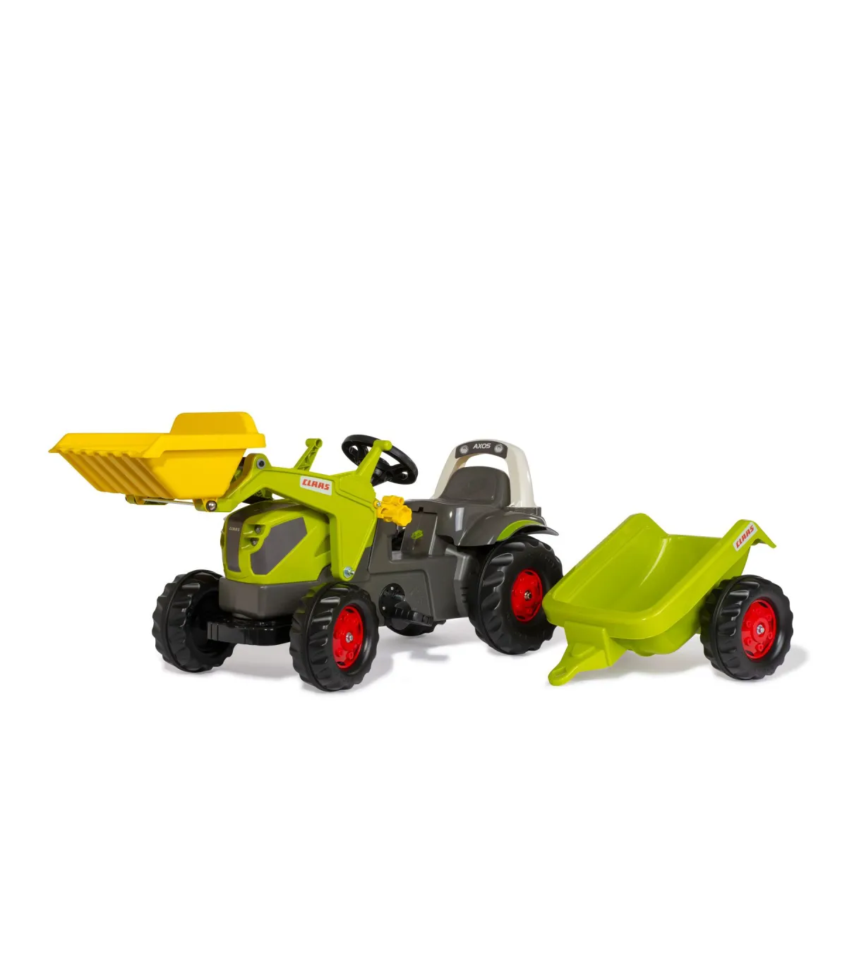 El rollyKid CLAAS Axos 240 es el juguete ideal para niños de entre 2 años y medio y 5 años. Con su diseño realista y sus numerosas funciones, proporciona horas de diversión. Este tractor de pedales, que incluye un cargador frontal, ofrece un sinfín de aventuras y sirve como plataforma ideal para el desarrollo de los niños pequeños. El capó del vehículo se puede abrir, lo que permite a los pequeños conductores dar rienda suelta a su imaginación y sentirse como verdaderos conductores de tractores. Con la tensión de la cadena ajustable y una transmisión por cadena protegida, el rollyKid CLAAS Axos 240 garantiza un viaje seguro y suave. La innovadora dirección pivotante en combinación con la robusta barra de dirección permite un control preciso y promueve la motricidad fina y la coordinación mano-ojo. El enganche trasero del rollyKid CLAAS Axos 240 abre numerosas posibilidades para una diversión adicional. Aquí se pueden equipar varios accesorios funcionales para hacer que el vehículo sea aún más versátil. Con el rollyKid CLAAS Axos 240, los niños pueden dar rienda suelta a su imaginación y sumergirse en el mundo de la agricultura. Este juguete de alta calidad no solo proporciona diversión sino que también promueve las habilidades motoras y la imaginación de los niños.