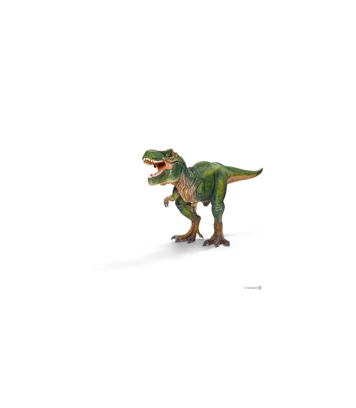 El tiranosaurio rex era un dinosaurio predador bípedo que medía 13 metros. Con su poderosa cabeza y sus dientes de casi 20 centímetros era uno de los dinosaurios más impresionantes. Aunque parecía amenazador, el T-Rex podía darle muy poco uso a sus cortos brazos que sólo tenían dos garras, y no alcanzaban a su boca. Con casi seis metros de alto y doce metros de largo, el T-Rex no era un gran cazador pero sí un carroñero que comía los restos que otros animales o dinosaurios dejaban atrás. A pesar de tener más de cincuenta dientes que median más de veinticinco centímetros de largo, no utilizaba sus dientes para mascar sino para arrancar, ya que tragaba sus comidas en grandes pedazos. Para poder encontrar fácilmente comida, los ojos del T-Rex apuntaban hacia adelante de tal manera que su visión se superponía. Dato divertido Si este poderoso dinosaurio perdía uno de sus dientes que eran similares a una daga, un nuevo diente crecía en cuestión de pocas semanas