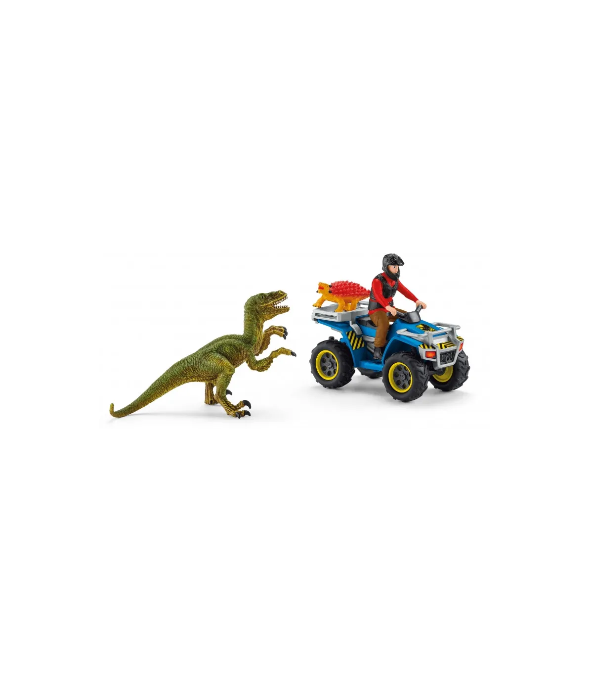 El set de juego «Huida en quad de un velocirráptor», de Schleich® Dinosaurs, es el complemento ideal para la gran estación de investigación de dinosaurios (Ref.: 41462).