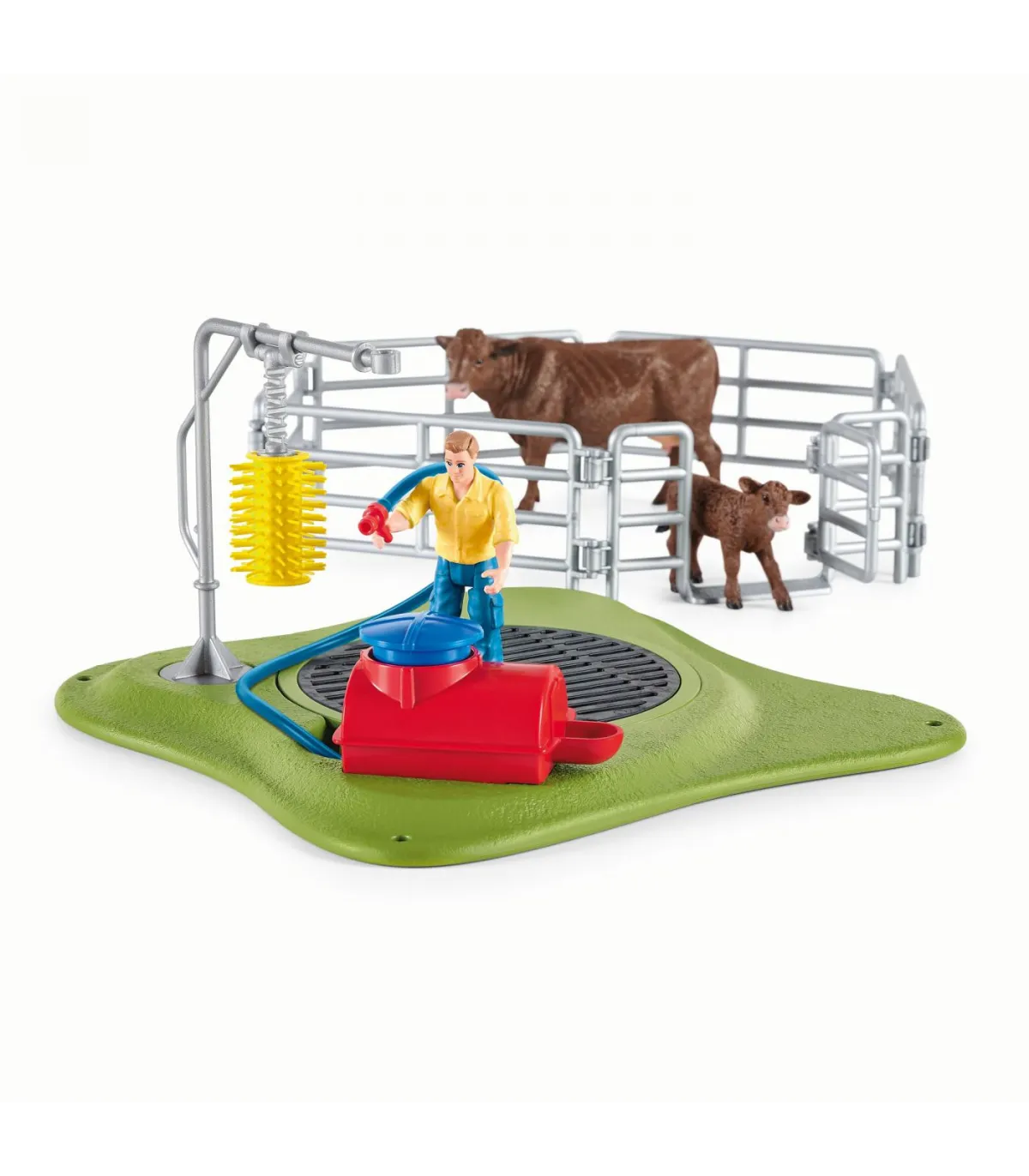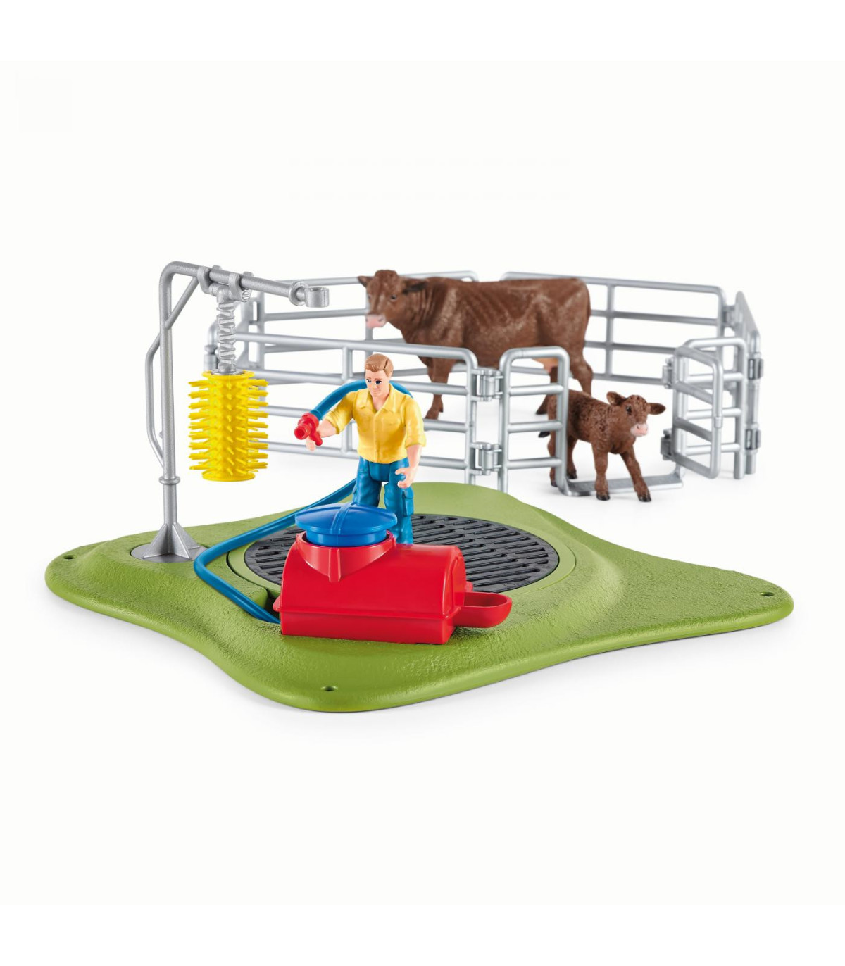¡Agua va! Con la nueva estación de lavado para vacas de Schleich® FARM WORLD es posible limpiar todas las vacas de la granja en un abrir y cerrar de ojos.