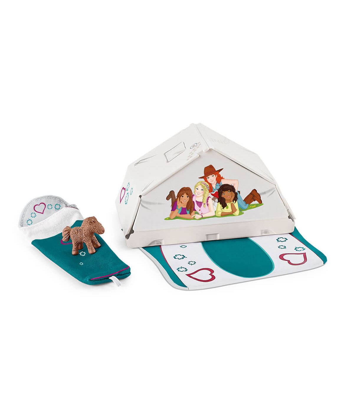 1 tienda, 1 caballo de peluche, 1 saco de dormir, 1 manta para caballo