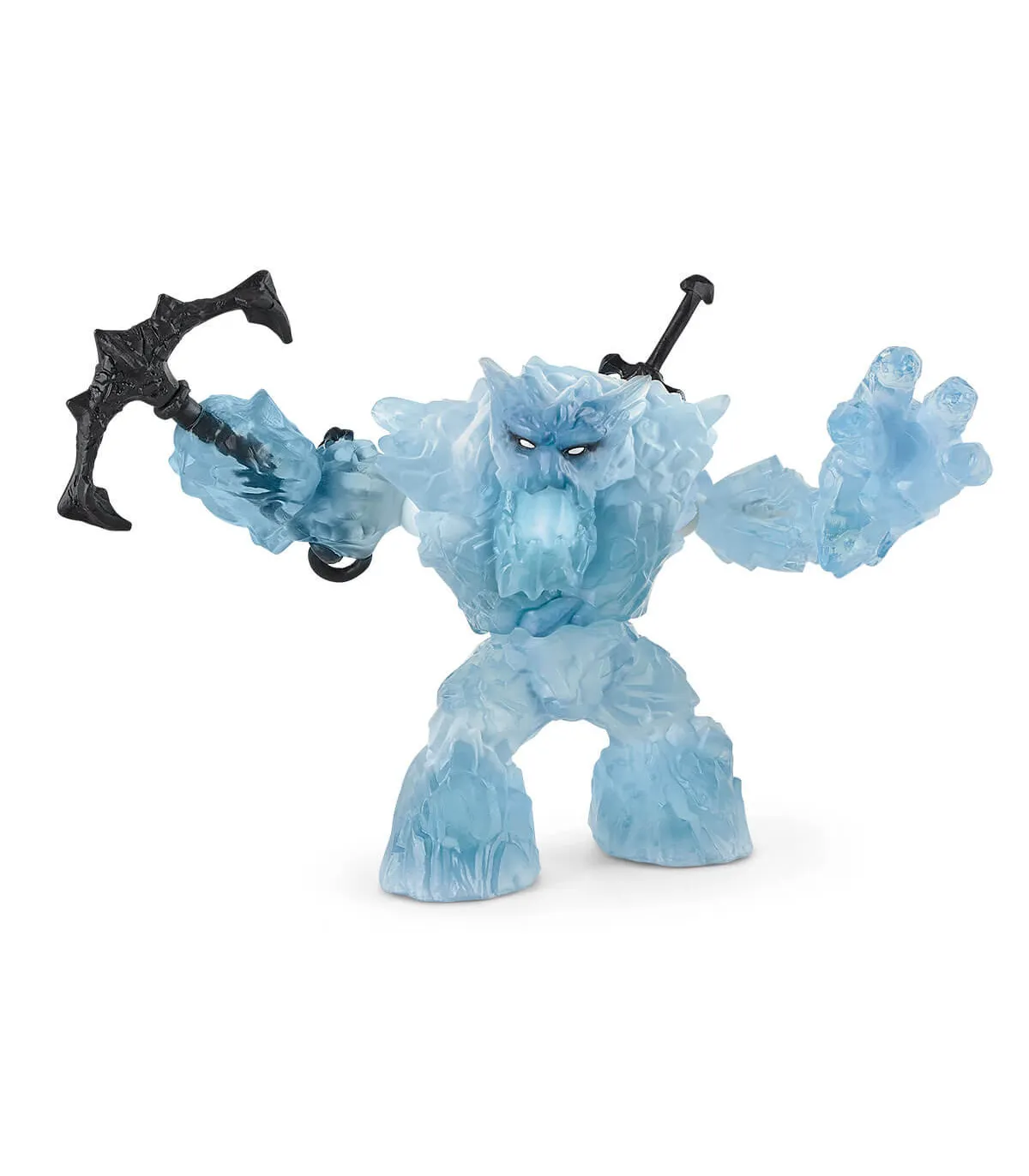 El gigante de hielo de Schleich® Eldrador® Creatures hace honor en todo a su nombre: ¡solo con mirar al monstruo glacial, a sus adversarios les entran escalofríos! ¡Desde tiempos inmemorables lleva un ancla enredada en su cuerpo que ya se ha rigidizado y ha pasado a formar parte de su antebrazo! Además, los brazos del gigante helado son móviles y sumamente fuertes. Tiene una antigua espada oxidada profundamente metida en su espalda que puede sacar en cualquier momento y utilizar contra los demás seres de Eldrador. No importa desde qué dirección se acerque un enemigo: ¡gracias a su torso completamente giratorio, el gigante de hielo puede cambiar su ángulo de visión en milésimas de segundo! Y también mantiene a sus enemigos en jaque gracias a su mandíbula móvil: ¡cuando la abre, sus adversarios notan su aliento glacial con el que el gigante de sangre fría congela de golpe a sus adversarios!